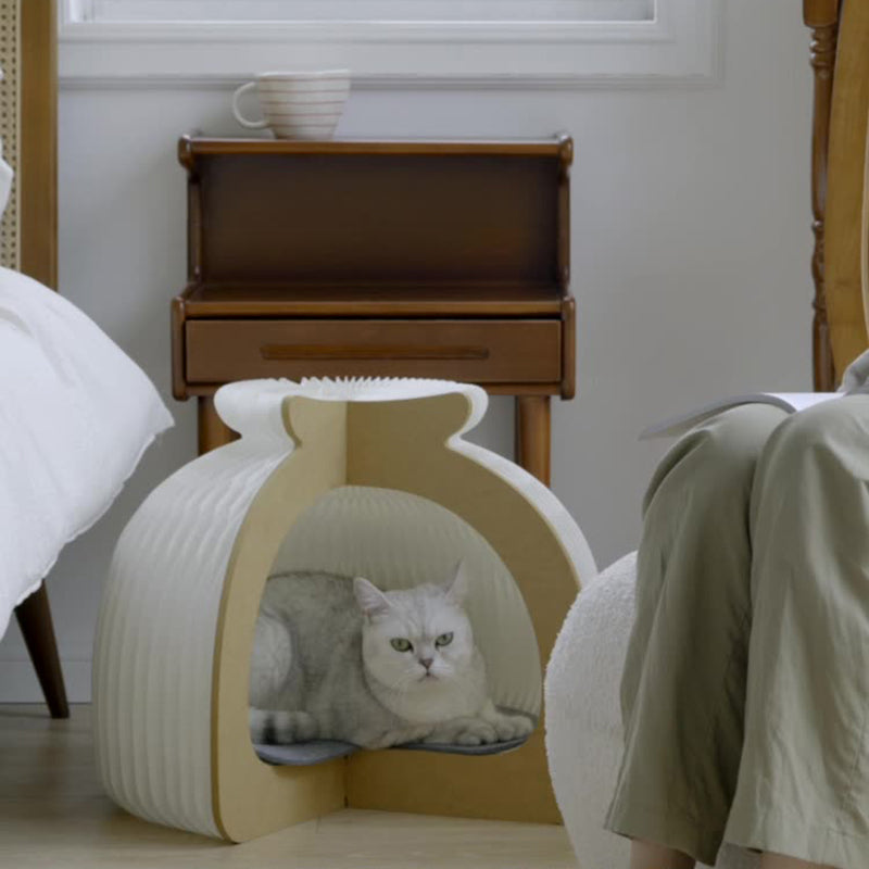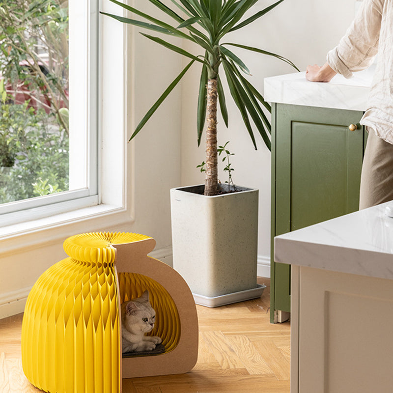 Give your pet a sanctuary that is as stylish as it is snug with this modern decorative round cat bed. Featuring a charming bun-inspired enclosed design, this nest provides a "secure-haven" feel that satisfies a cat’s natural instinct to burrow and hide. Crafted from high-density, durable kraft paper with a unique honeycomb structure, it offers surprising structural integrity and excellent thermal insulation for all-season comfort. Available in a delightful palette of crisp white, soft pink, and sunny yellow, this bed serves as a "playful home accent" that elevates the vibe of any modern living room or bedroom.