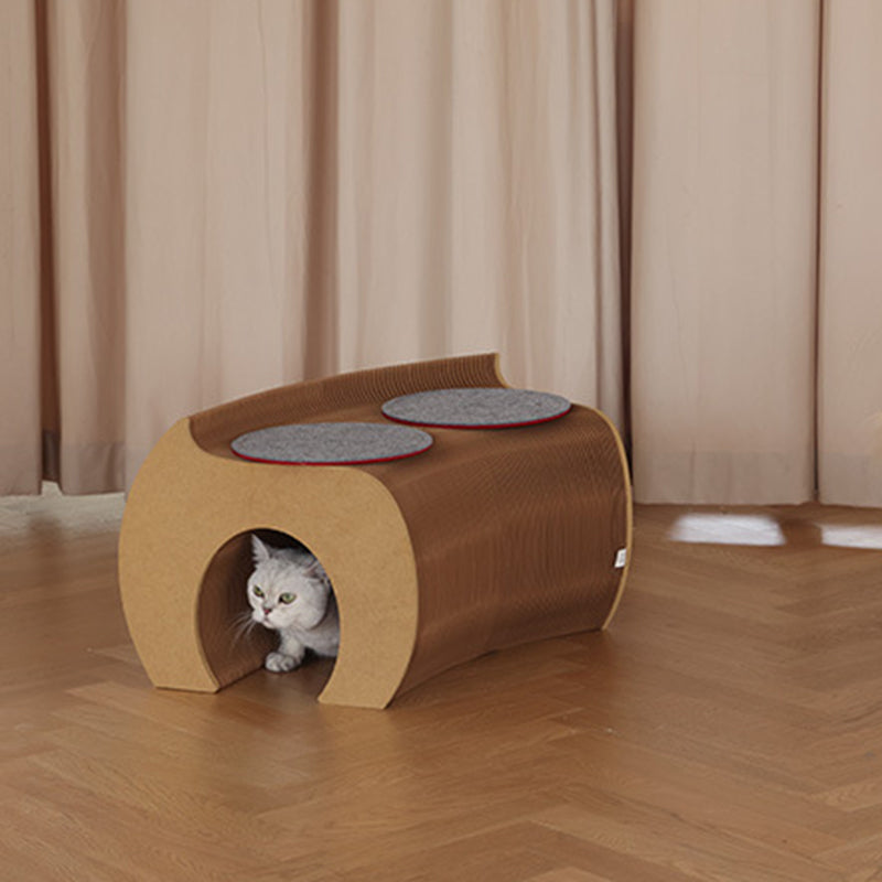 Elevate your pet’s lounging experience with this modern decorative round cat bed, a masterpiece of "Sustainable Minimalist" design. Merging the fun of a tunnel-inspired play zone with the security of a cozy cat cave, this 2-in-1 sanctuary satisfies a feline's natural instinct to hide and explore. Crafted from high-density, water-resistant kraft paper, it features a unique accordion-style structure that offers incredible strength and a striking architectural silhouette. Finished in neutral white and earthy brown tones, it functions as a sophisticated "Boho-chic" accent piece that complements modern living rooms and designer bedrooms.