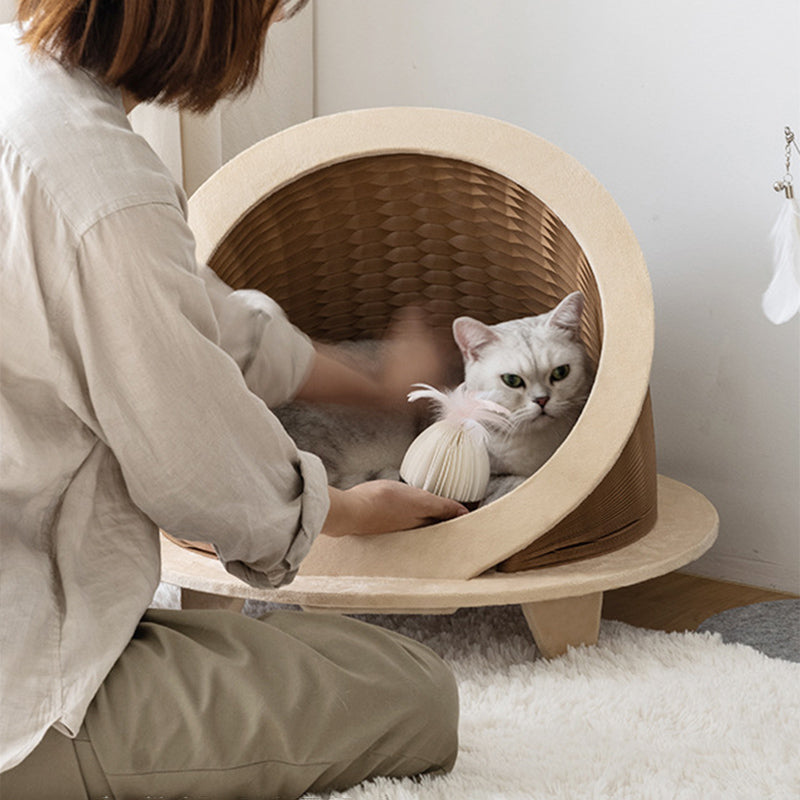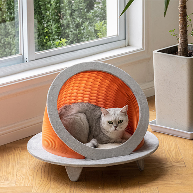Discover the perfect balance of "privacy and airflow" with our modern round cat bed, a masterclass in functional pet decor. Featuring an innovative ventilated hollow-out design, this enclosed cat house creates a secure, cave-like retreat that keeps your pet warm in the winter while remaining remarkably breathable during the summer. Crafted from heavy-duty, eco-friendly kraft paper using a reinforced honeycomb structure, it offers a lightweight yet "anti-collapse" sanctuary. Available in a curated palette of Earthbound Brown, Golden Yellow, Sunset Orange, and Charcoal Gray, it transforms from a cozy hideaway into a "statement-making accent piece" that elevates any modern living room or bedroom.