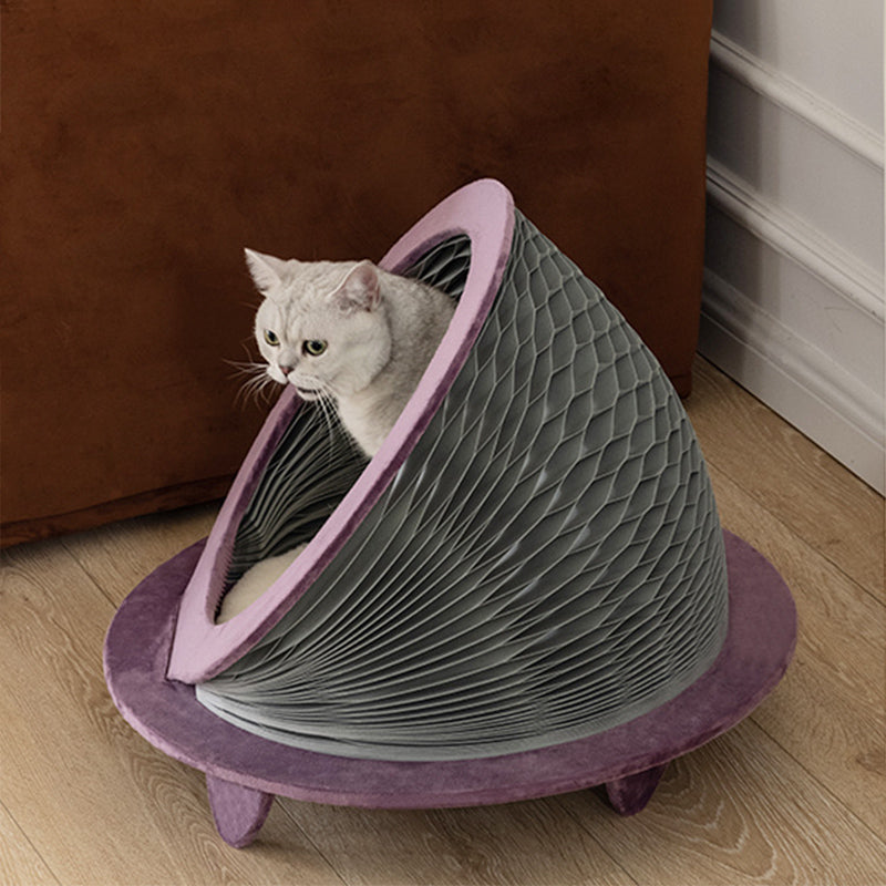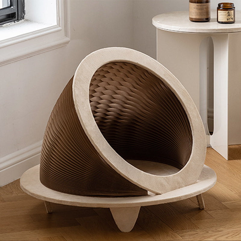 Modern Art Deco Round Kraft Paper OSB Board Velvet Fabric Foldable Cat Bed For Bedroom