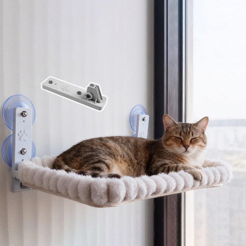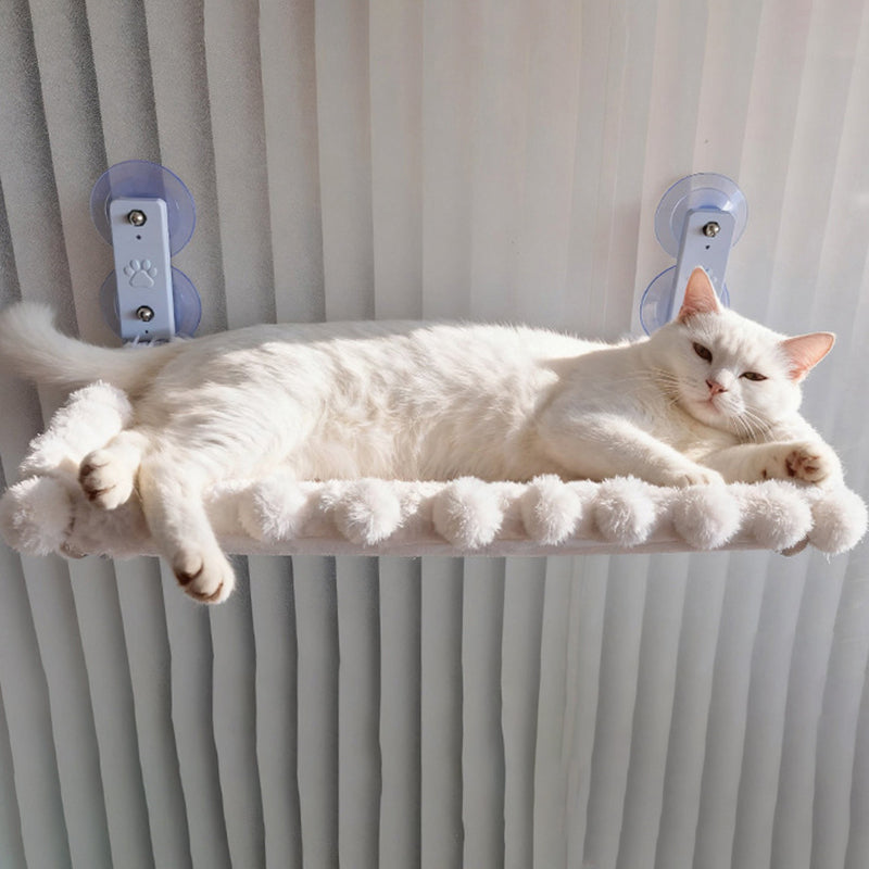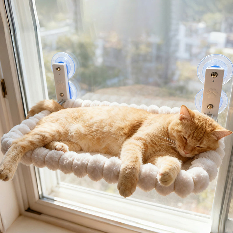 Elevate your cat’s relaxation with this foldable window hammock, a perfect blend of durable nylon and soft plush fabric. Specifically designed for fall and winter, the thick padding creates a warm, skin-friendly sanctuary that stays cozy during cooler months. Built on a reinforced steel frame with spacious load-bearing support, it attaches securely to smooth surfaces via high-strength suction cups. Complete with a built-in storage pocket and finished in an elegant cream white, this scratch-resistant retreat is a stylish, easy-to-clean addition to any modern bedroom.