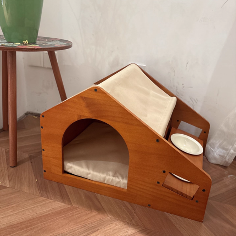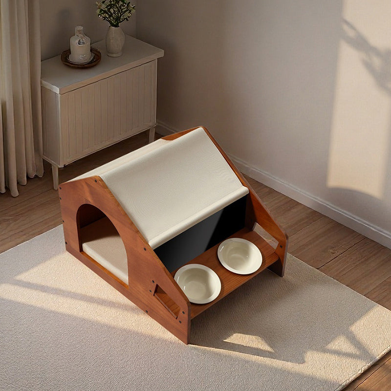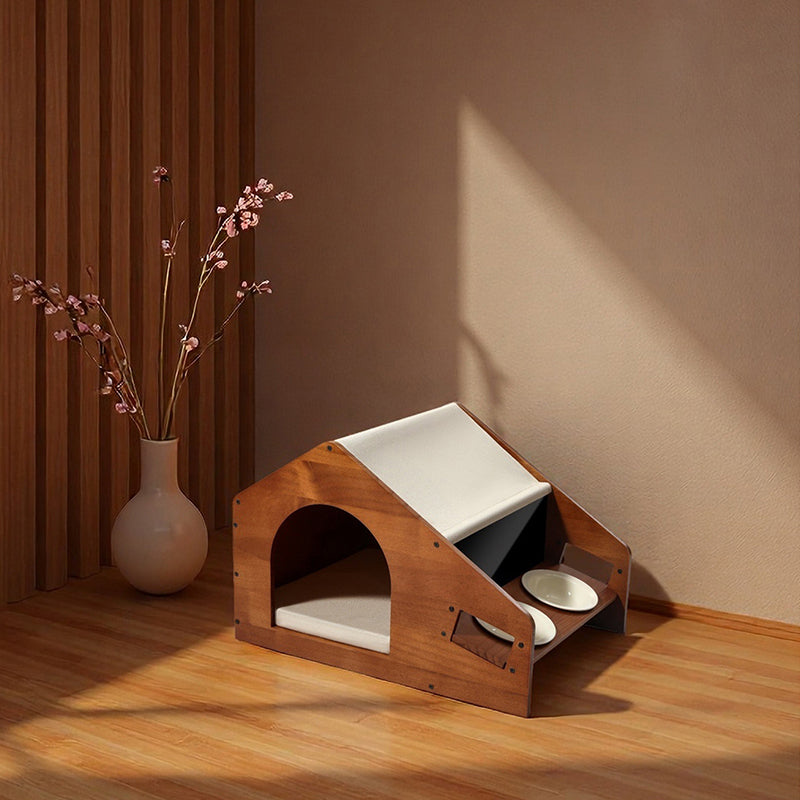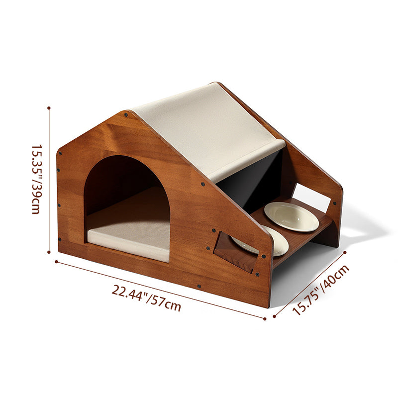 Embodying classic elegance and practical utility, this traditional house-shaped pet home features a thoughtful integrated eat-and-rest design that functions as a complete indoor villa for small dogs. The structure is meticulously crafted from a sturdy hardwood frame with a rich walnut finish, providing reliable weight support and a thickened base for lasting stability.