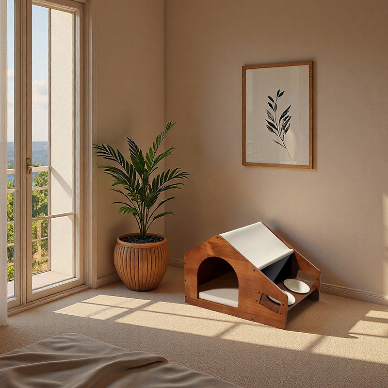 The interior offers a spacious, inviting layout lined with soft, washable fabric to ensure your pet’s comfort is as prioritized as the home’s aesthetic. Designed to serve as a refined piece of furniture, this pet villa combines easy maintenance with a timeless look that enhances the sophistication of any living room.