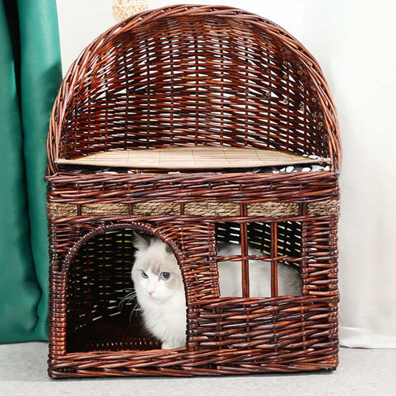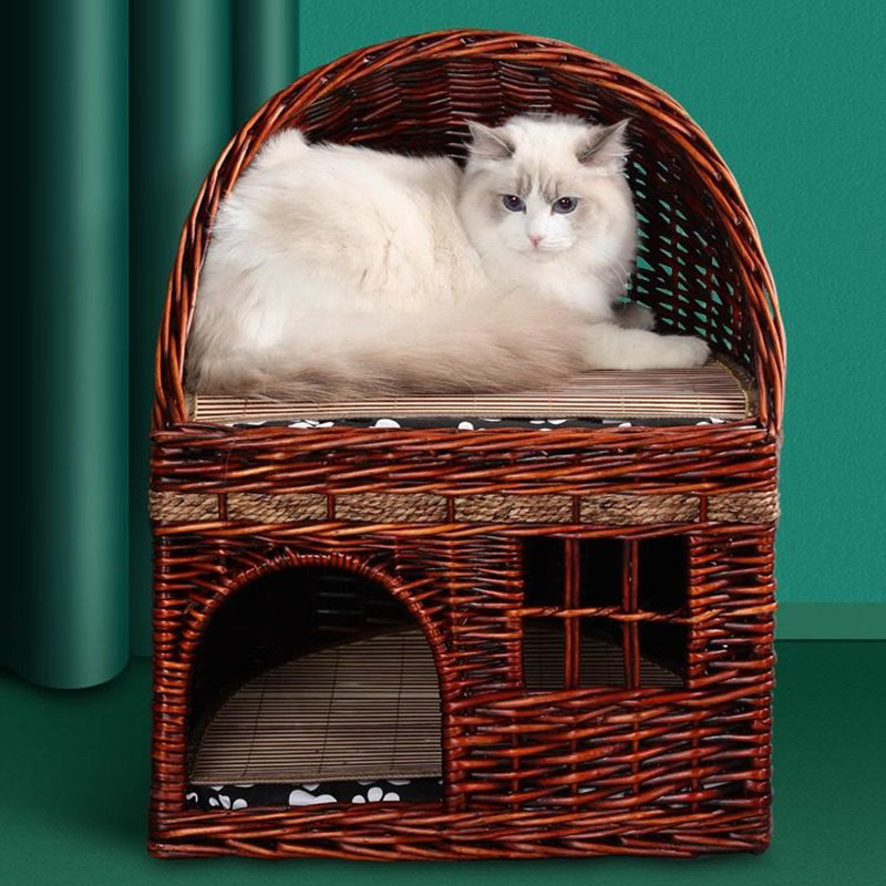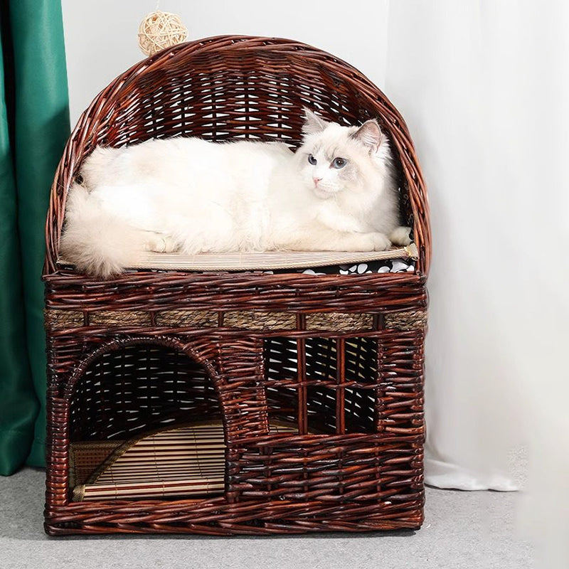 Embrace the warmth of "Organic Modern" design with the Artisan Duplex, a stunning 2-tier handwoven cat bed that brings sustainable luxury to your home. Moving away from synthetic plastics and foams, this sanctuary is meticulously hand-crafted from natural willow branches and rugged hemp rope, offering an authentic, earthy texture that complements "Boho-Chic," "Japandi," and "Modern Farmhouse" interiors. The semi-enclosed "cocoon" architecture on the ground floor provides a high-security "Safe-Haven" for deep-sleep recovery, while the elevated upper terrace offers a breezy observation deck for surveying the room. It’s the ultimate four-season retreat that keeps your pets cool in the summer and cozy in the winter.