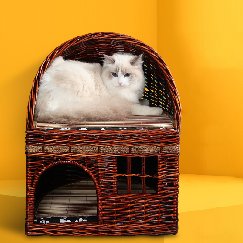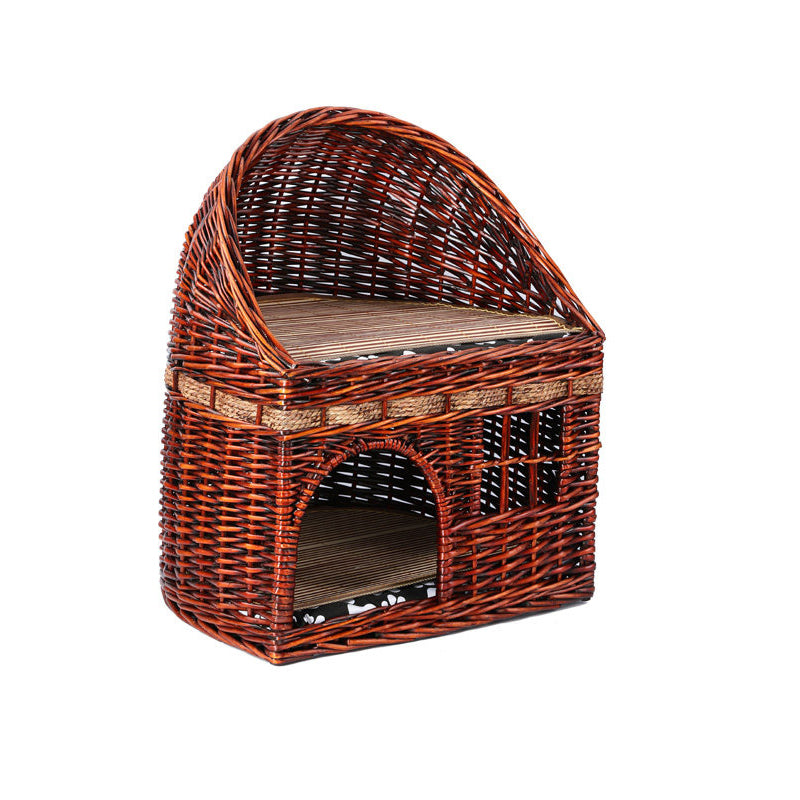 Engineered with "Heirloom-Quality" durability, the Artisan Duplex is built to satisfy the needs of large cats and multi-pet households. The reinforced woven structure is naturally "Rock-Solid," providing a stable, non-collapsing sanctuary for 1-2 cats up to 10 kg (22 lbs). The natural hemp rope accents serve as a built-in scratching surface, redirecting claws away from your expensive rugs and upholstery. Finished in a curated palette of Rich Walnut and Golden Wood tones, this eco-friendly tower transforms a pet utility into a piece of artisanal furniture. This is the premier choice for shoppers seeking natural willow cat beds, handwoven multi-cat condos, breathable rattan-style pet houses, and sustainable luxury cat furniture.