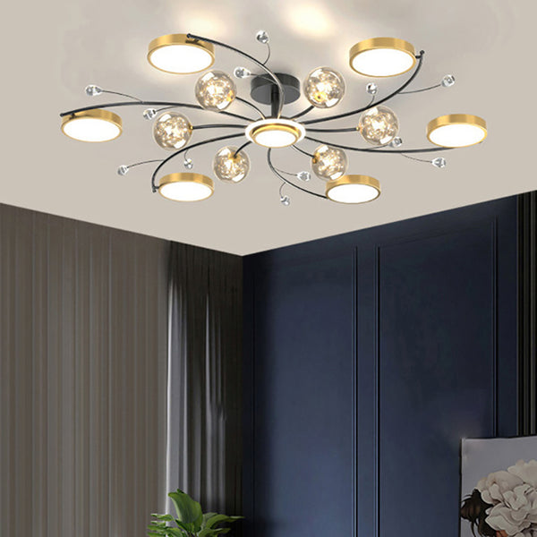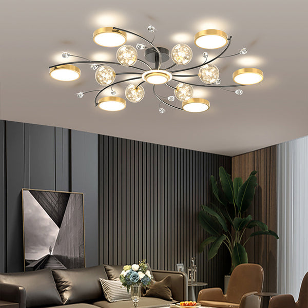 Contemporary Scandinavian Round Molecule Branch Design LED Semi-Flush Mount Ceiling Light For Living Room