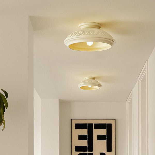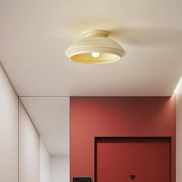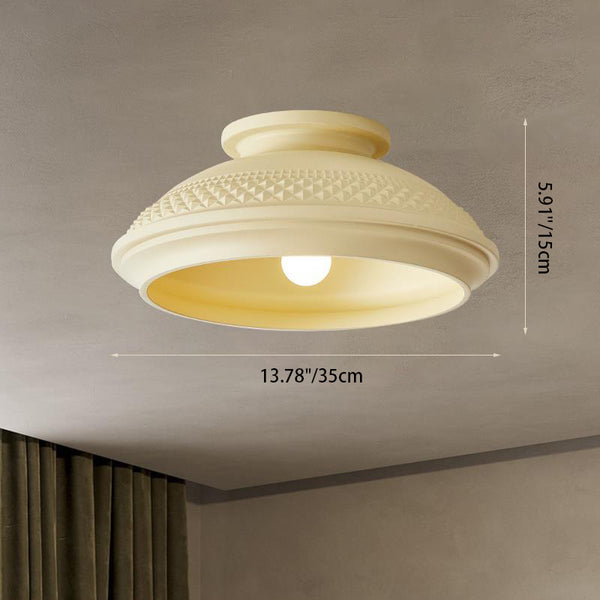 Traditional French Pastoral Checkered Pattern Round Shade 1-Light Semi-Flush Mount Ceiling Light For Living Room