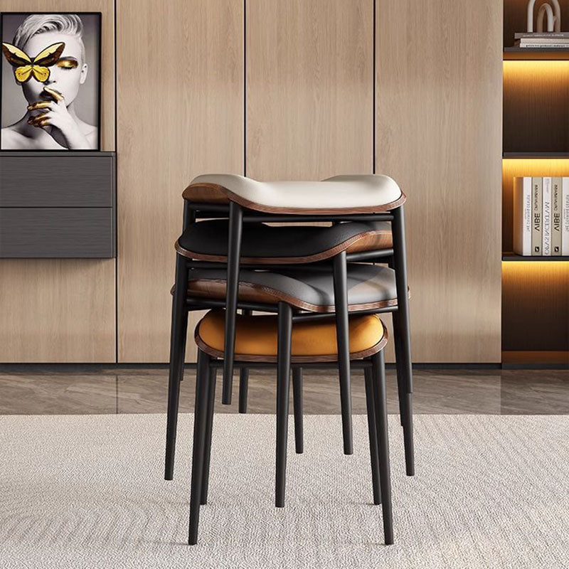 Contemporary Scandinavian Rectangular Cat Scratching Leather Microfiber Leather Carbon Steel Dining Chair Backless Armless For Dining Room