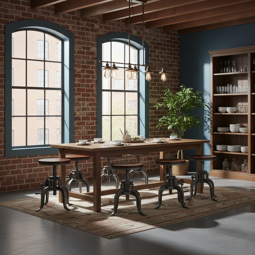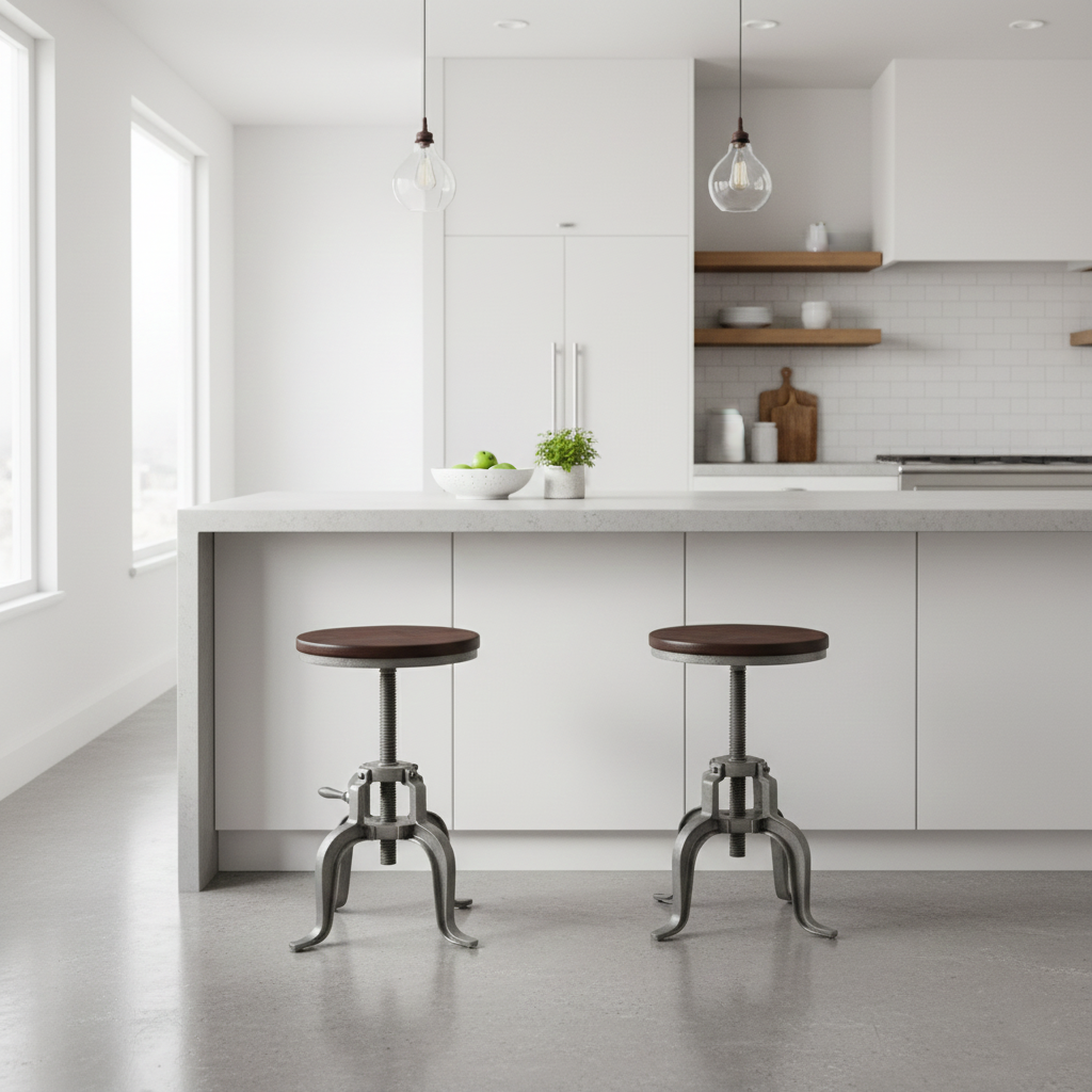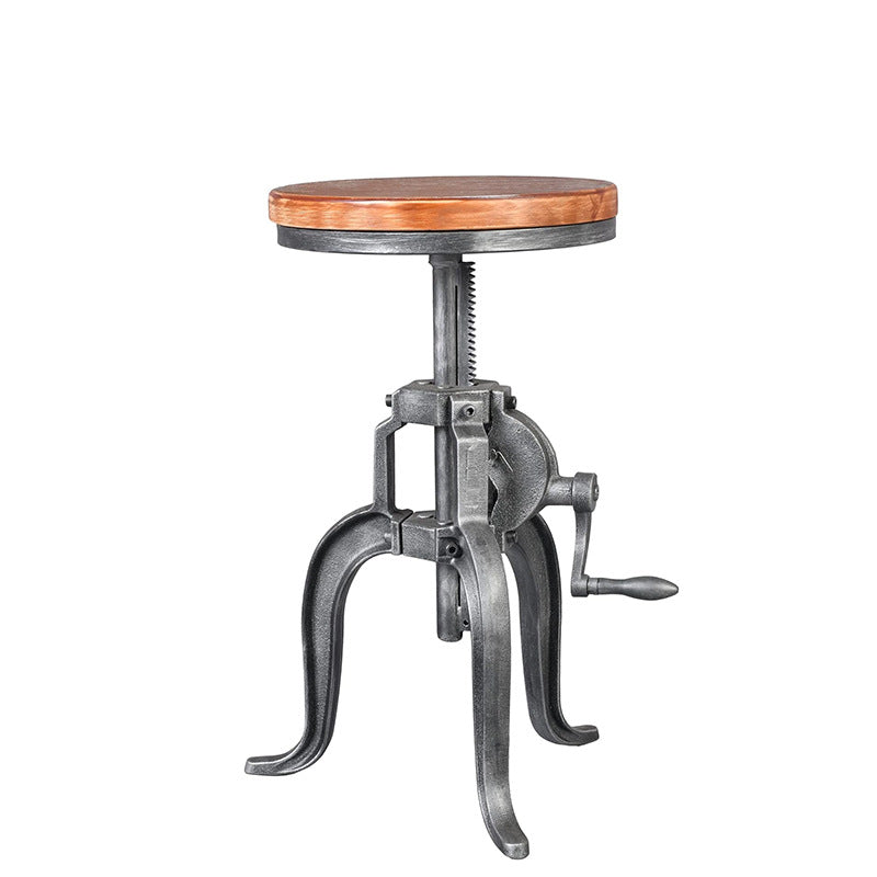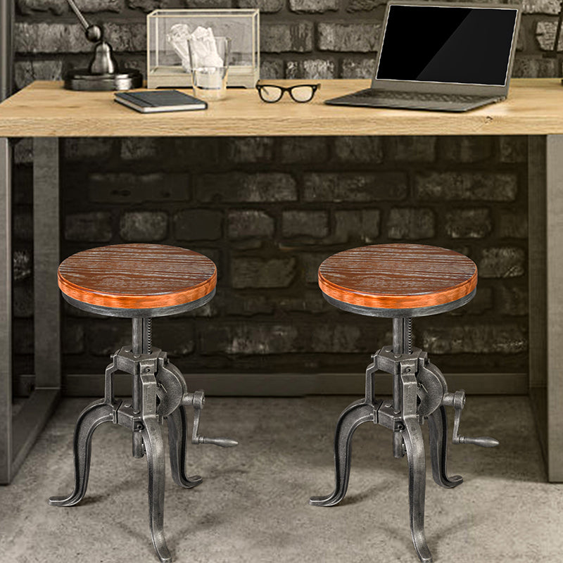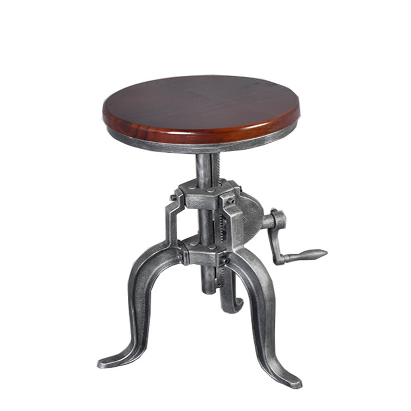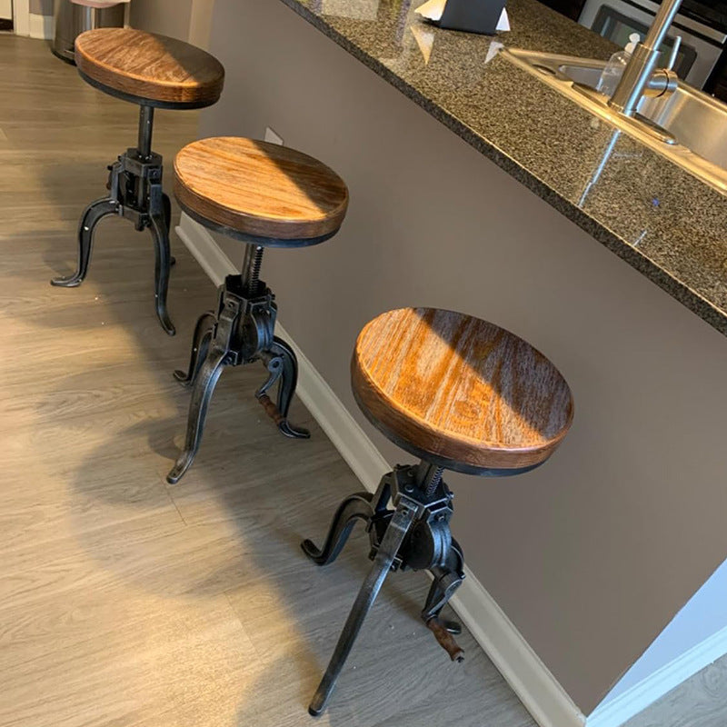 Crafted with a sturdy cast iron frame and a solid wood round seat, this adjustable industrial bar stool is engineered for long-lasting commercial use. The sophisticated blend of warm brown and walnut tones provides a versatile aesthetic, while the design ensures stable support and smooth height adjustment. With its modern minimalist look, this stool serves as the perfect seating solution for restaurants, bars, and cafés seeking both durability and style.