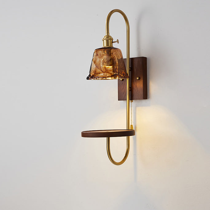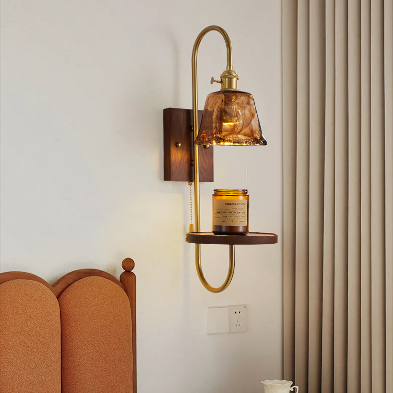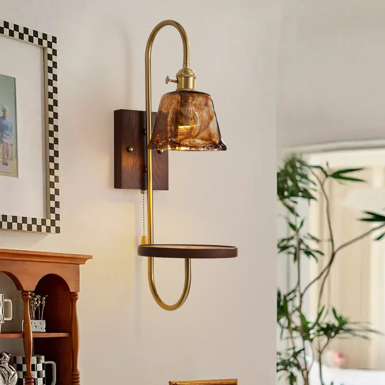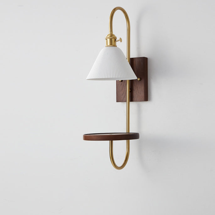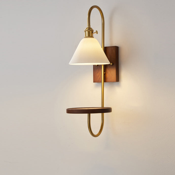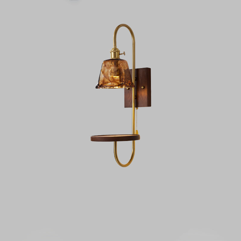 Featuring a refined mix of ceramic, glass, iron, and walnut wood, this 1-light wall sconce delivers evenly diffused, high-CRI lighting that's soft on the eyes. With its curved conical and rectangular shapes in warm white and brown tones, it adds a timeless, vintage touch to your living room atmosphere.