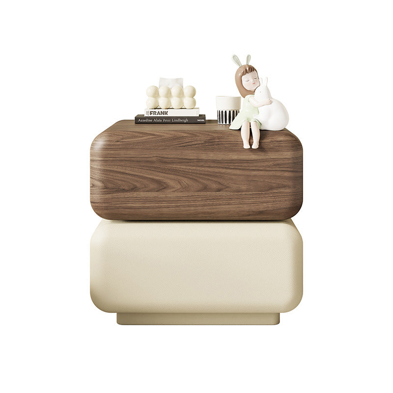 This traditional Chinese-inspired nightstand features a rotating rounded-square silhouette crafted from solid wood and cat-scratch-resistant material, offering two smooth, durable drawers for organized bedside storage. Available in walnut, black, beige, natural wood, and mint green, it delivers a stylish, wear-resistant, and elegant upgrade to any bedroom.