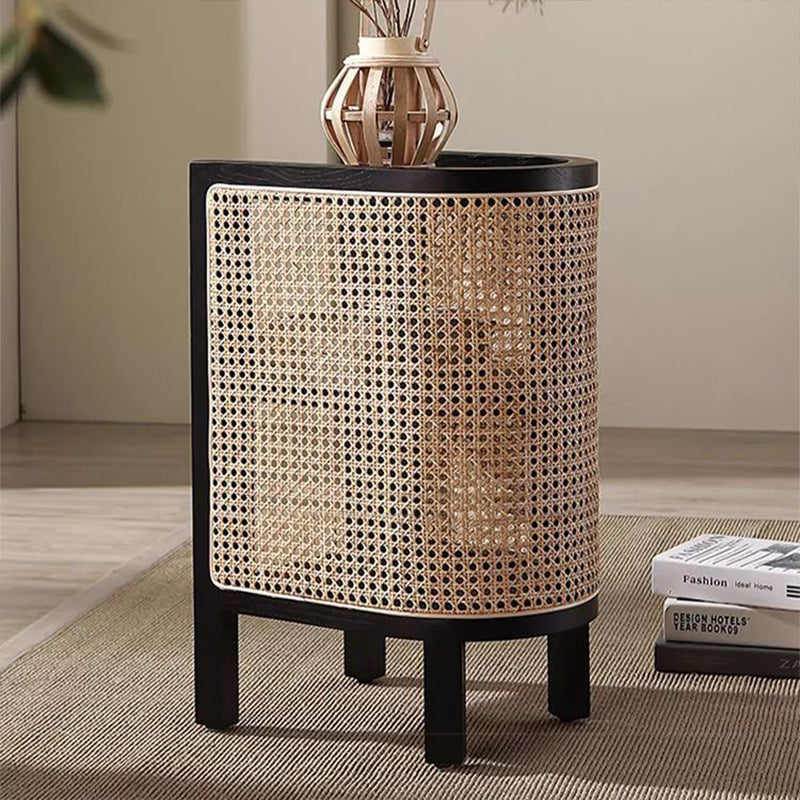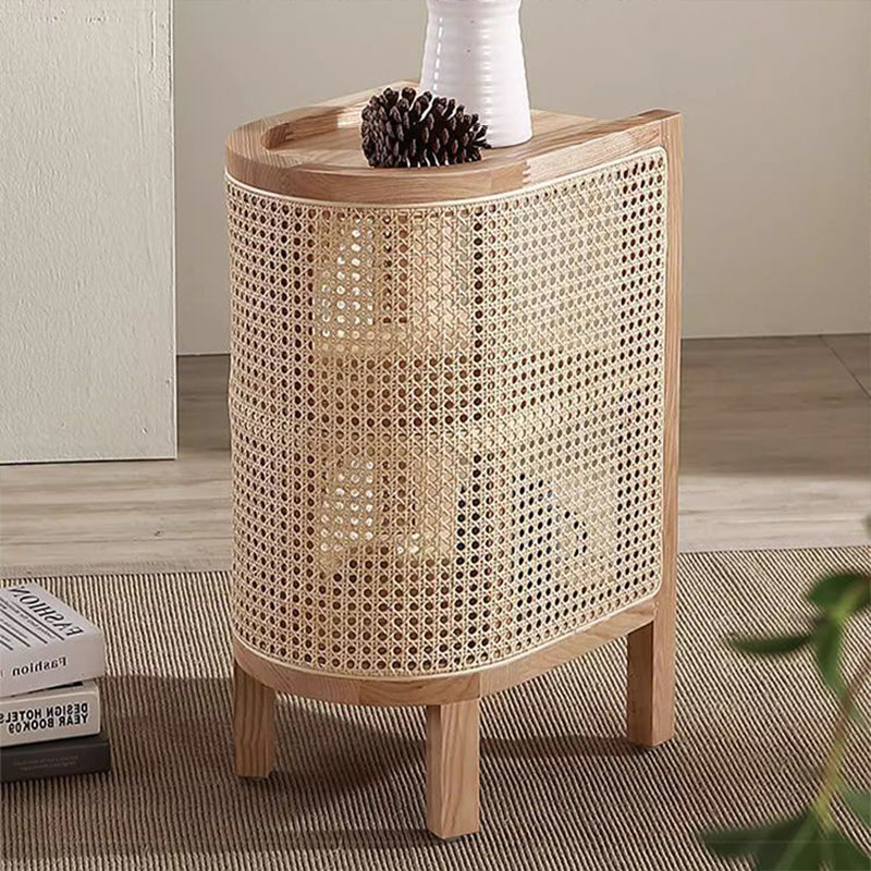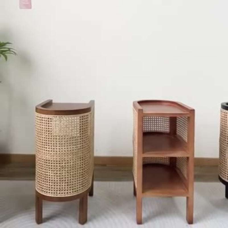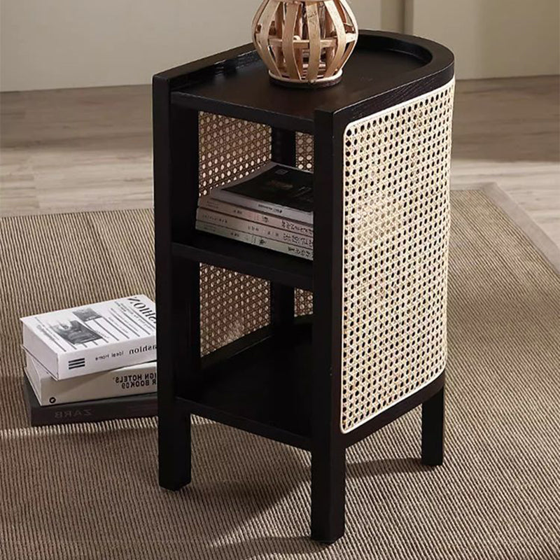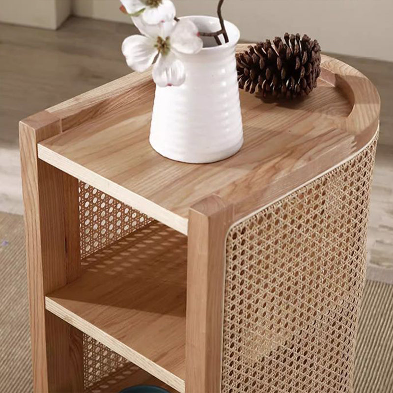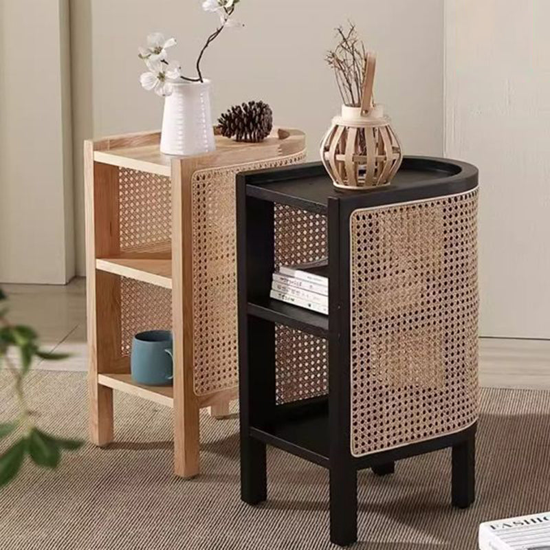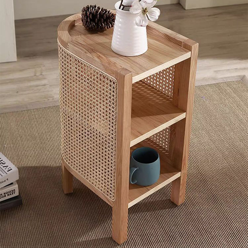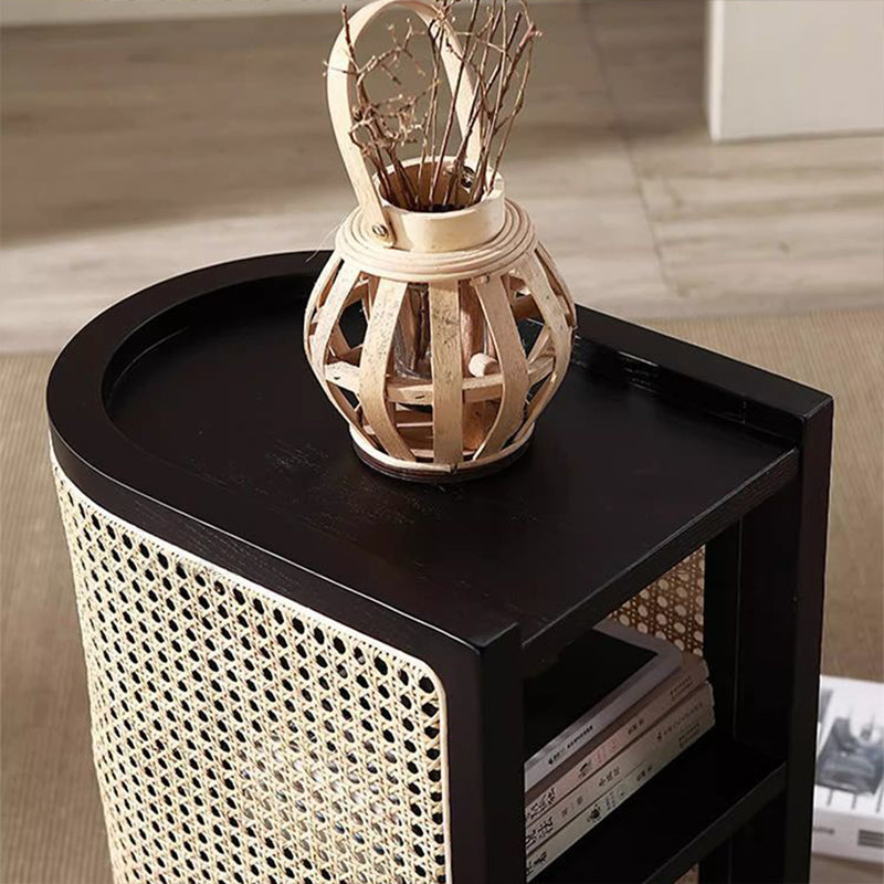 Contemporary Boho Half-Circle Shape Rattan Solid Wood Side Table 3-Tier For Living Room