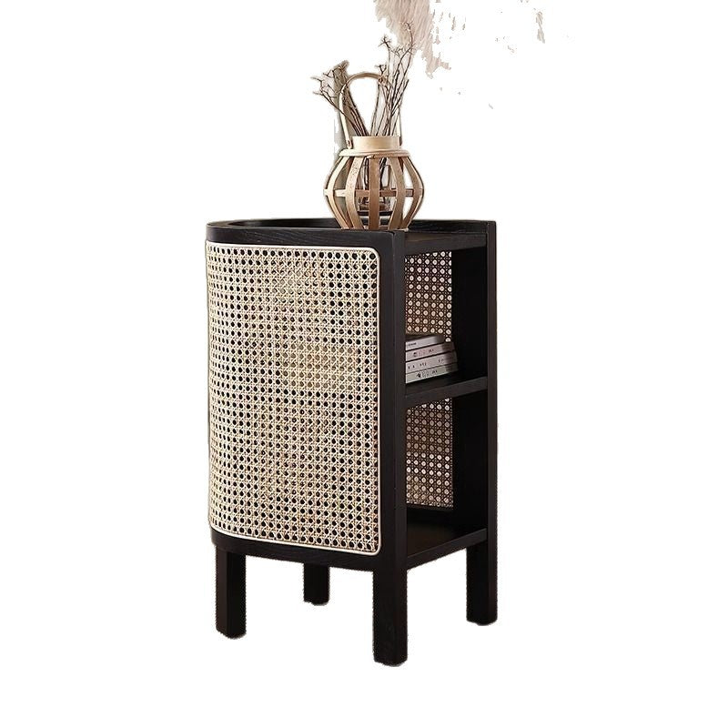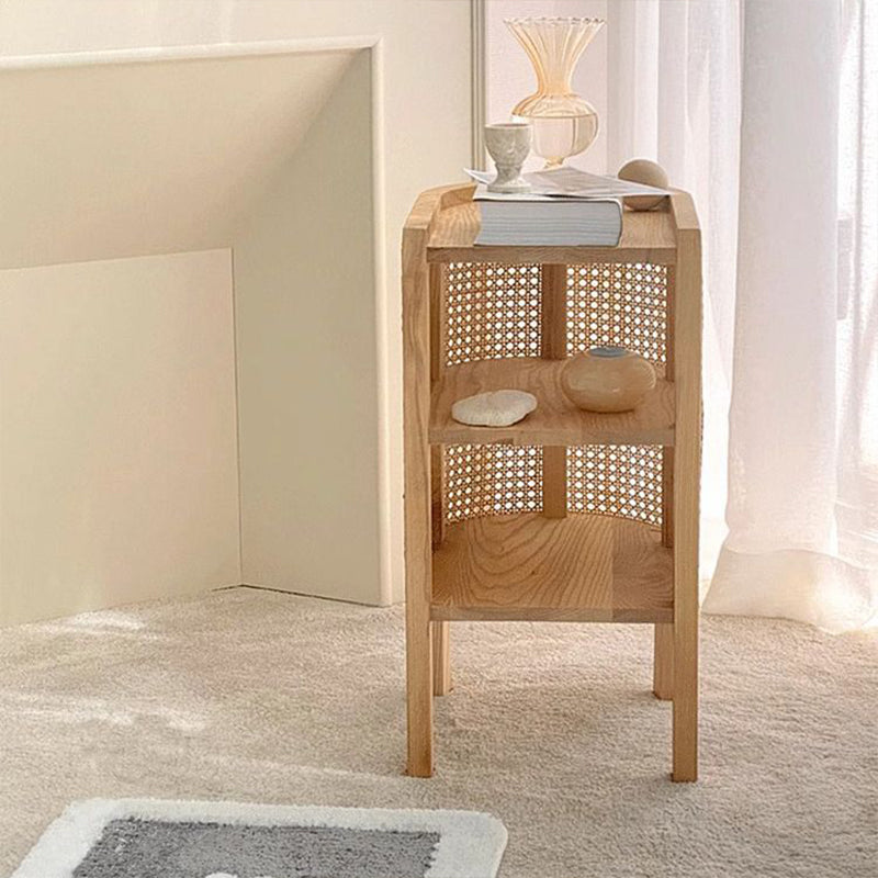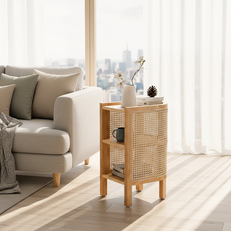 Crafted for durability and style, this piece features a lightweight, three-tier storage design anchored by a sturdy solid wood frame and enhanced with a naturally breathable rattan weave.