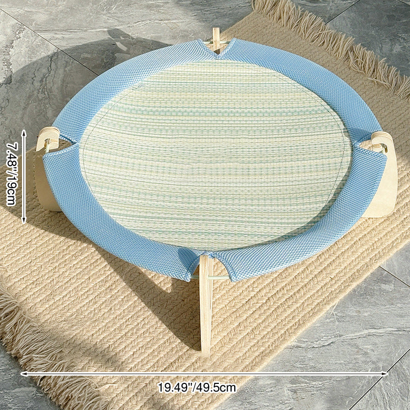 Contemporary Boho Round Multi-Layer Solid Wood Panel Asian Grass Mat Cat Bed For Bedroom