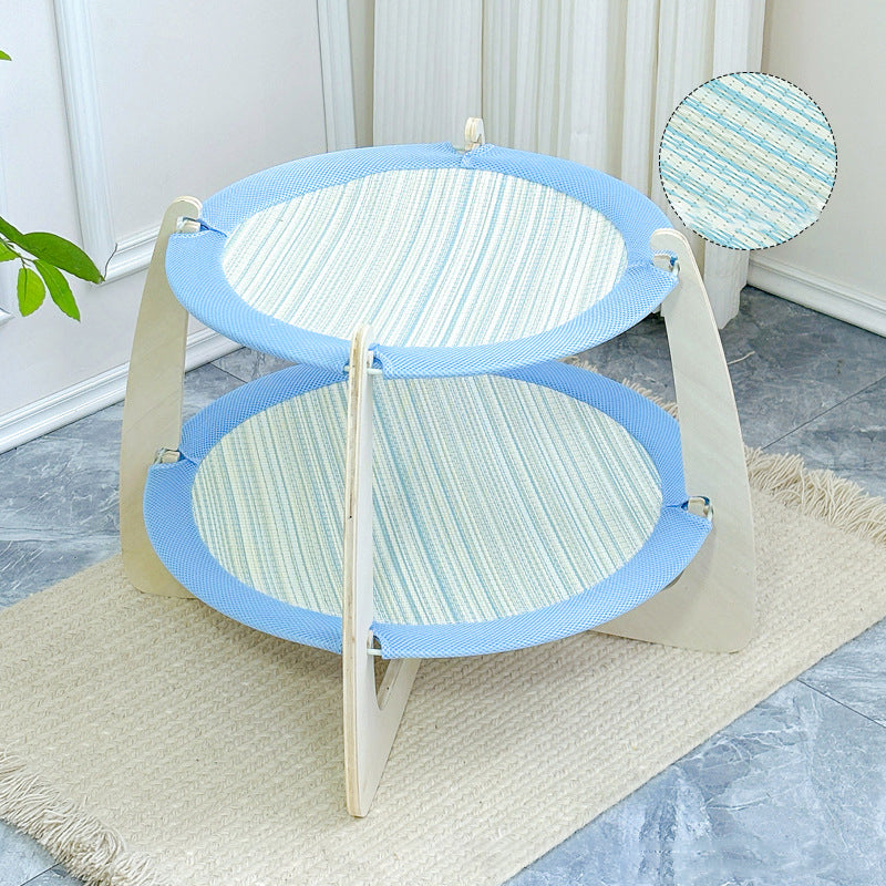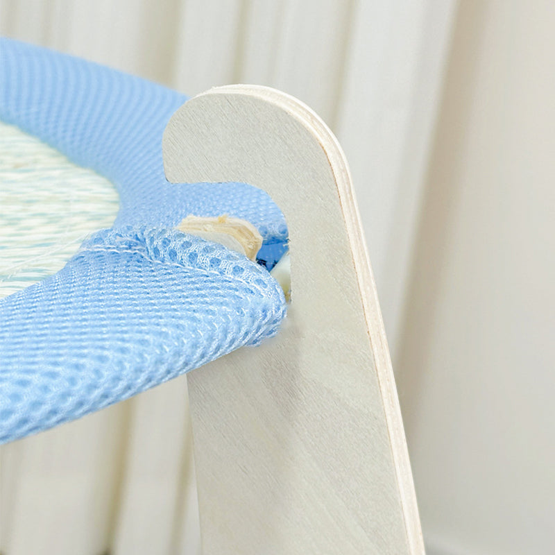 Engineered for "all-season versatility," this multifunctional pet bed doubles as a premium scratching lounge, as the rugged texture of the rush mat is naturally resistant to claws and satisfies a cat's instinct to groom. Finished in a "calming blue and natural wood" palette, its minimalist aesthetic "blends seamlessly" into modern living rooms, sun-drenched porches, or cozy bedrooms. Whether your cat is looking for a deep midday nap or a quick stretch, this durable, low-maintenance pet hammock is an essential upgrade for any style-conscious home. Optimized for North American consumers searching for cooling cat beds, natural rush mat pet furniture, elevated wooden cat hammocks, and breathable summer pet loungers.