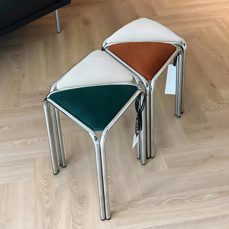 Designed with a soft velvet cushion filled with high-density sponge, this stackable triangular stool offers comfortable seating supported by durable, rust-resistant stainless steel legs. Available in multiple vibrant colors, it brings a modern creative touch to living rooms or bedrooms while saving space with its easy-stack design.