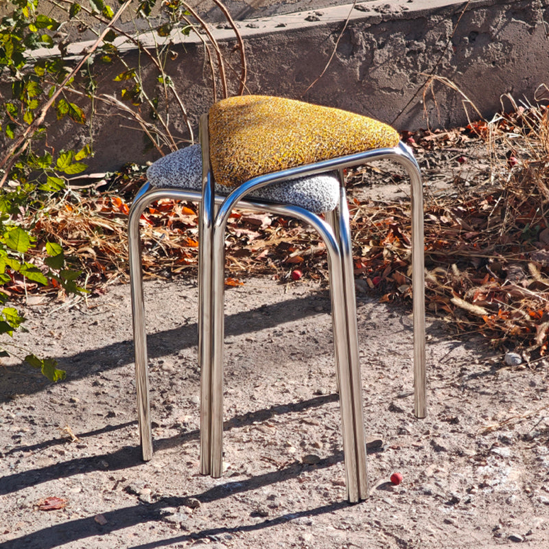 Contemporary Creative Flannelette Stainless Steel Stackable Triangle Low Stool Backless Armless For Living Room