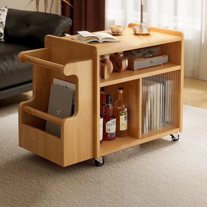 Contemporary Creative Rectangular Handcart-Shaped Glass Solid Wood Side Table 3-Tier For Bedroom