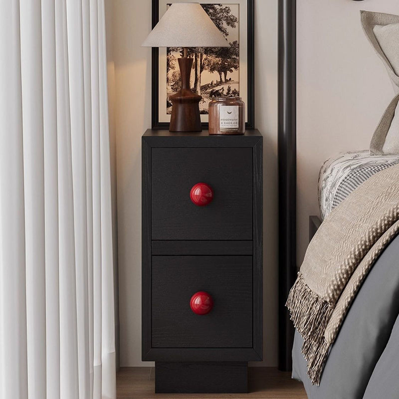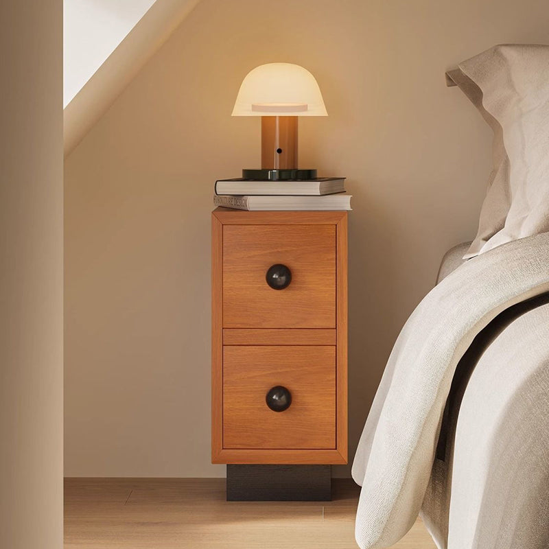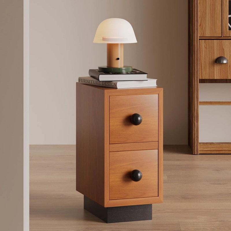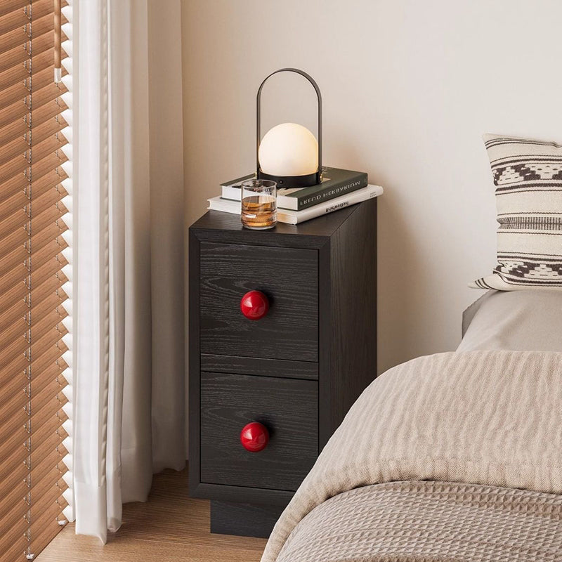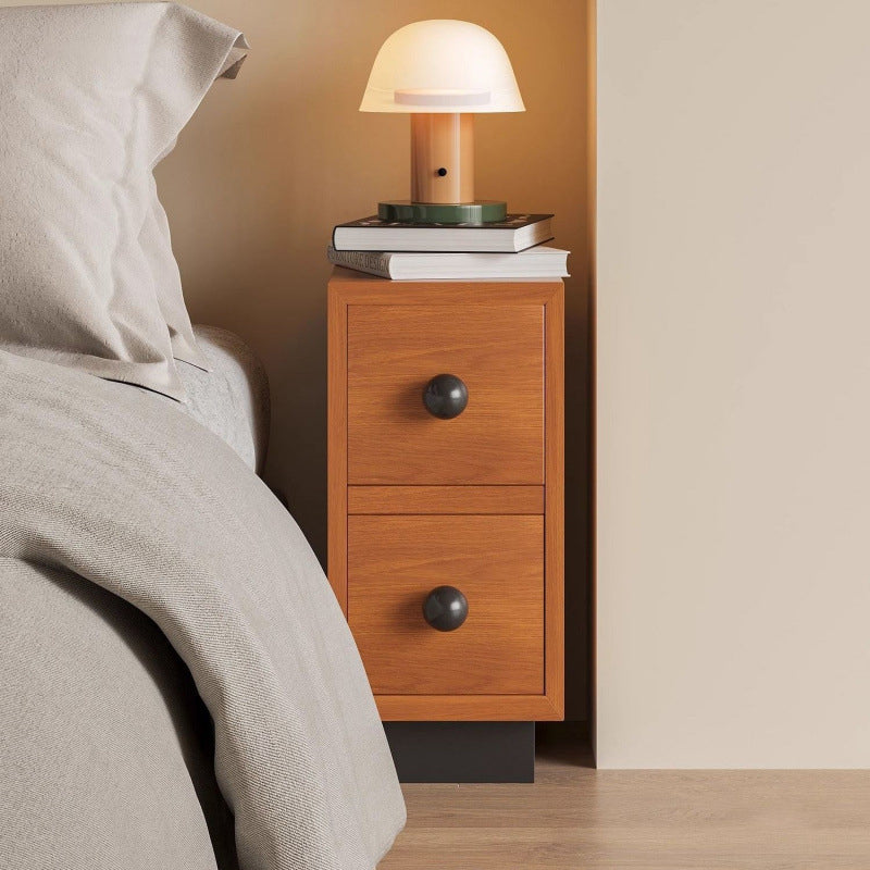 This creative contemporary nightstand combines solid wood, engineered wood, and MDF in a slim rectangular design featuring two storage drawers and a compact footprint perfect for small bedrooms. Available in black and natural wood finishes, it offers stable load-bearing performance and a convenient dual-level layout ideal for organizing bedside essentials.