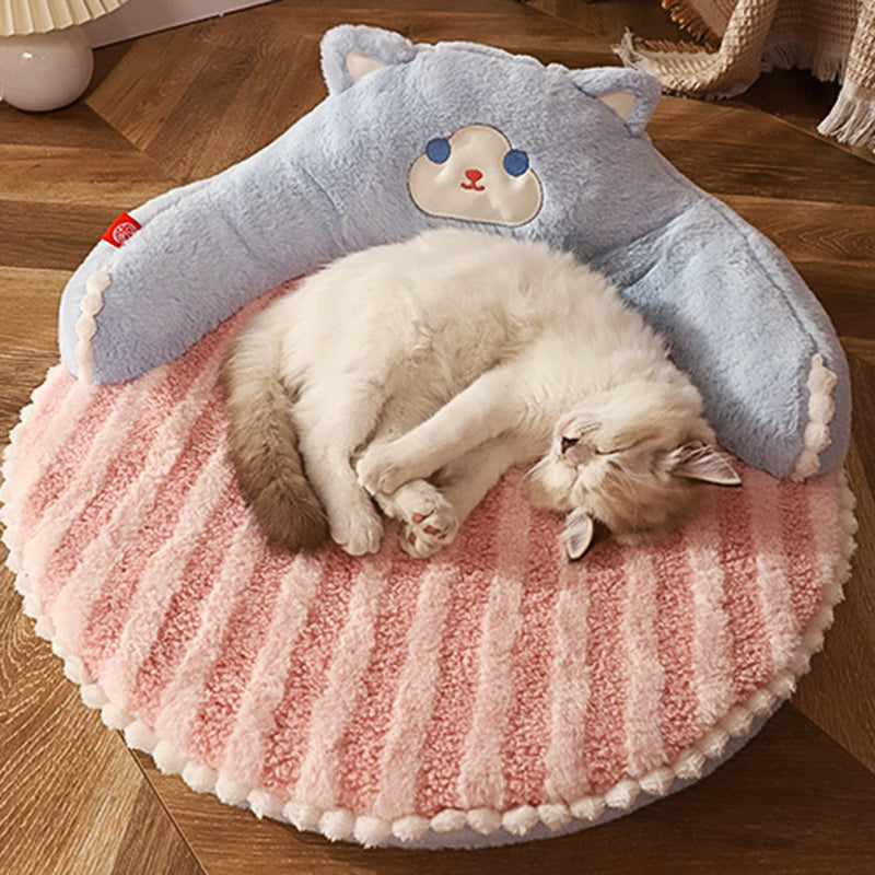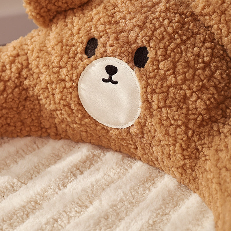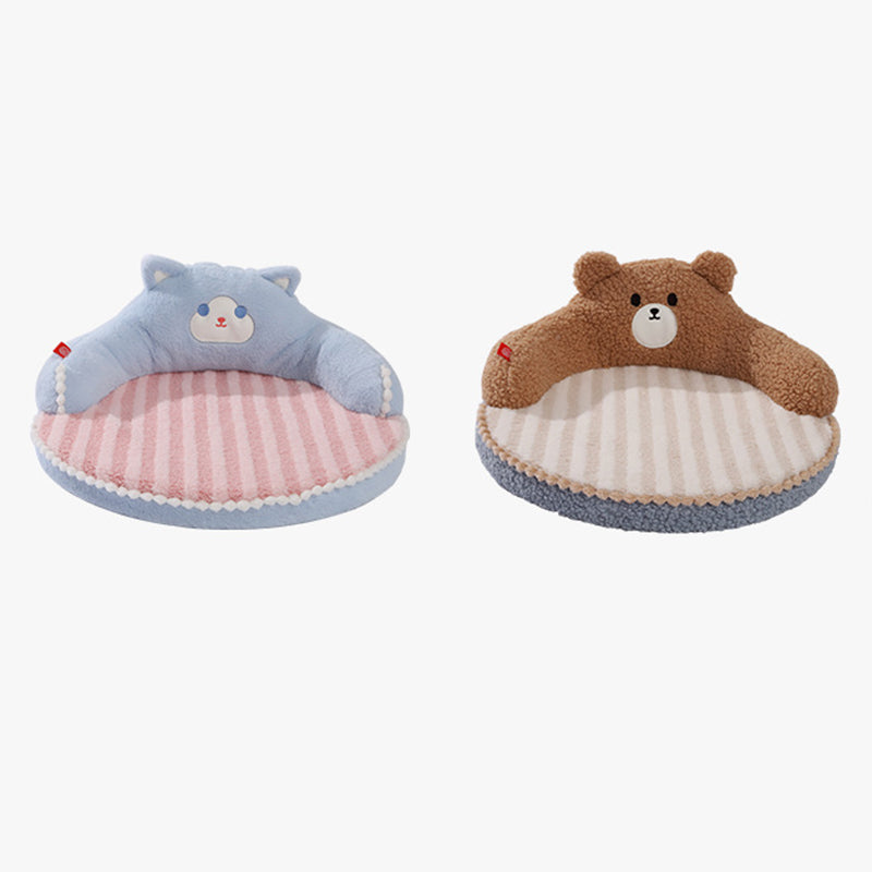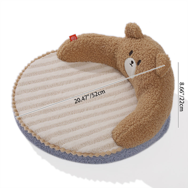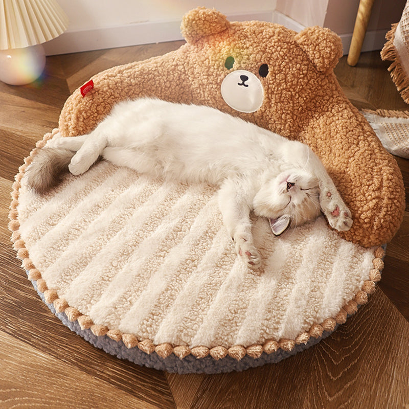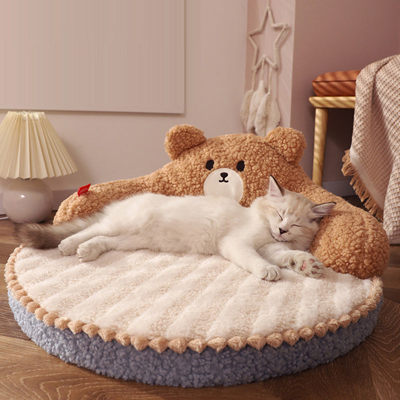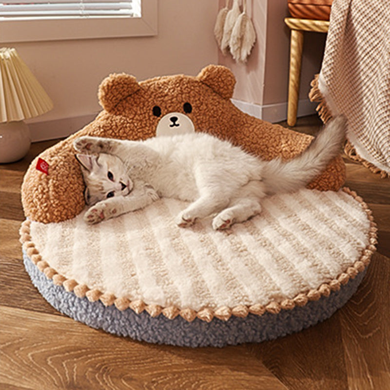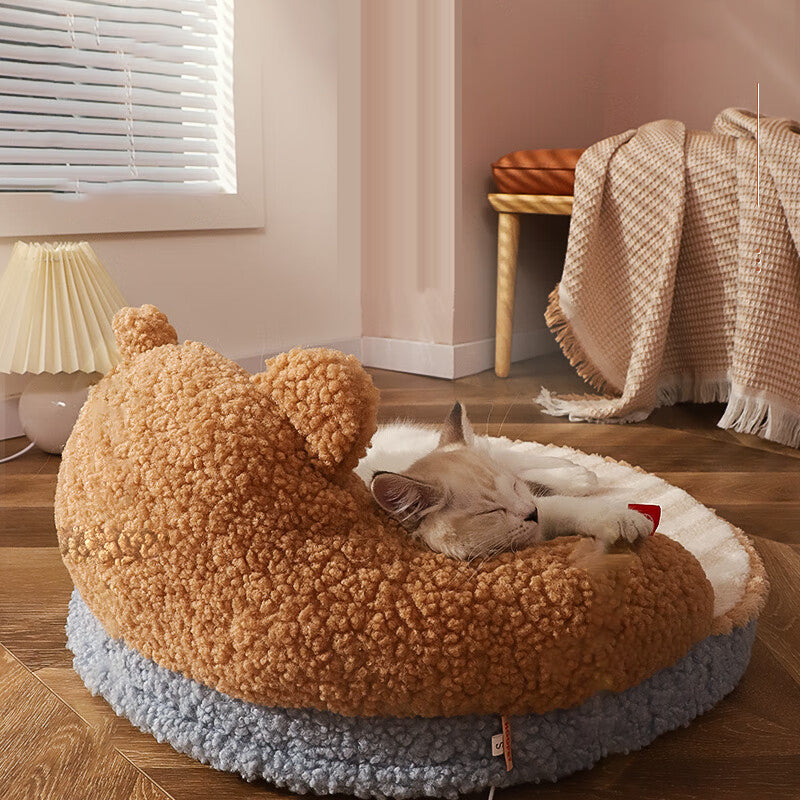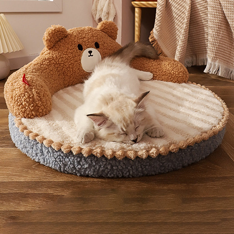 Contemporary Creative Round Velvet Fabric PP Cotton Bear & Kitten-Shaped Cat Bed For Bedroom