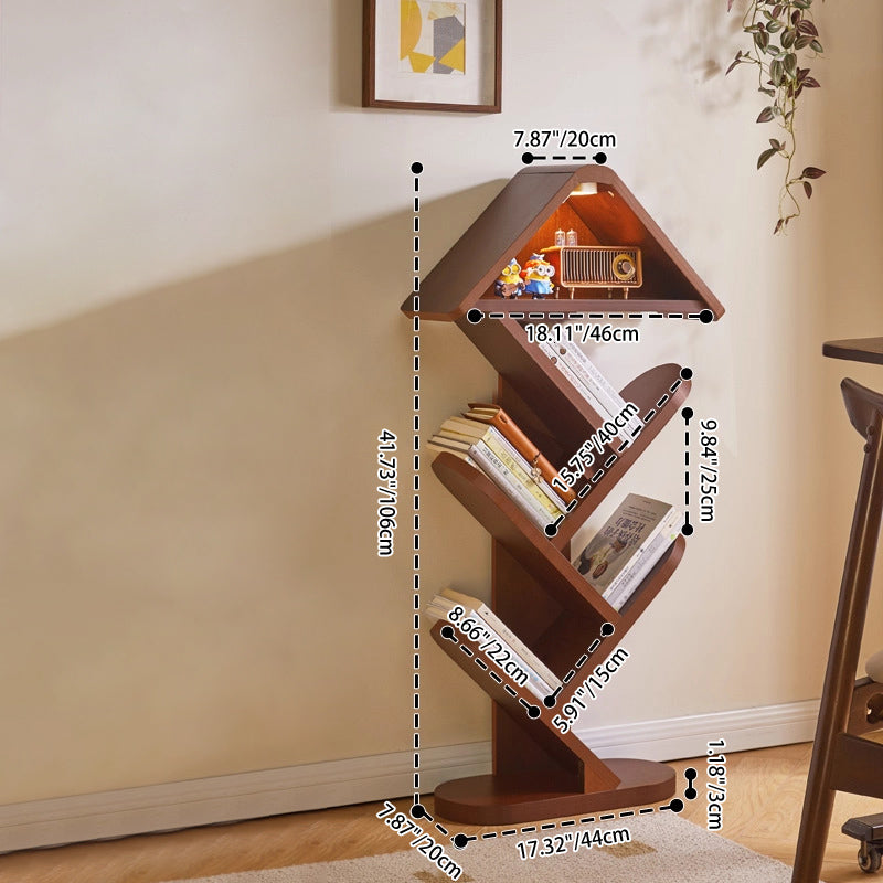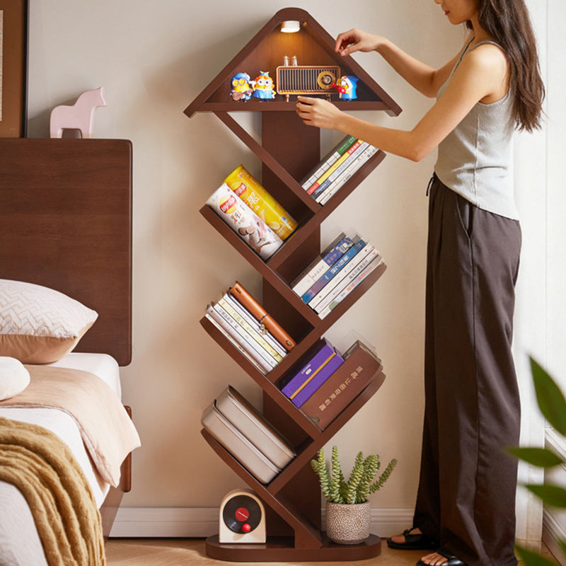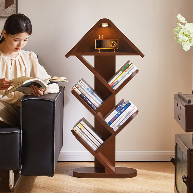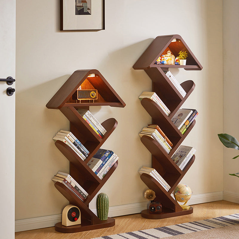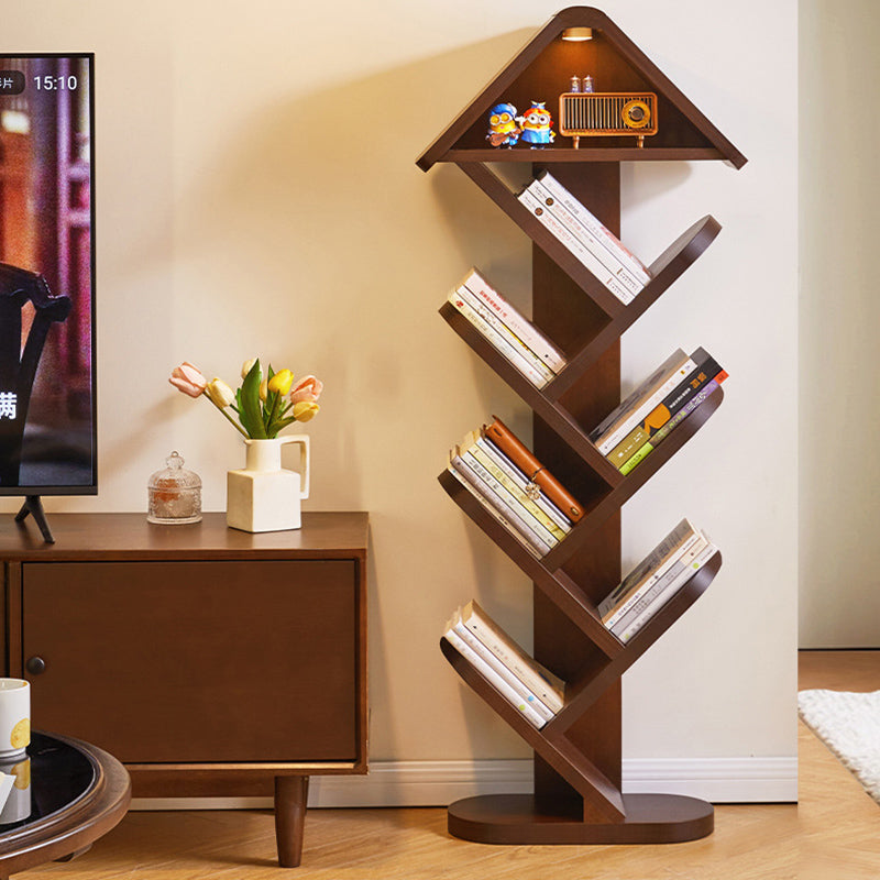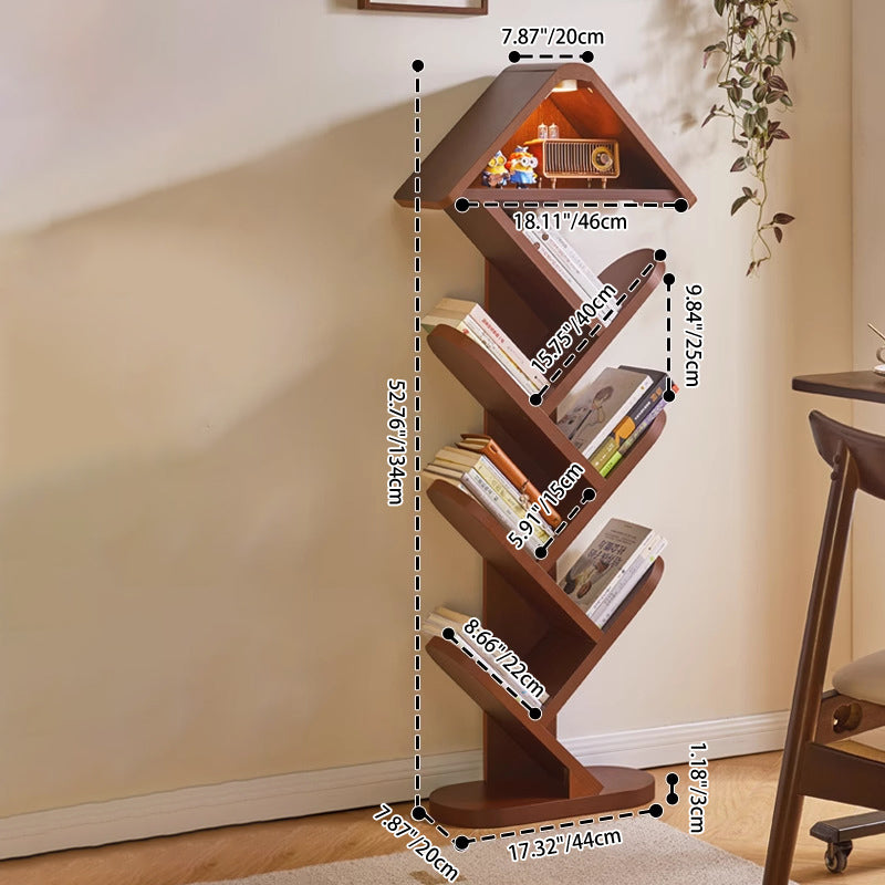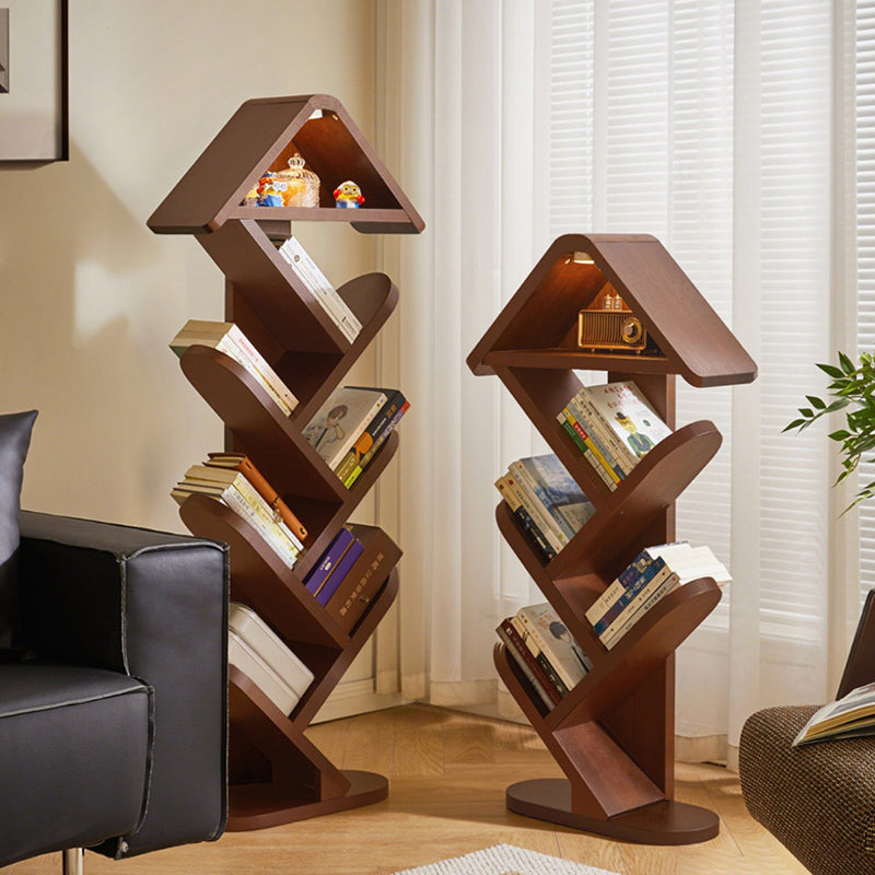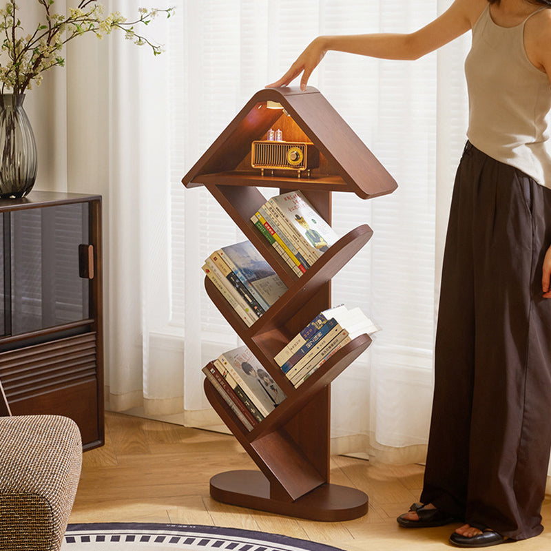 Bring a touch of nature-inspired artistry to your space with this contemporary creative bookshelf. Expertly crafted from solid rubberwood in a rich walnut finish, it features a striking tree-shaped design that transforms your book collection into a visual masterpiece. With 5 or 7 tiers available, it offers flexible, space-saving storage while maintaining a strong load capacity for your favorite volumes. The widened, thickened shelves ensure everyday durability, while the built-in sound-activated LED ambient light—featuring a convenient tap-to-turn-on function—adds a warm, modern glow. It is an eye-catching and practical storage solution perfectly suited for homes, offices, and children’s reading areas.