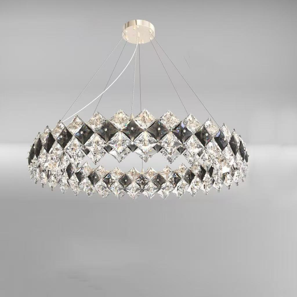 Contemporary Luxury Crystal Diamond Circle Plated Hardware 4/6/8/12/14 Light Chandelier For Living Room