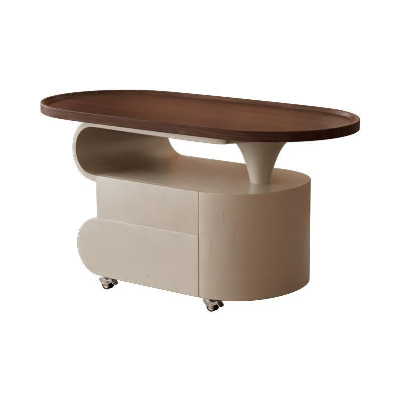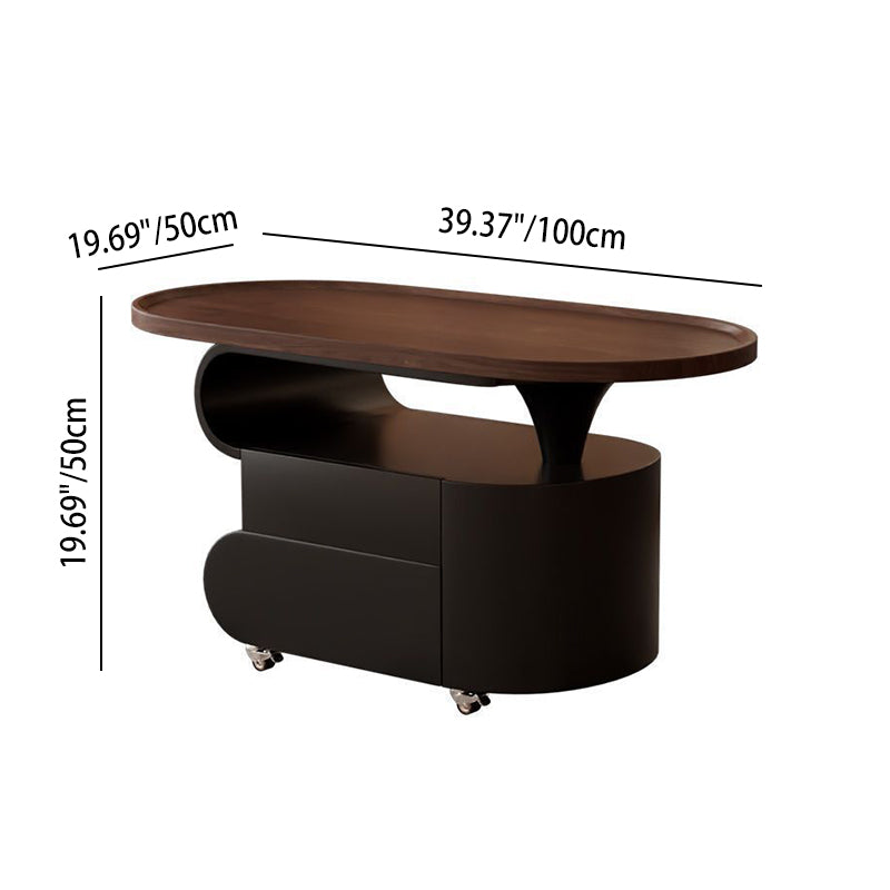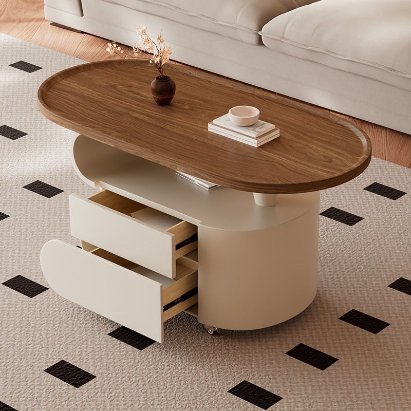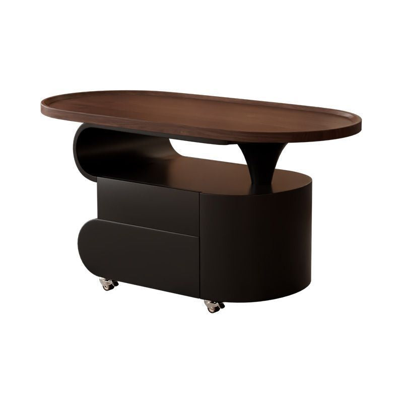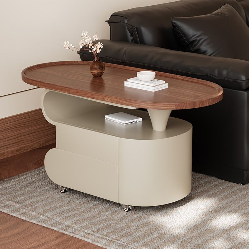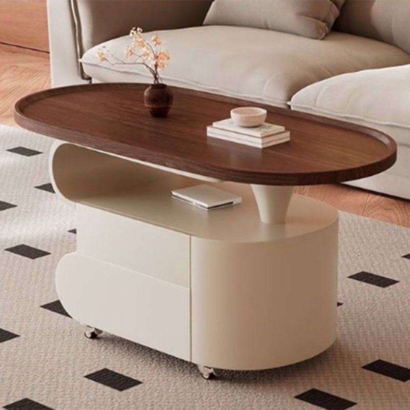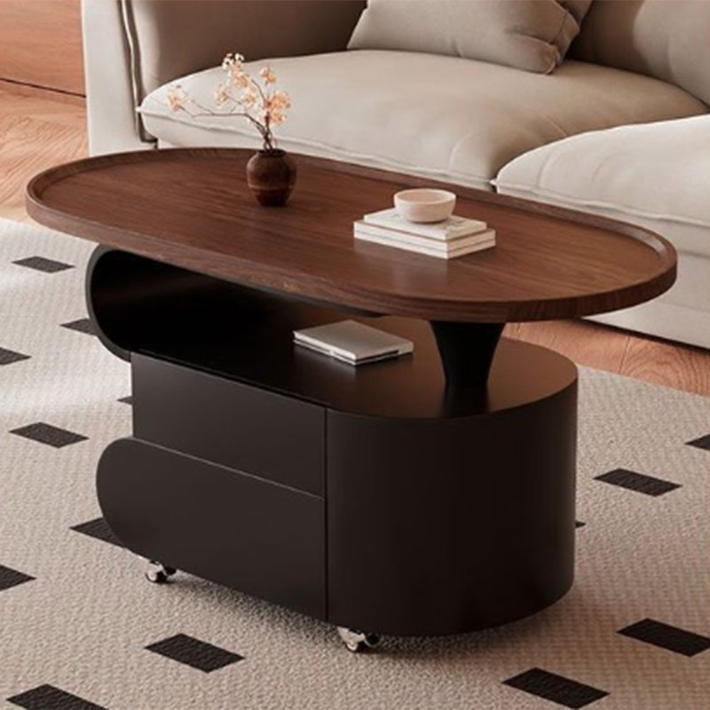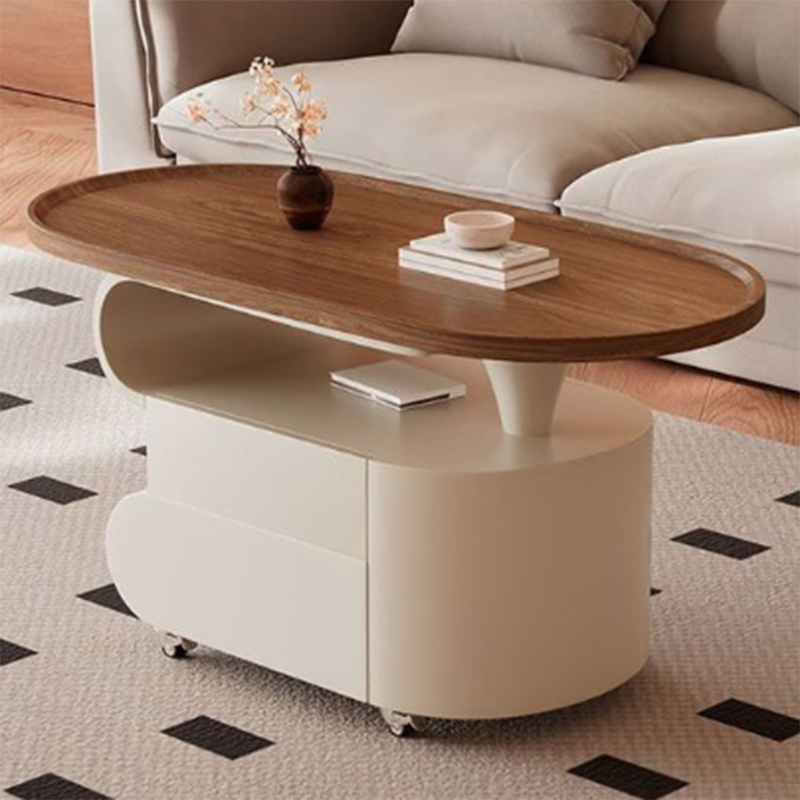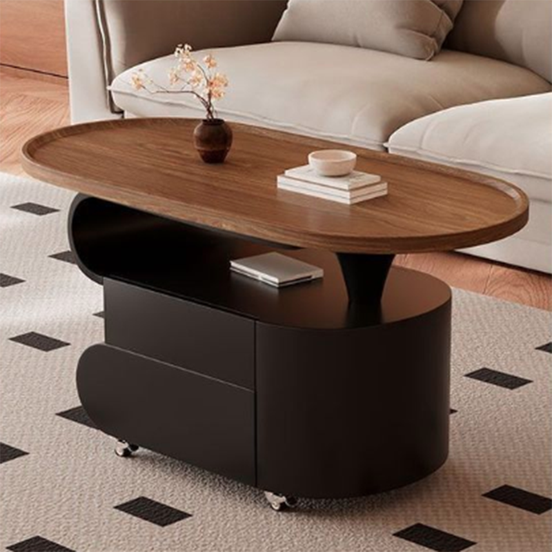 Contemporary Nordic Oval Eco-Friendly Board Carbon Steel Movable Design Coffee Table 2-Drawer For Living Room