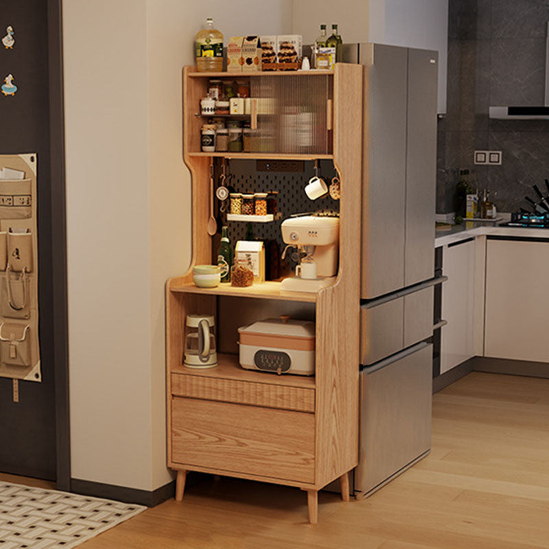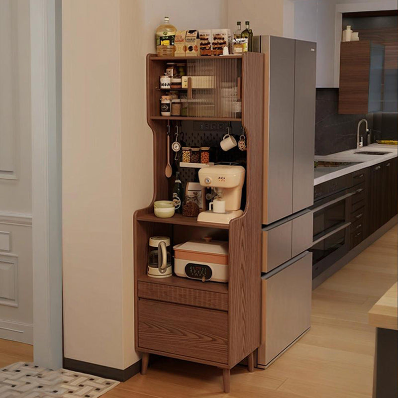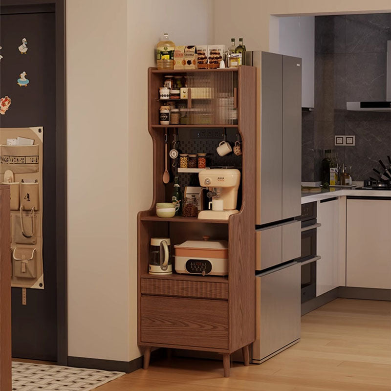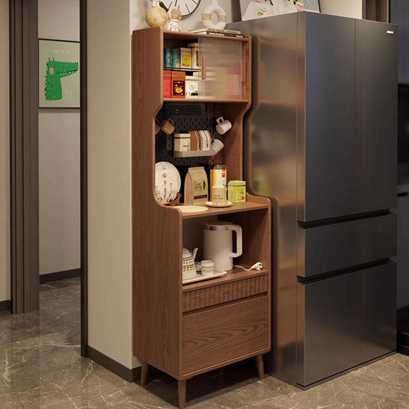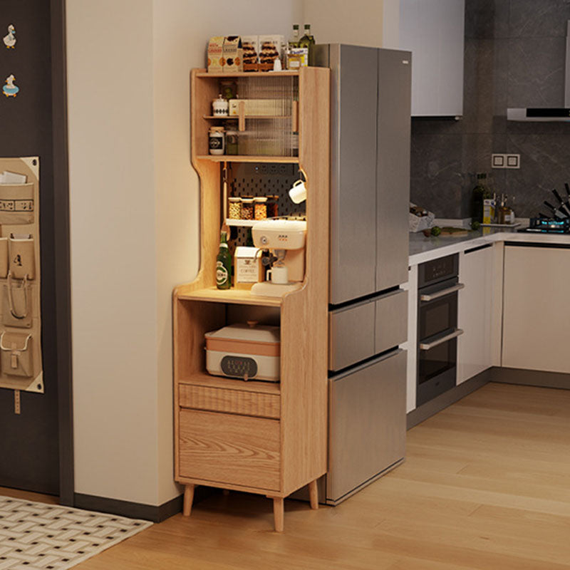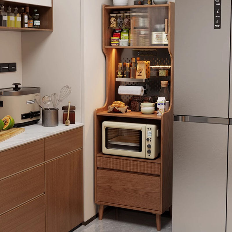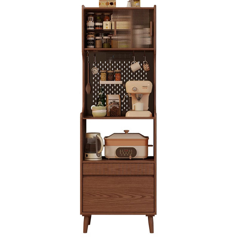The cabinet provides versatile storage options, incorporating two convenient drawers, a large enclosed storage compartment, and four tiers of open shelving for display or quick access. It is built to deliver strong load-bearing performance and includes smooth rounded corners for safety and a polished look.