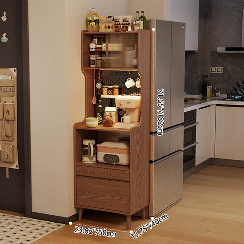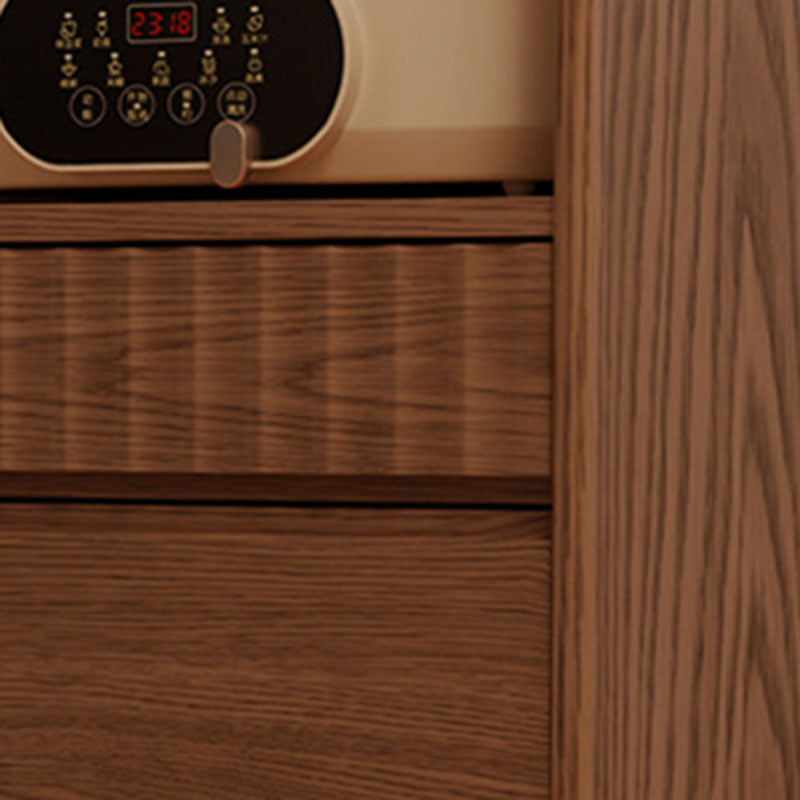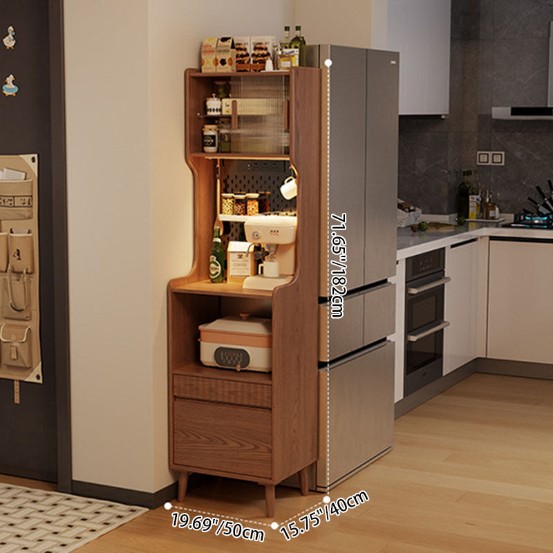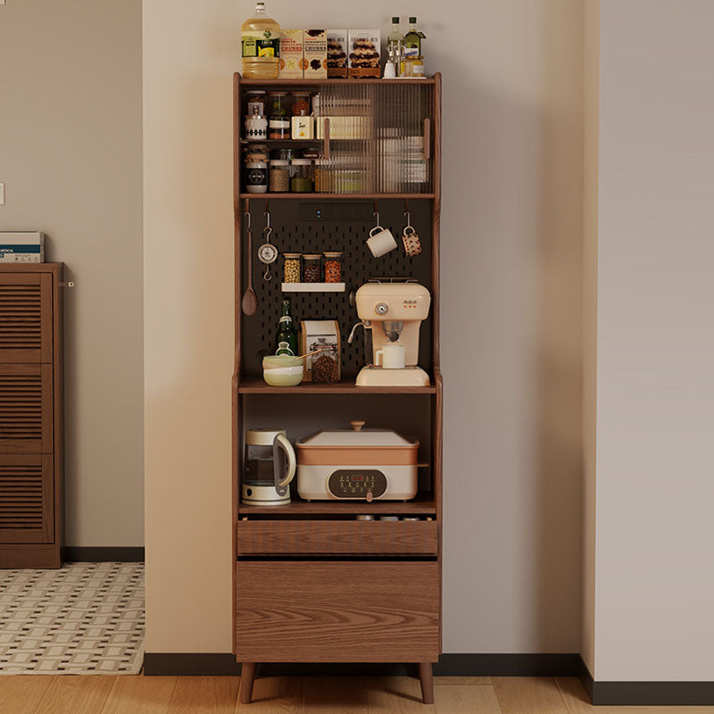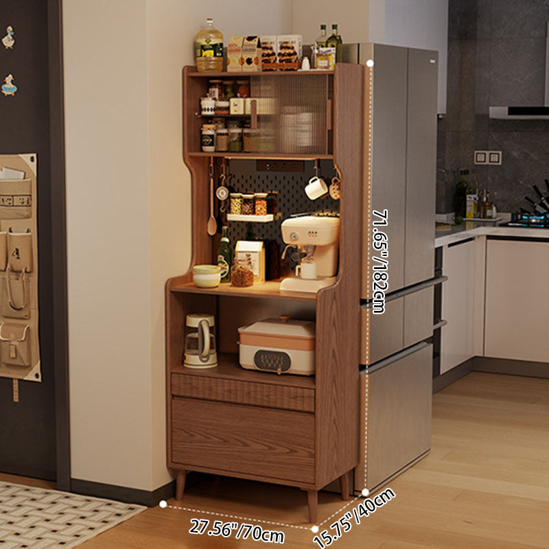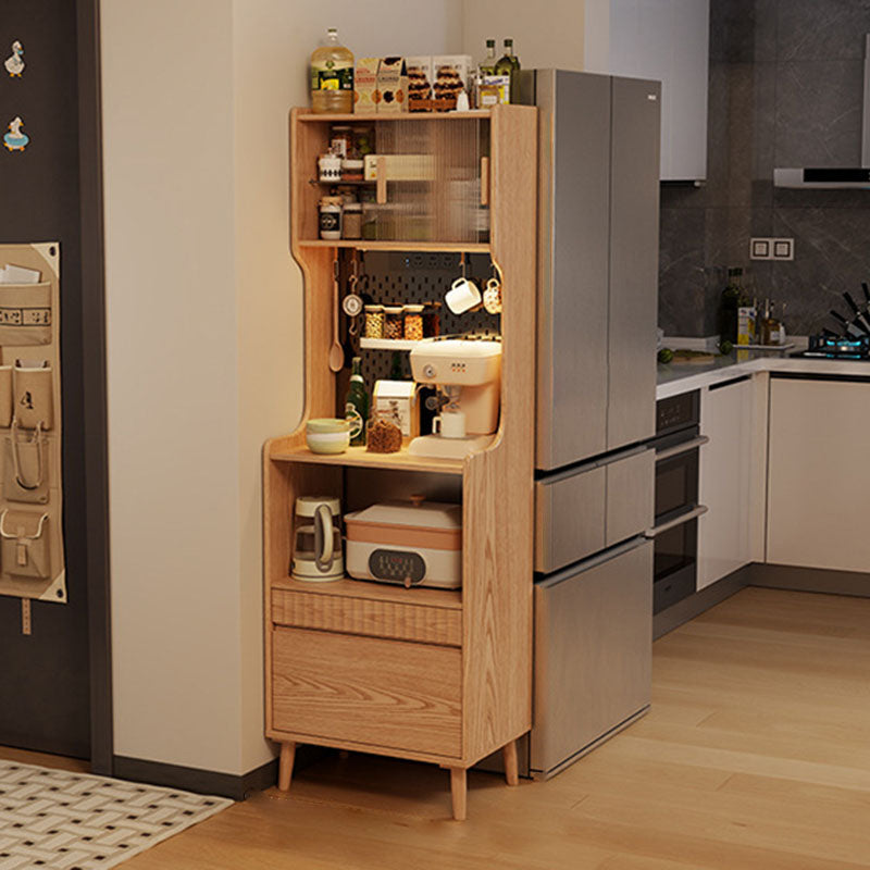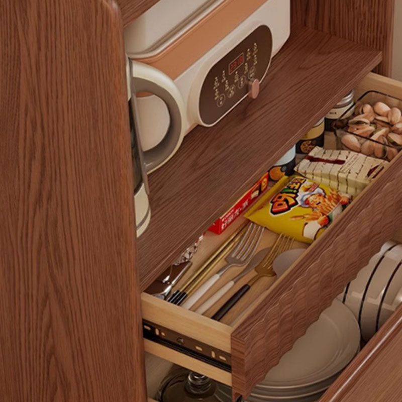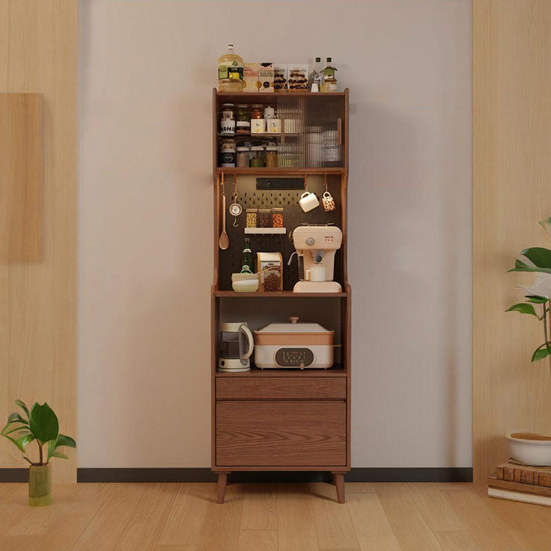 The cabinet provides versatile storage options, incorporating two convenient drawers, a large enclosed storage compartment, and four tiers of open shelving for display or quick access. It is built to deliver strong load-bearing performance and includes smooth rounded corners for safety and a polished look.