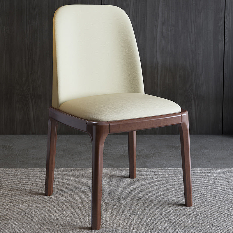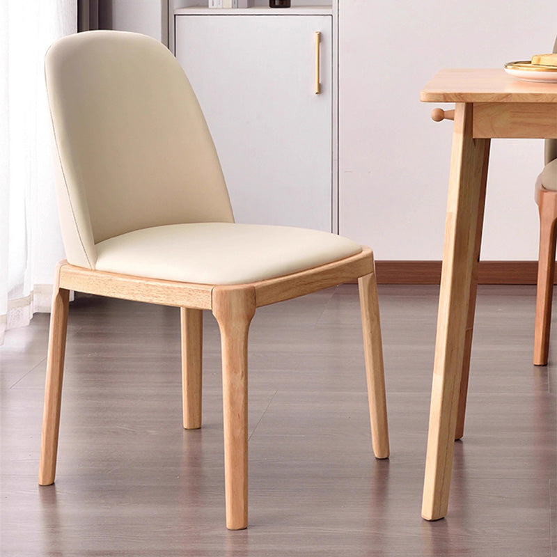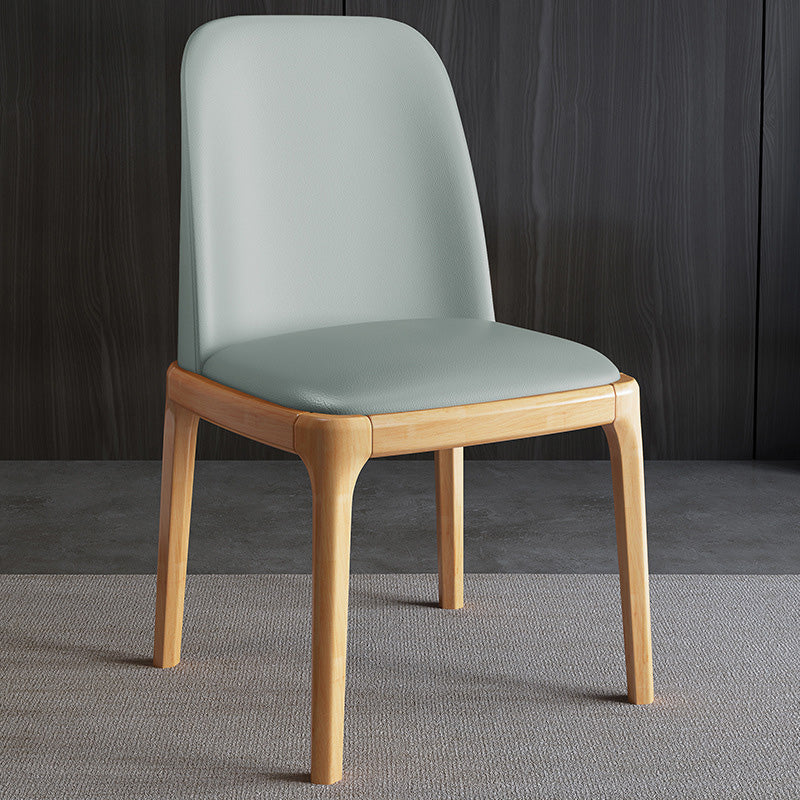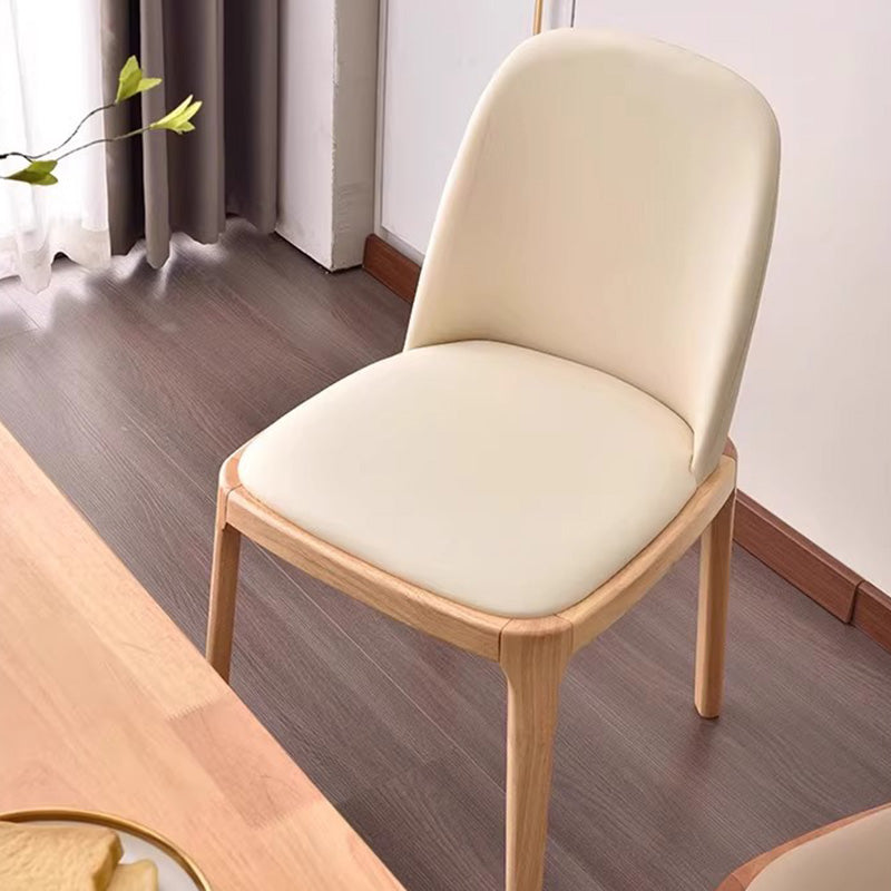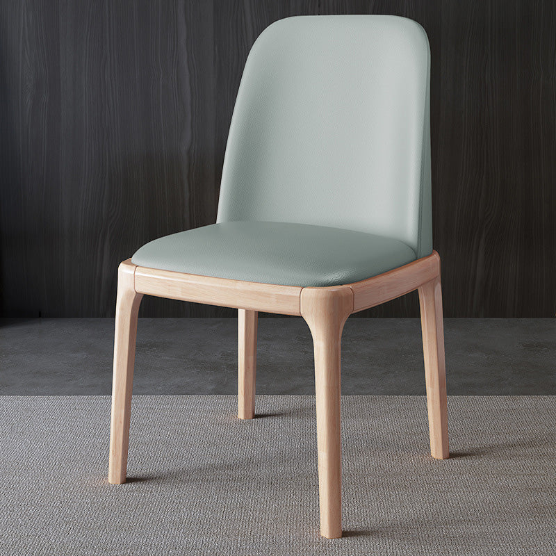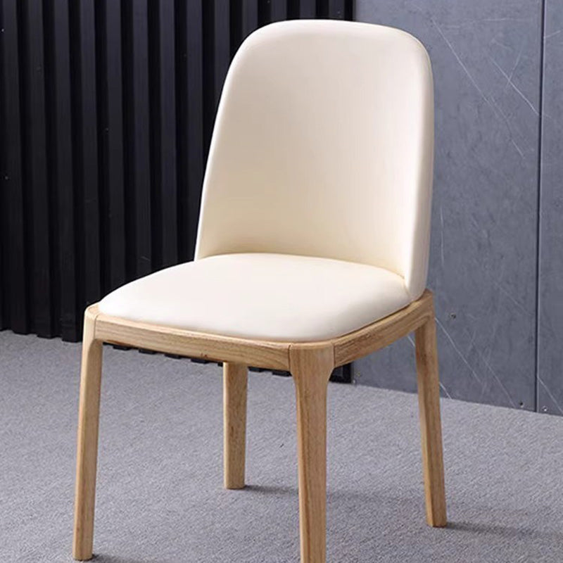 Contemporary Nordic Rectangular Silicone Leather Solid Wood Dining Chair Backrest Armless For Dining Room & Kitchen