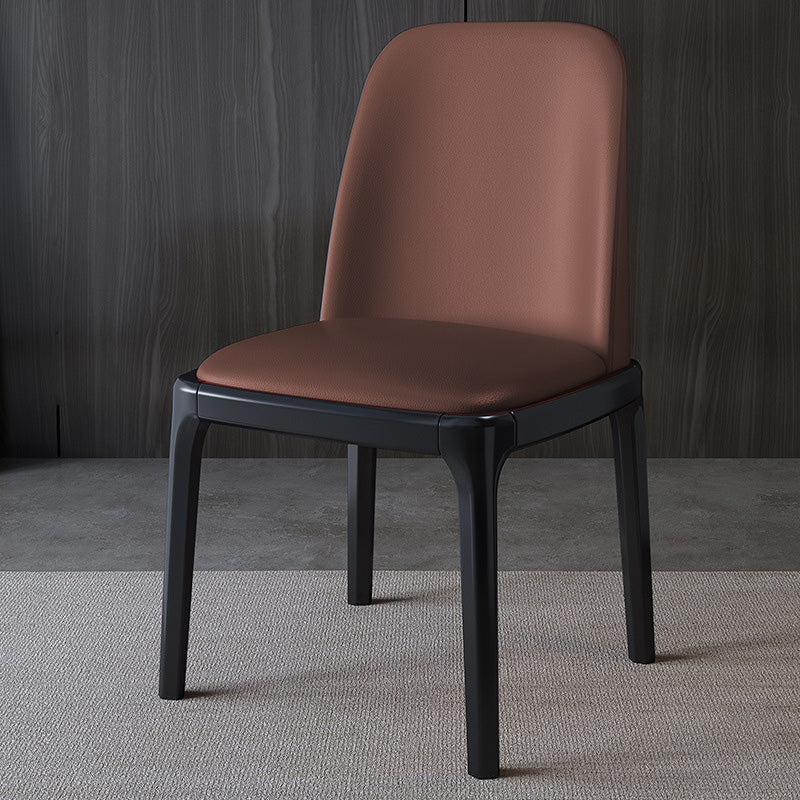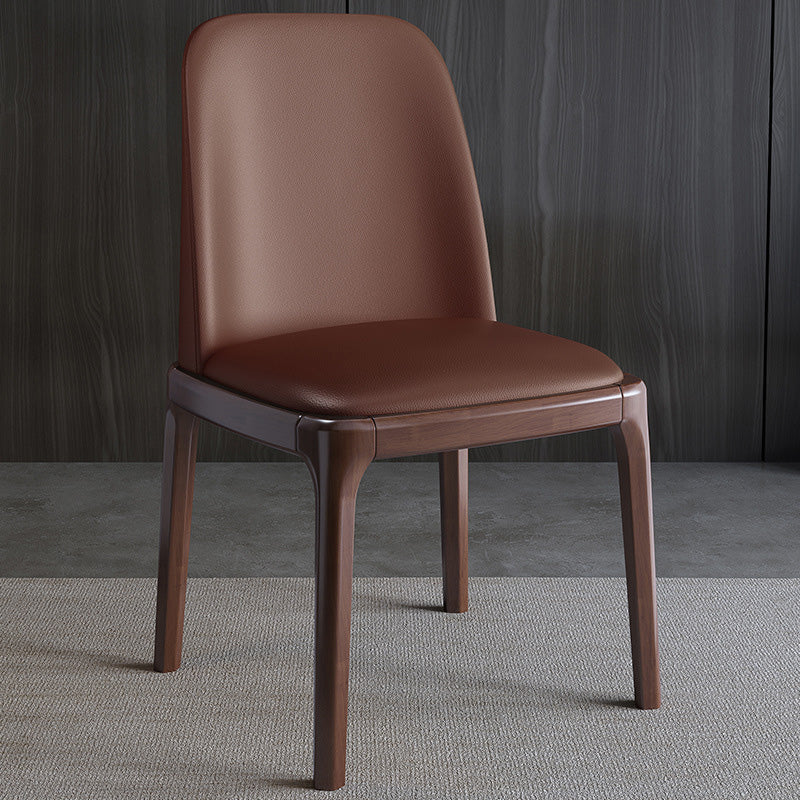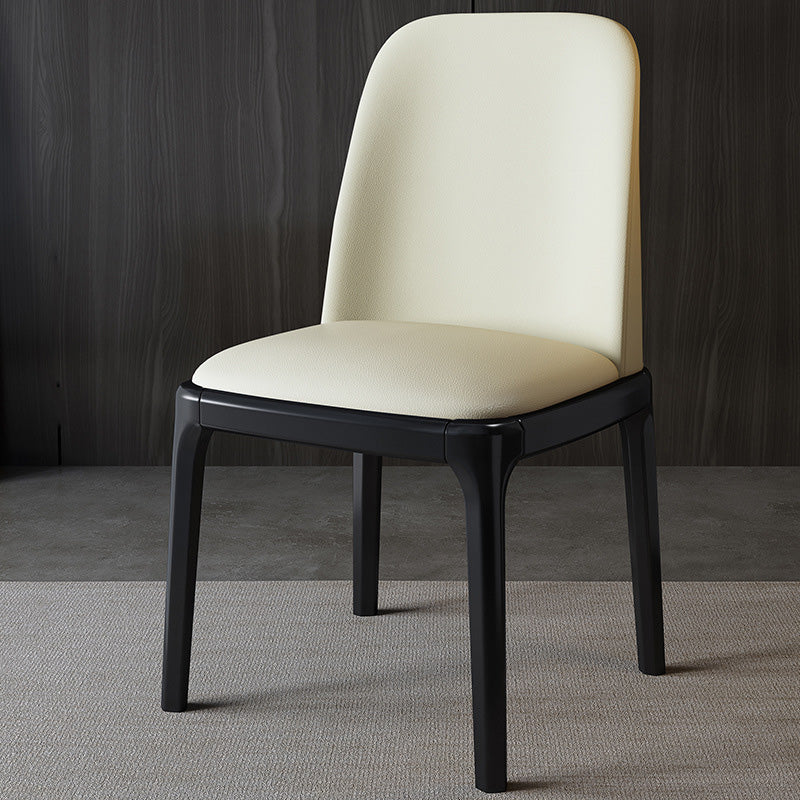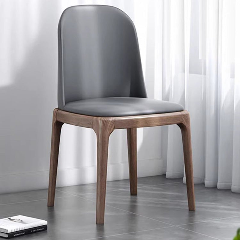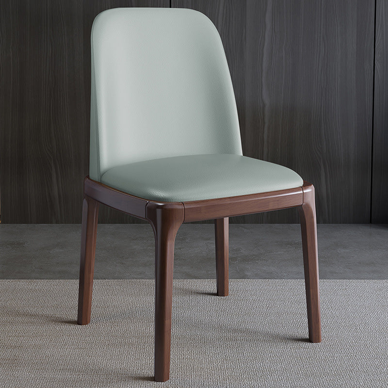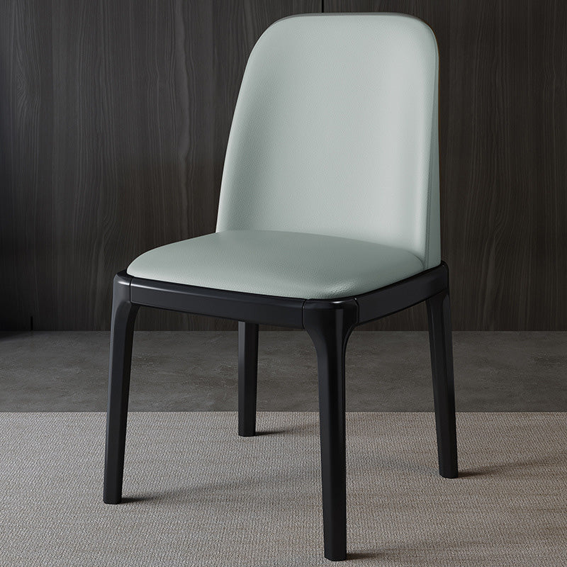 Contemporary Nordic Rectangular Silicone Leather Solid Wood Dining Chair Backrest Armless For Dining Room & Kitchen