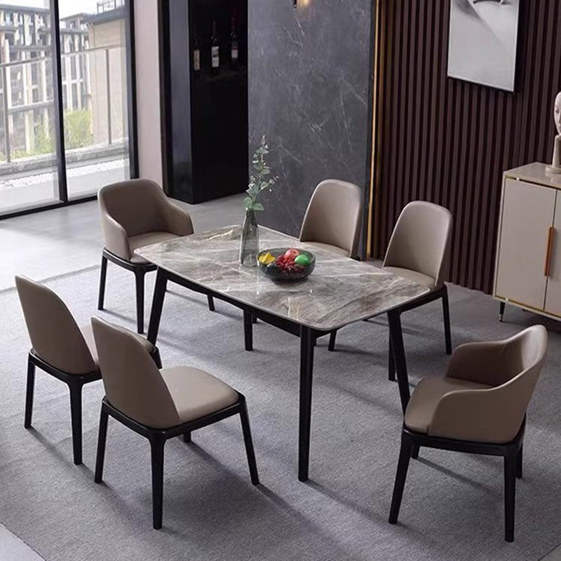 This contemporary Nordic dining chair is defined by its clean, rectangular silhouette. It is expertly crafted for durable support, combining a solid wood frame, soft silicone leather upholstery, and cushioning high-density foam.