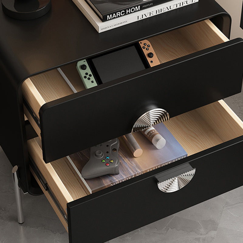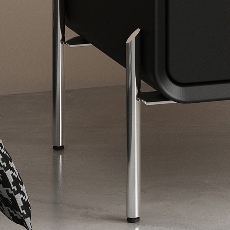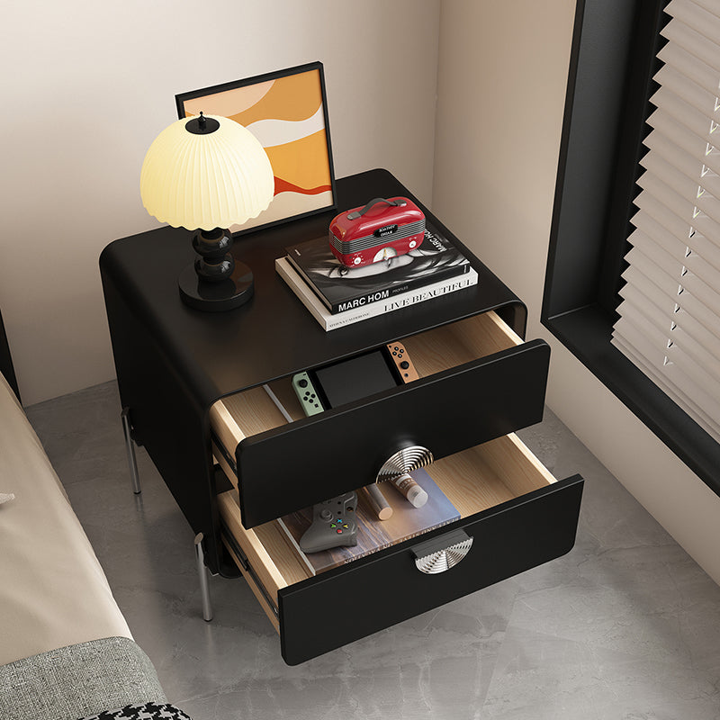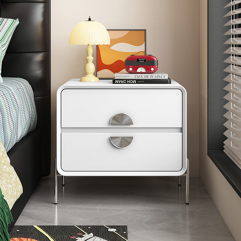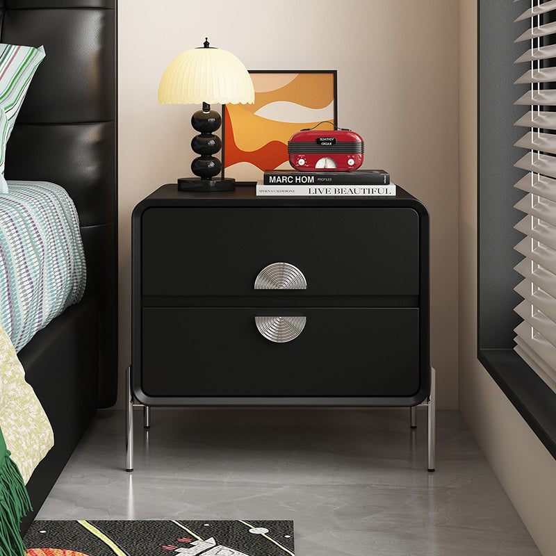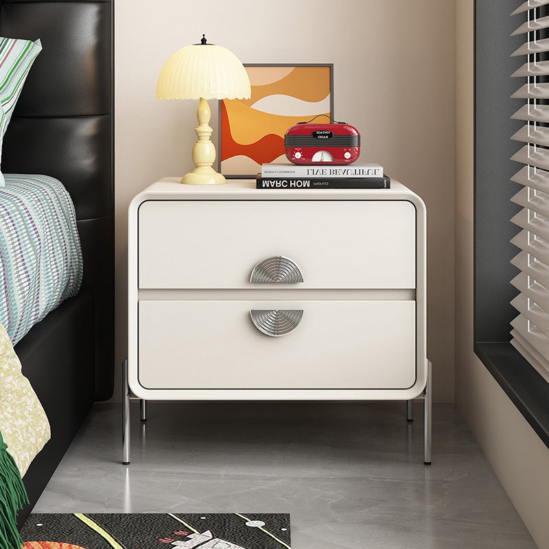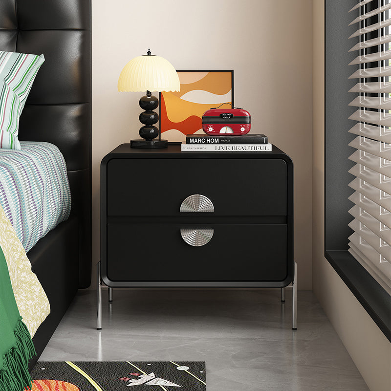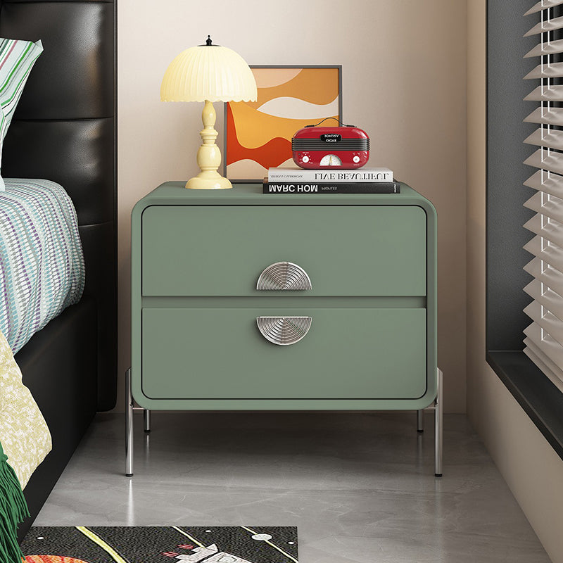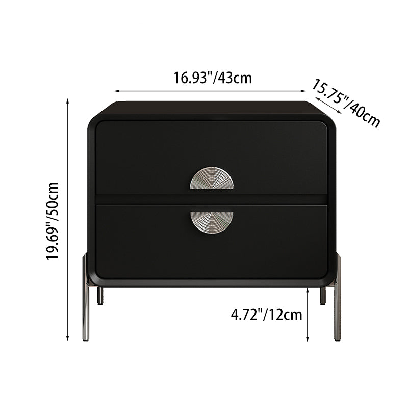 This contemporary Nordic nightstand features a solid multilayer wood frame, pine drawers, and a scratch-resistant faux leather finish, supported by rust-resistant stainless steel legs. With 2 smooth drawers and multiple color options including black, off-white, khaki, butter yellow, pure white, and avocado green, it offers durable, stylish bedside storage for the bedroom or living room.