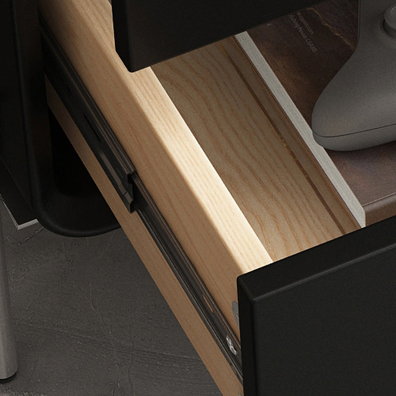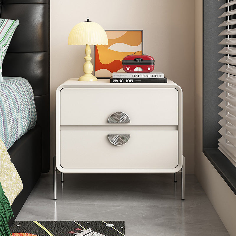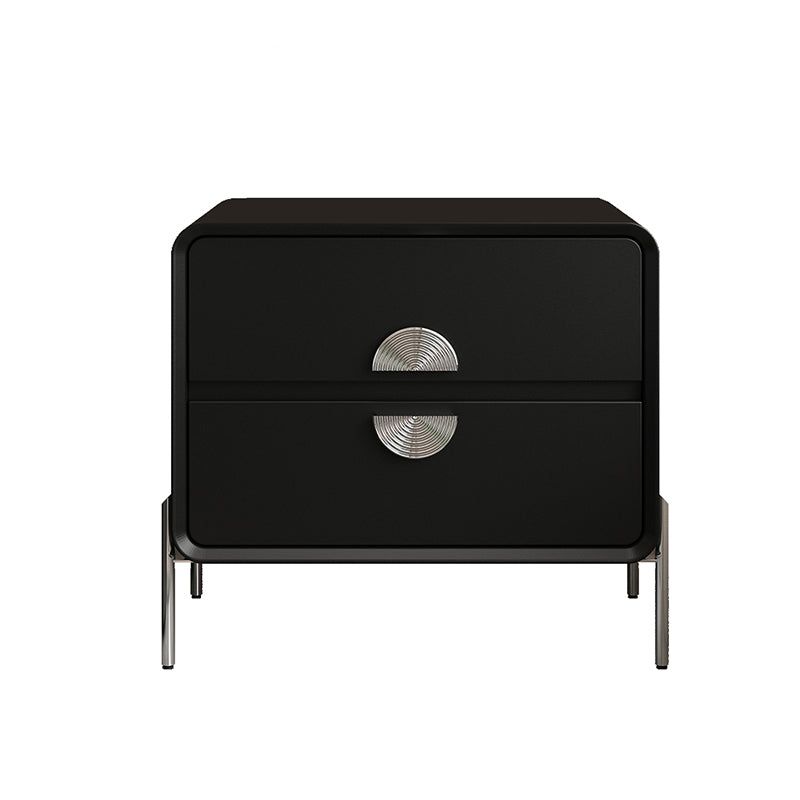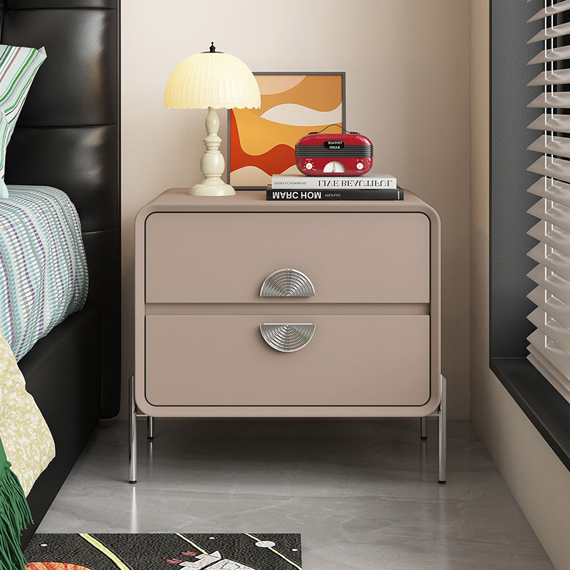 Contemporary Nordic Solid Wood Multi-Layer Board Stainless Steel Cat Scratching Leather Rectangular Nightstand 2-Drawer For Bedroom