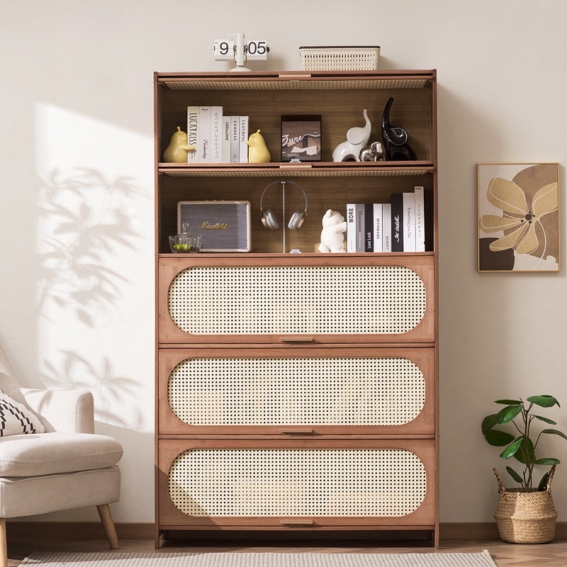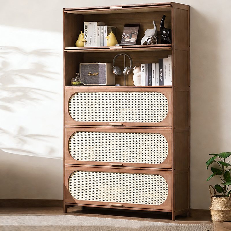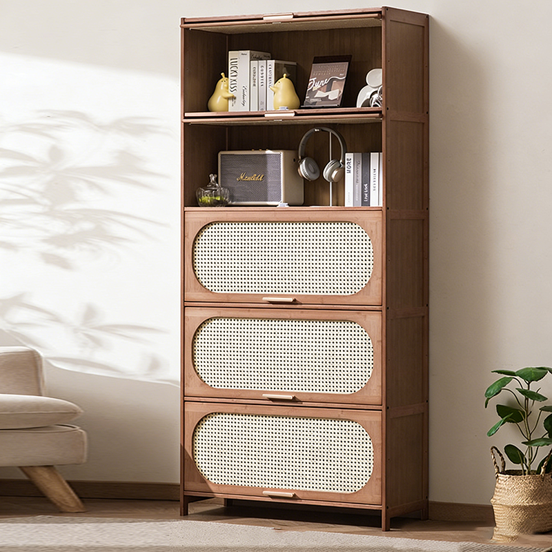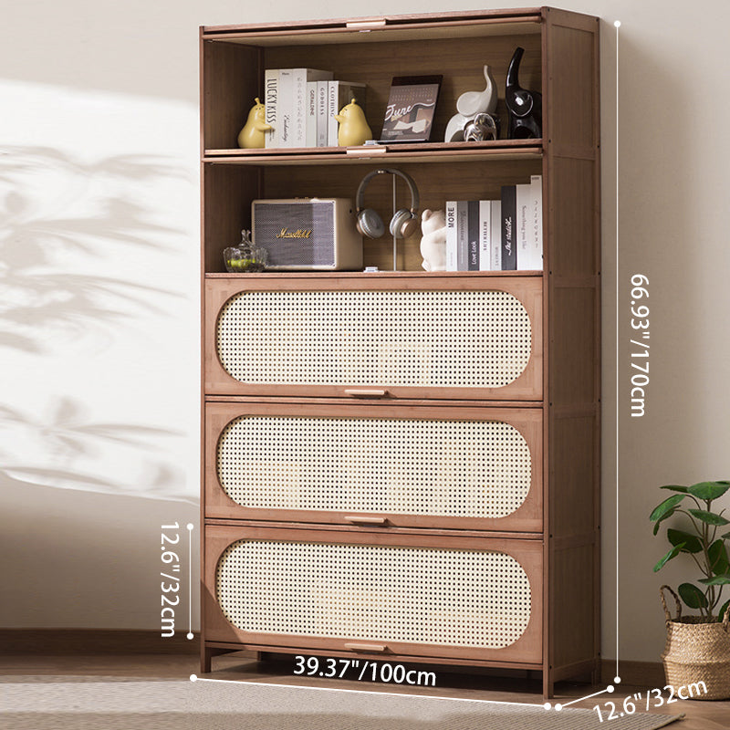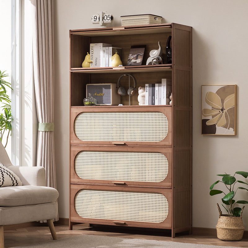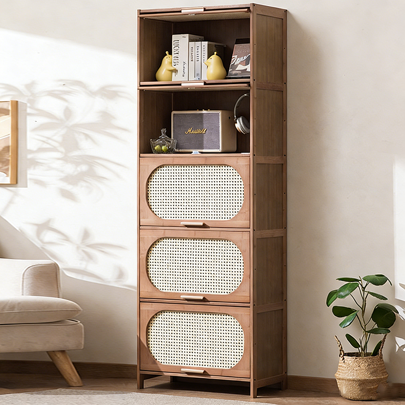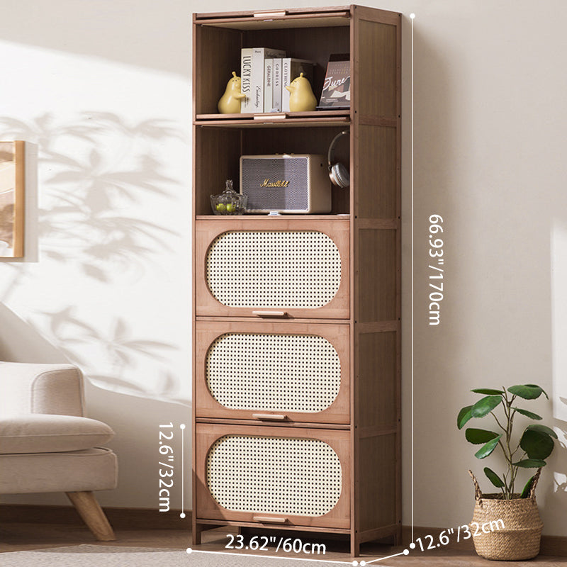 Contemporary Retro Rectangular Nan Bamboo Plastic Rattan Weaving Storage Cabinet 3/4/5-Tier For Living Room