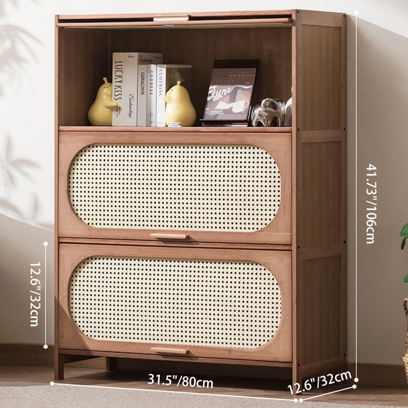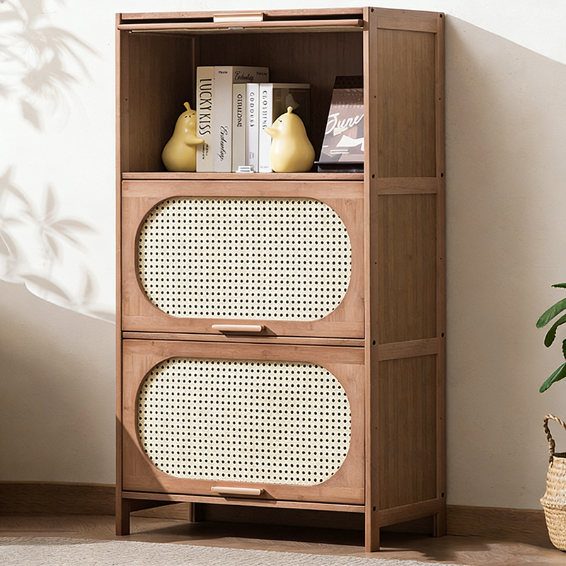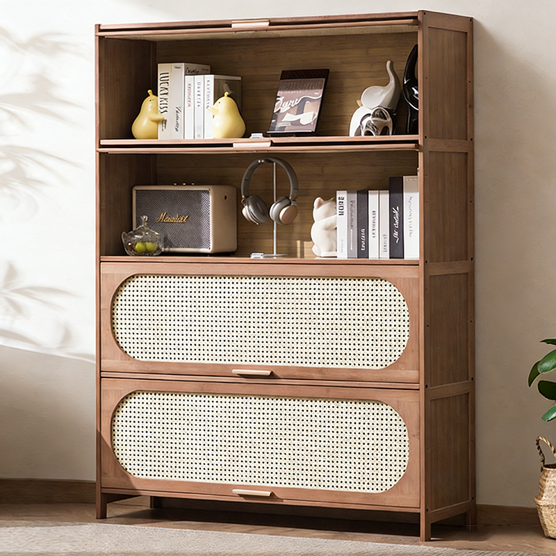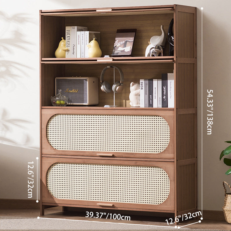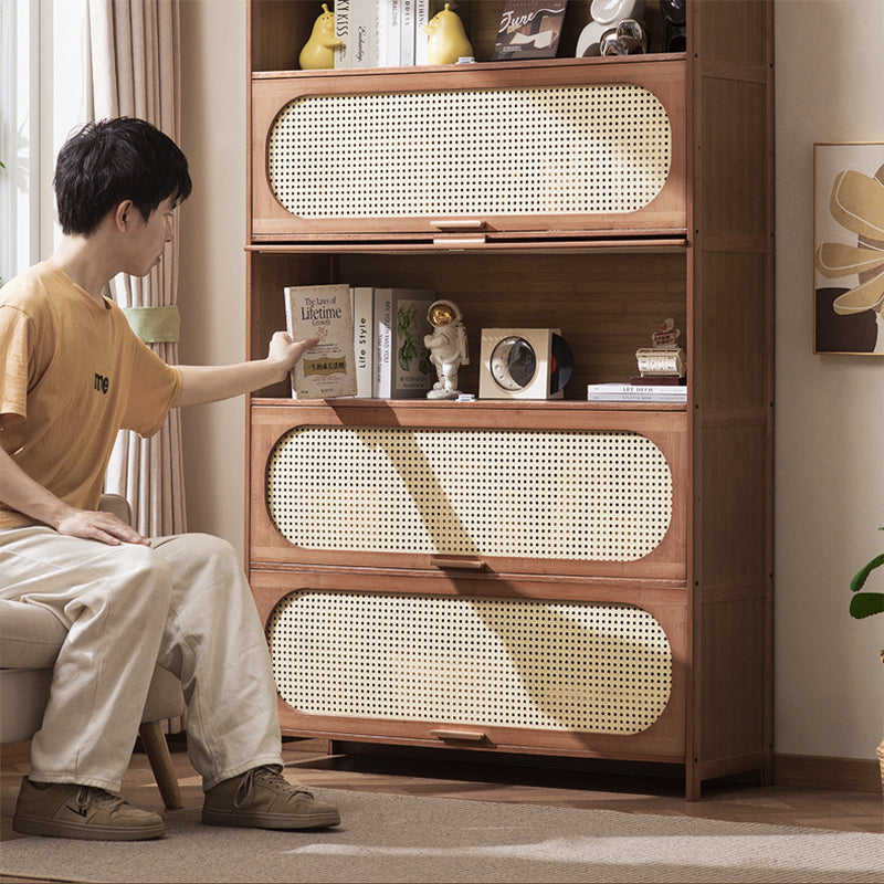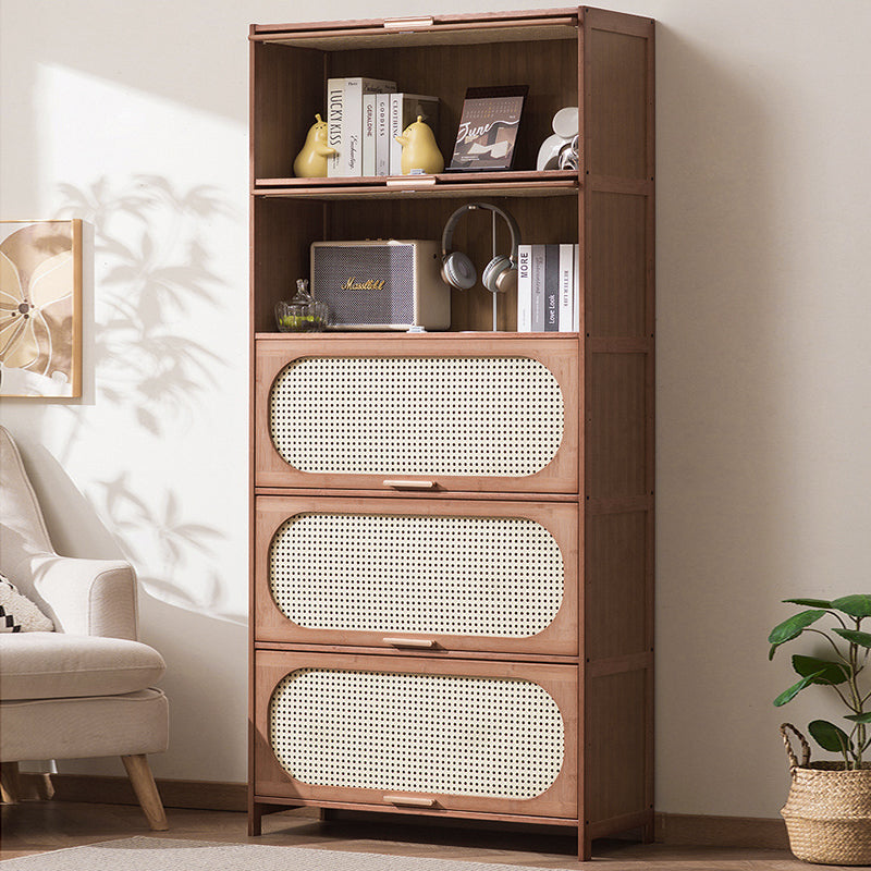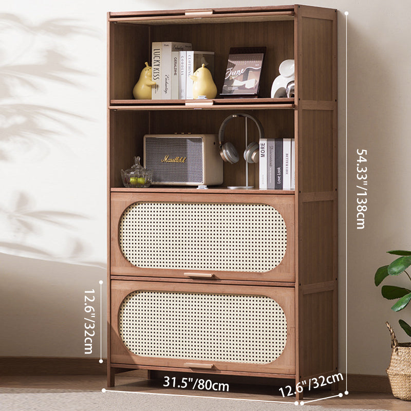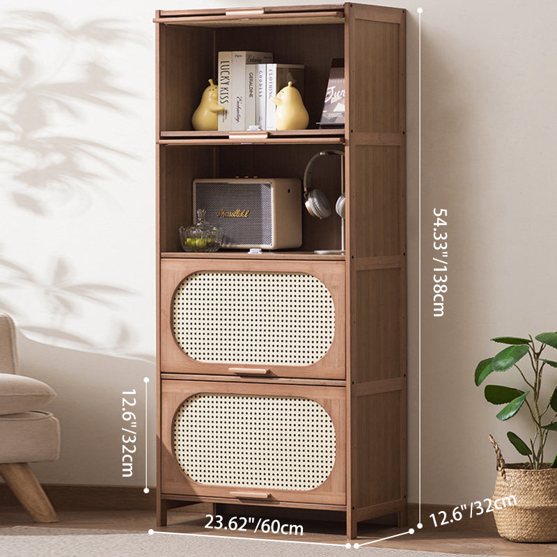 Contemporary Retro Rectangular Nan Bamboo Plastic Rattan Weaving Storage Cabinet 3/4/5-Tier For Living Room