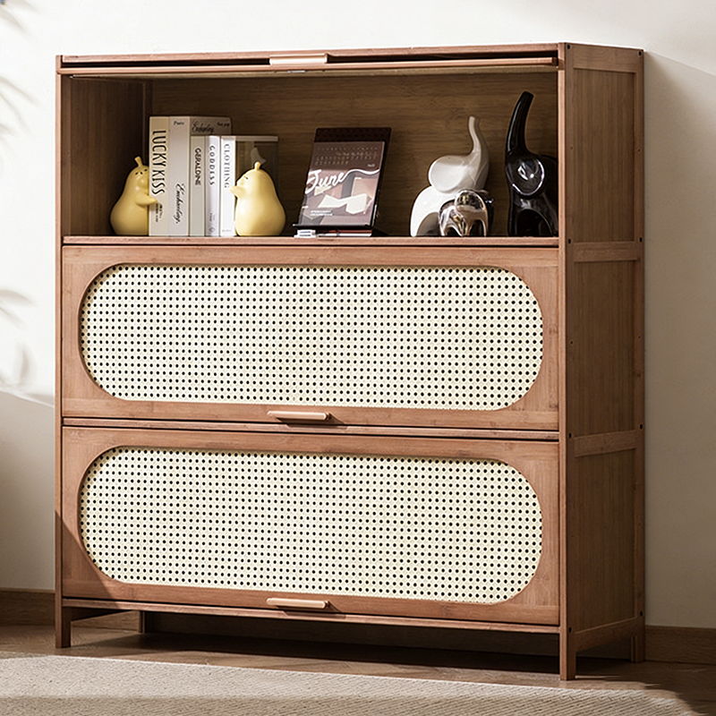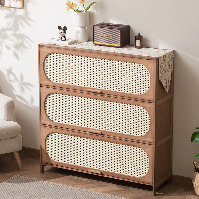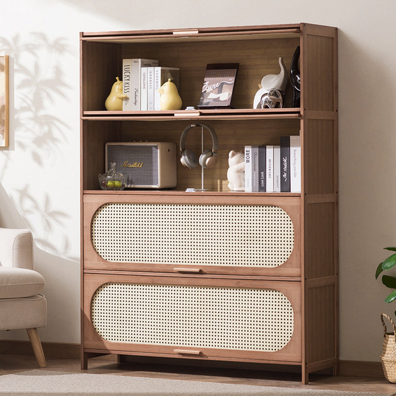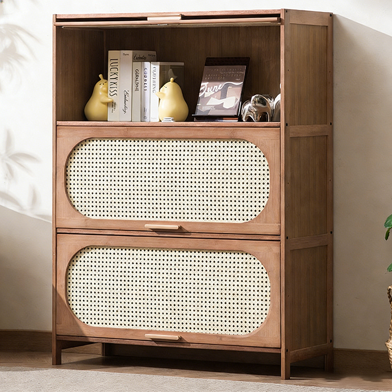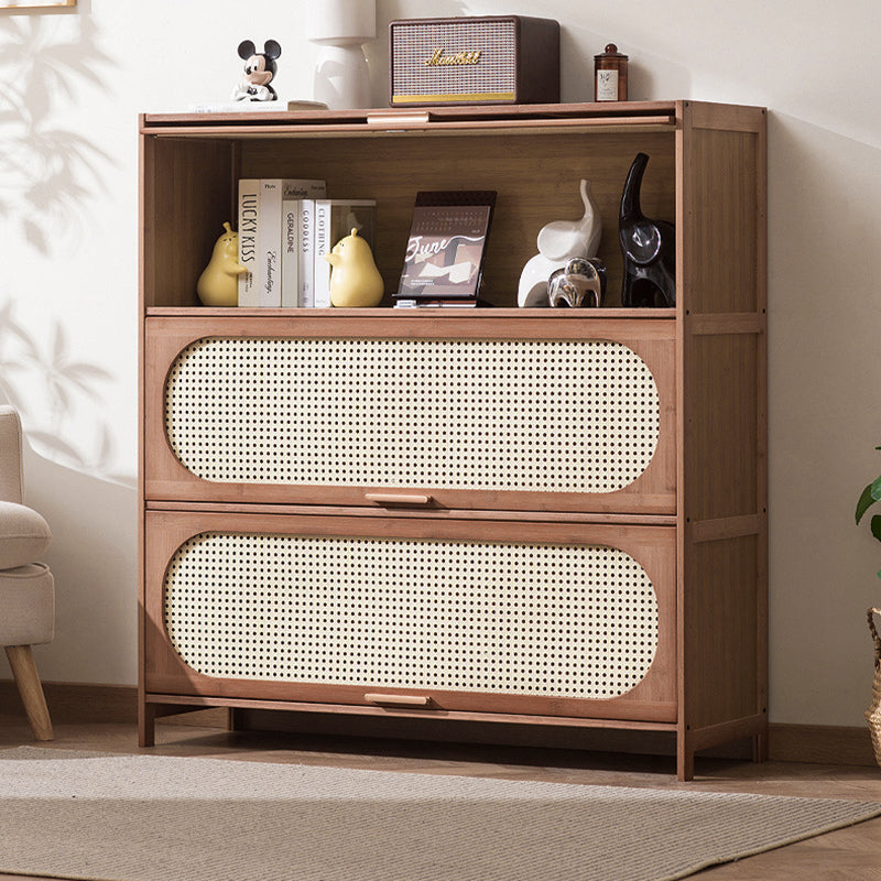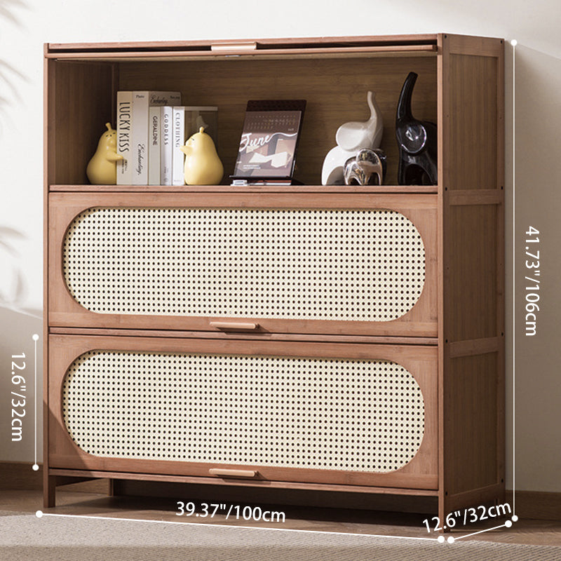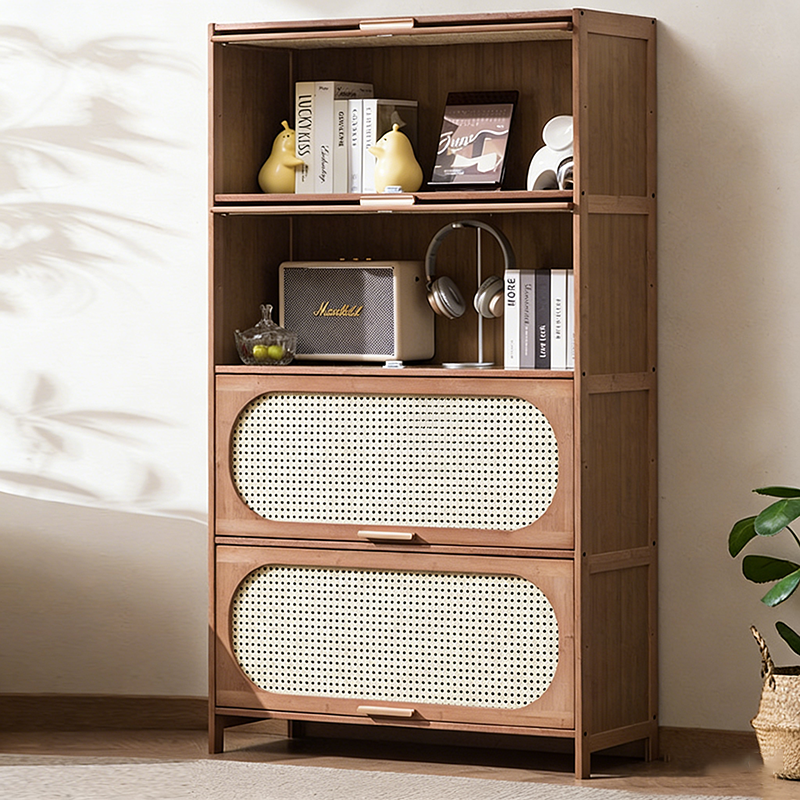 Contemporary Retro Rectangular Nan Bamboo Plastic Rattan Weaving Storage Cabinet 3/4/5-Tier For Living Room