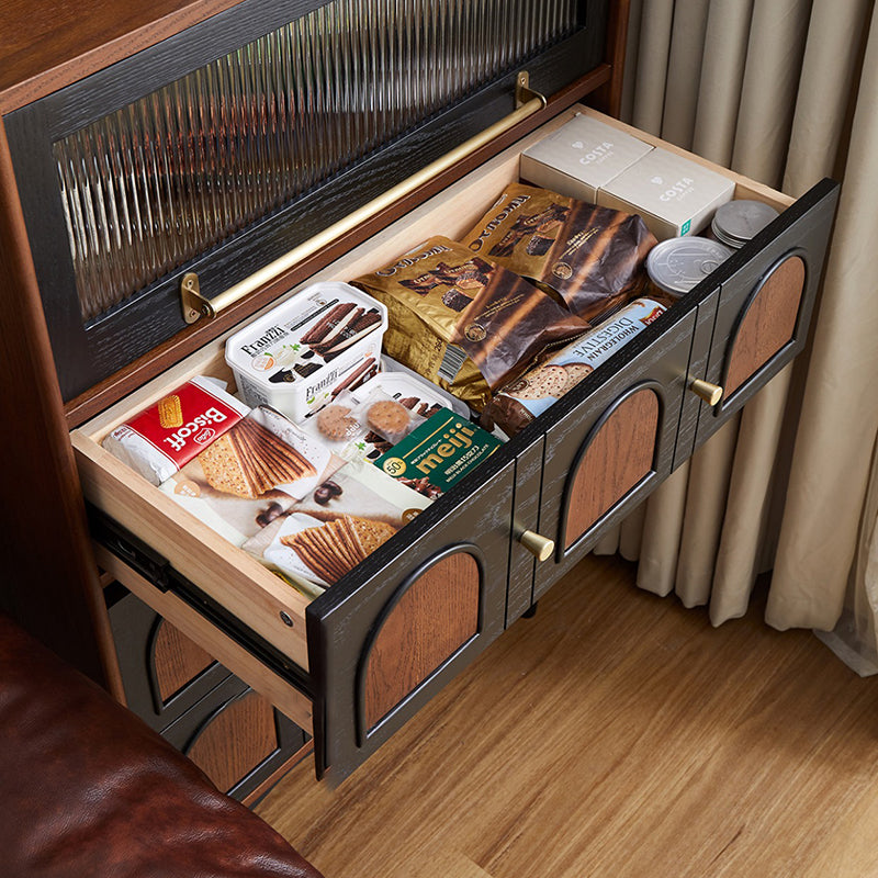 Contemporary Retro Rectangular Rubberwood Solid Wood Multi-Layer Board Storage Cabinet 3-Drawer For Living Room