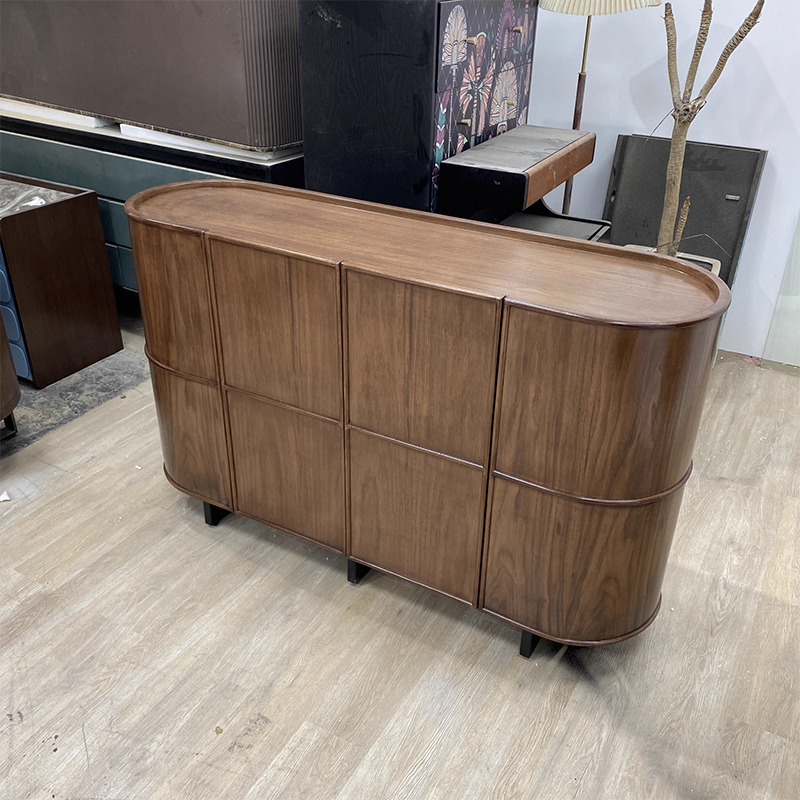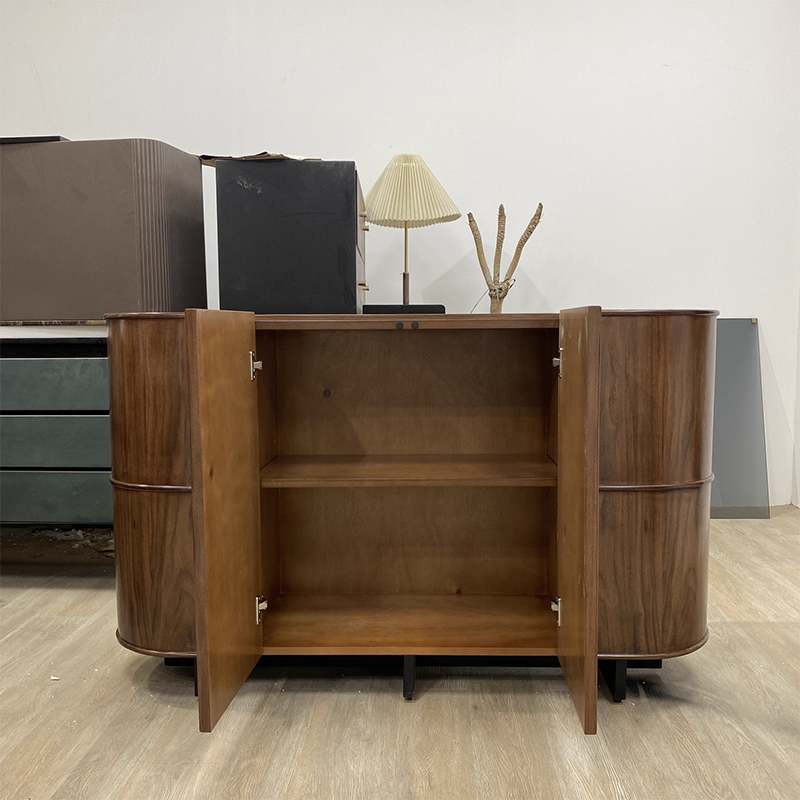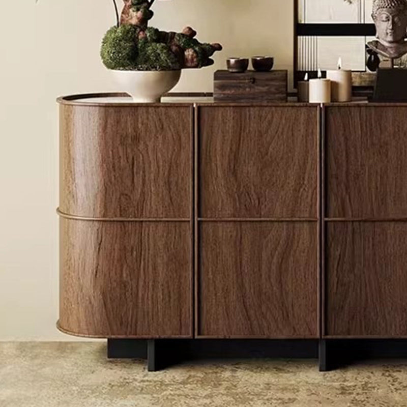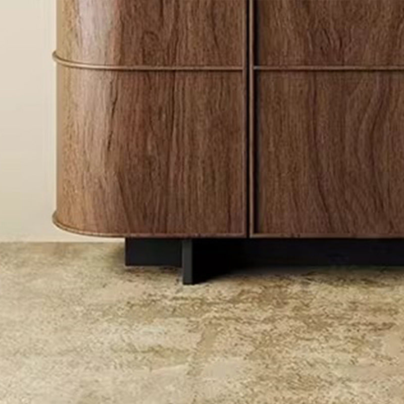 This vintage-inspired contemporary storage cabinet features a rounded-edge silhouette crafted from solid wood and multi-layer plywood, finished in an elegant brown tone. Designed with a three-tier layout and one enclosed cabinet, it offers generous storage space for entryways and living rooms while adding a refined decorative touch.