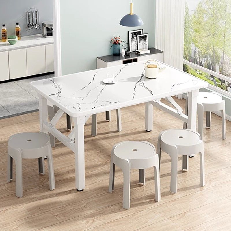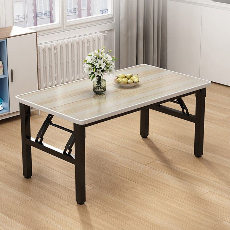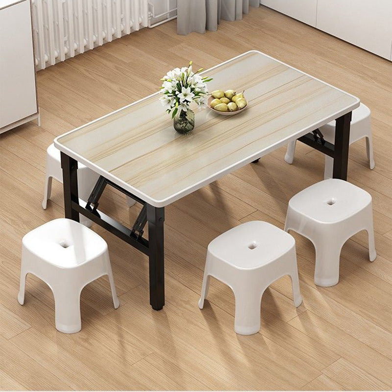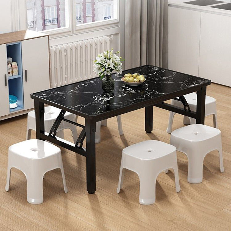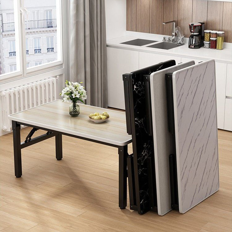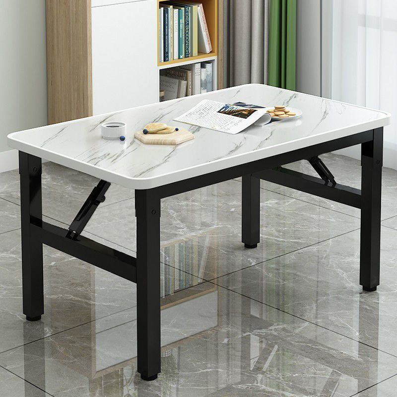 This Contemporary Scandinavian side table features a rectangular MDF tabletop supported by a sturdy iron H-shaped steel frame, delivering stable support and reliable durability for everyday use. Designed with a 1-tier folding structure, it is available in apple wood, white stone, black, and white wood grain finishes, making it a space-saving and versatile solution ideal for living rooms, apartments, rental homes, and flexible dining or work setups.