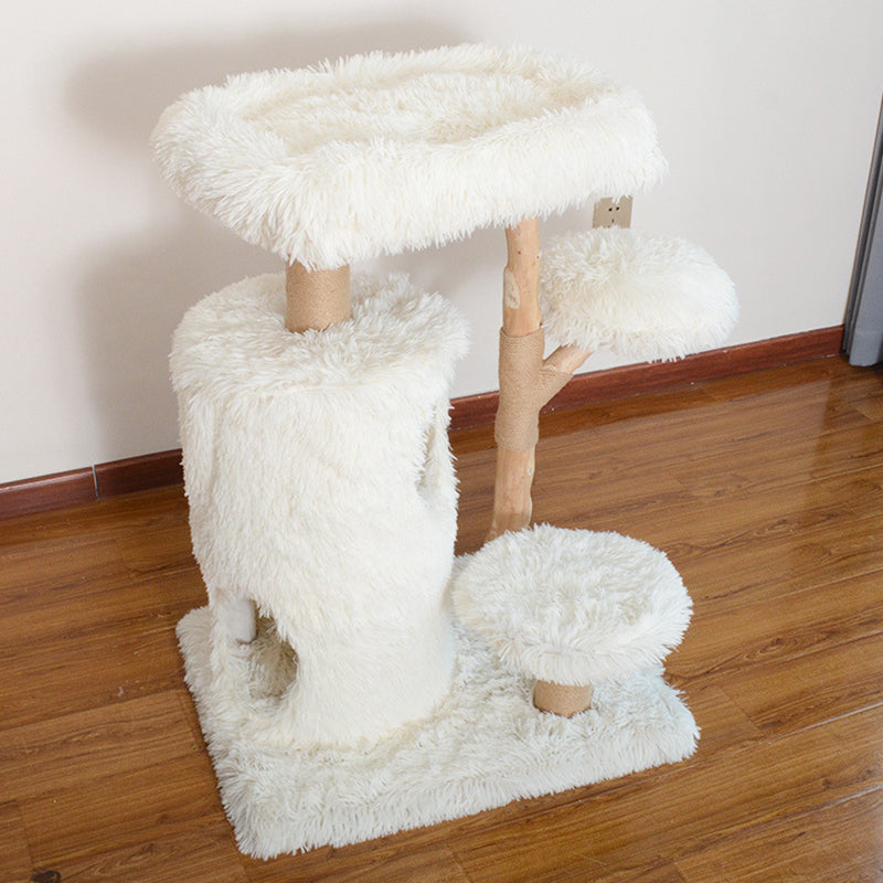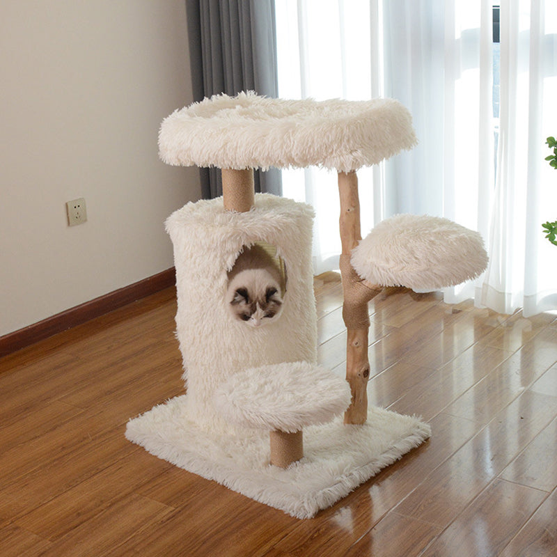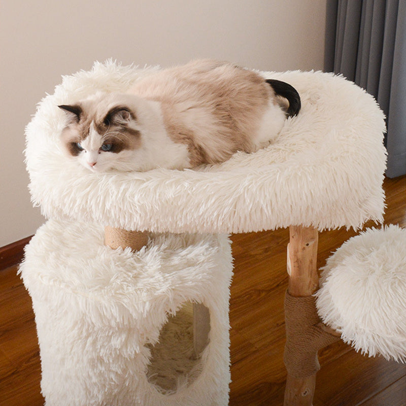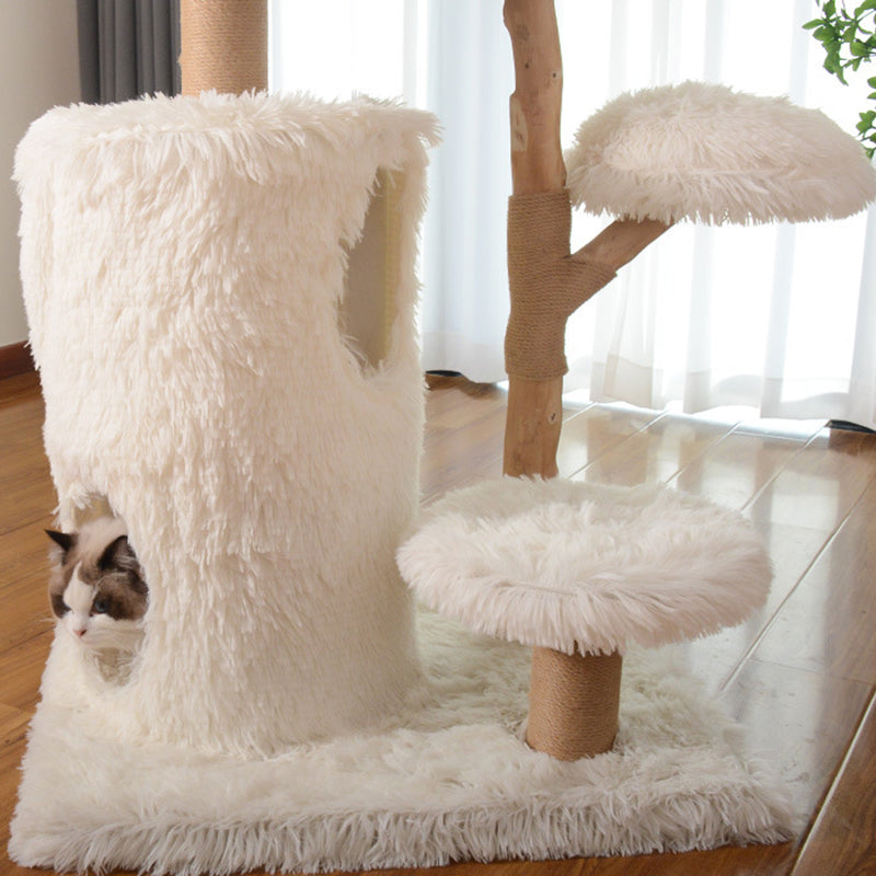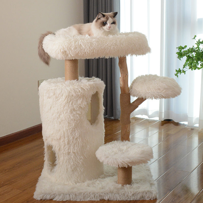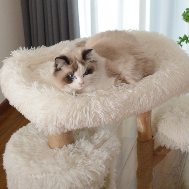 Designed specifically for multi-cat households, this three-story sanctuary offers a variety of "elevated observation decks" and plush resting areas to satisfy every feline personality. The structural pillars are wrapped in heavy-duty jute sisal, providing a premium, durable surface for vigorous scratching while protecting your home’s upholstery. Whether your cats are in the mood for high-speed climbing, group play, or a quiet midday nap, this multifunctional solid wood tower provides a stable, wobble-free foundation for year-round engagement.