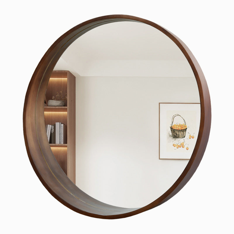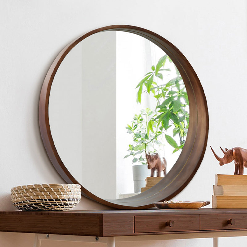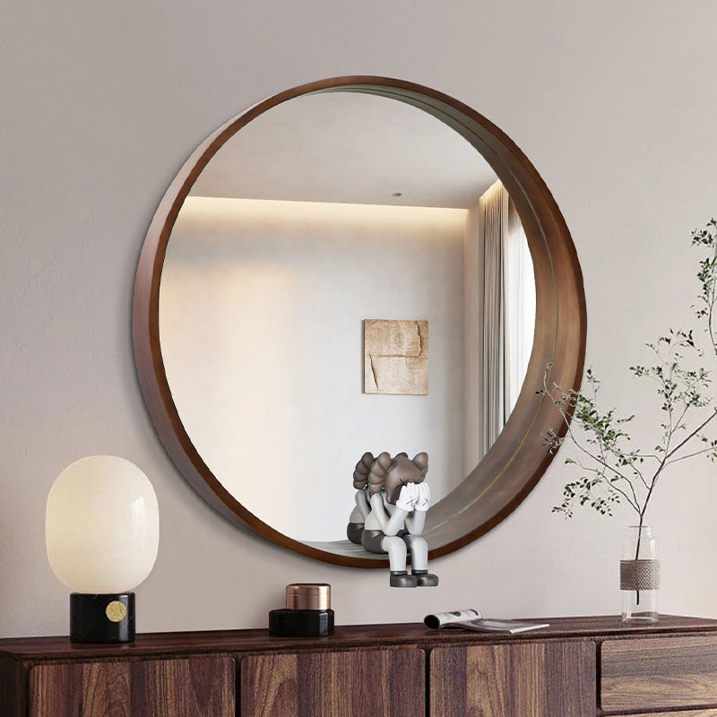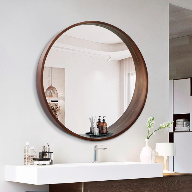 This mirror’s design is maximized for convenience with a clever built-in storage shelf, perfect for holding small daily essentials like keys, cosmetics, or décor, reducing clutter in busy areas. Finished in a warm walnut tone, it effortlessly blends natural charm and practical function, making it an ideal, stylish accent for bedrooms, entryways, and living rooms. Optimized for North American consumers searching for Nordic round mirrors with shelves, solid pine wood wall mirrors, walnut-tone storage mirrors, and explosion-proof entryway mirrors for modern interiors.