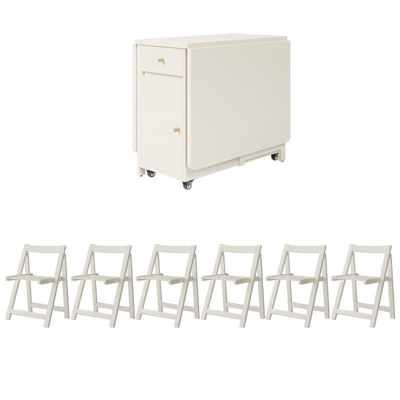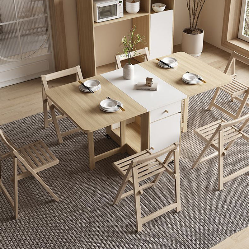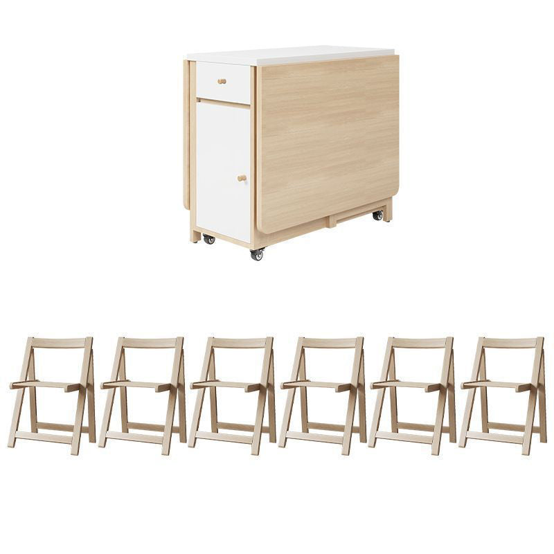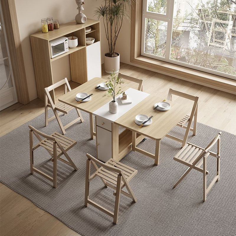 Maximize the functionality of your space without sacrificing style with this brilliant contemporary Nordic dining table and chair set. The table features a sturdy construction, combining premium solid rubberwood for the base and durable MDF for the tabletop. Its centerpiece is the smooth, highly efficient foldable structure, allowing the rectangular design to collapse easily for quick, space-saving storage when not in use.