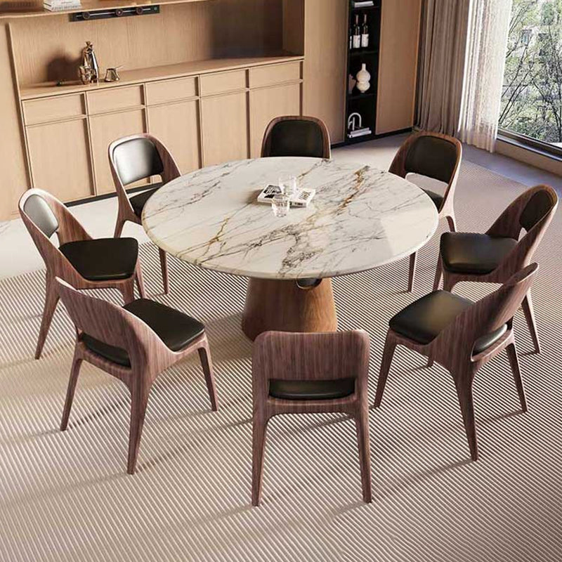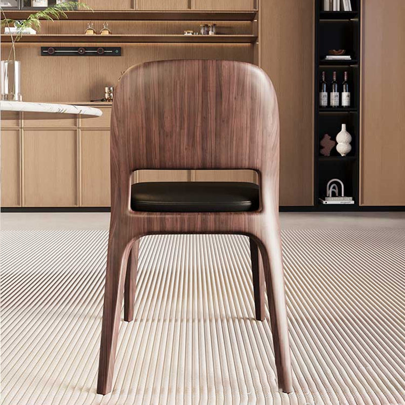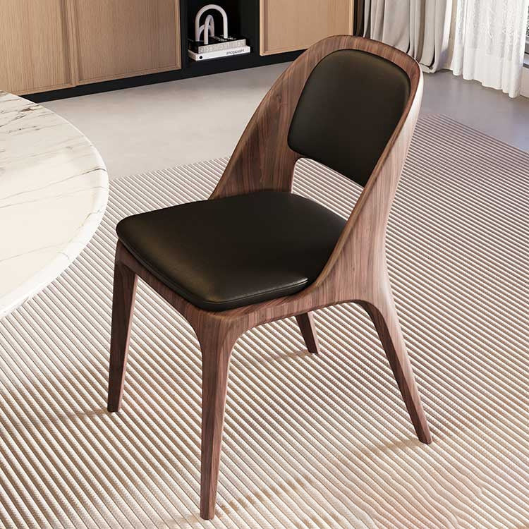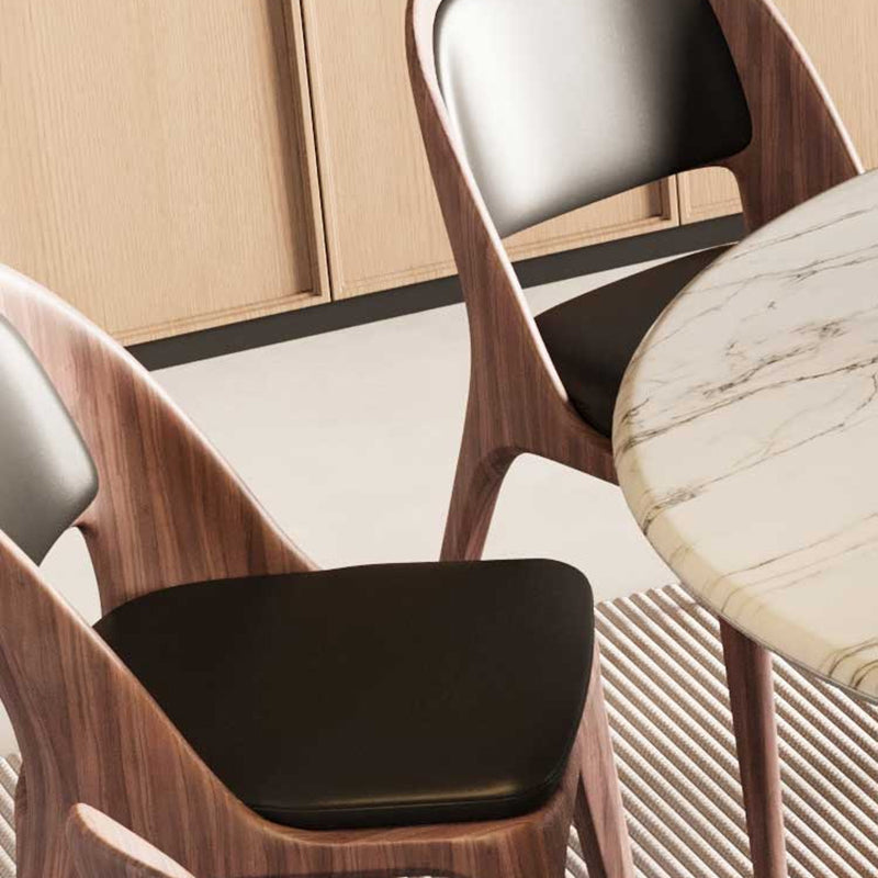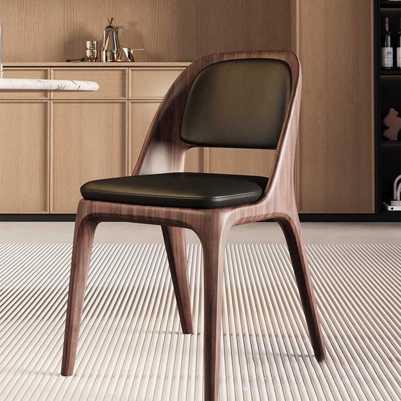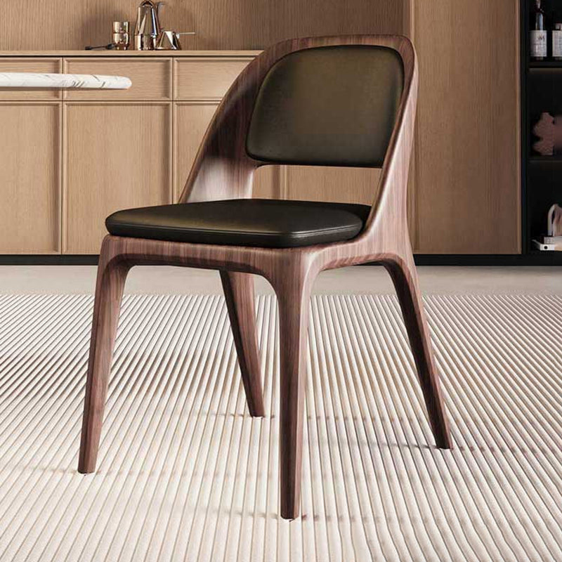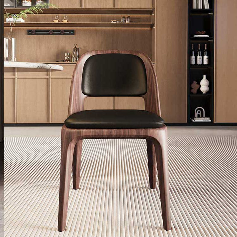 Marrying traditional craftsmanship with Nordic sensibilities, this contemporary dining chair is a study in refined elegance. The solid ash wood frame is elevated by intricate carved details, providing a sturdy foundation for the premium microfiber leather upholstery and high-resilience foam interior. Whether finished in rich walnut brown or striking black, its ergonomic silhouette and protective anti-bump edges make it a sophisticated addition to minimalist or French-inspired dining spaces.