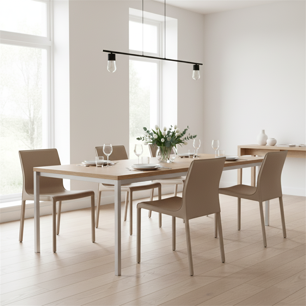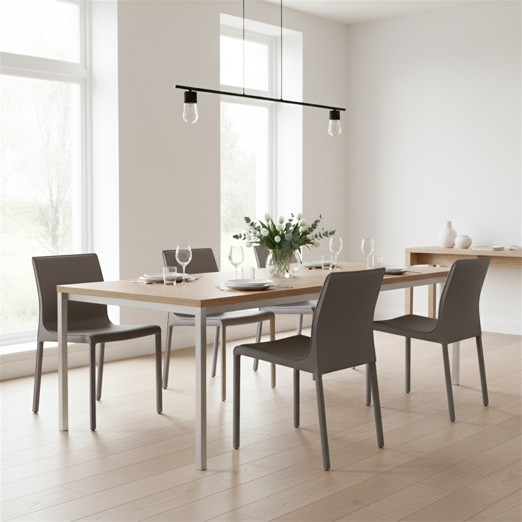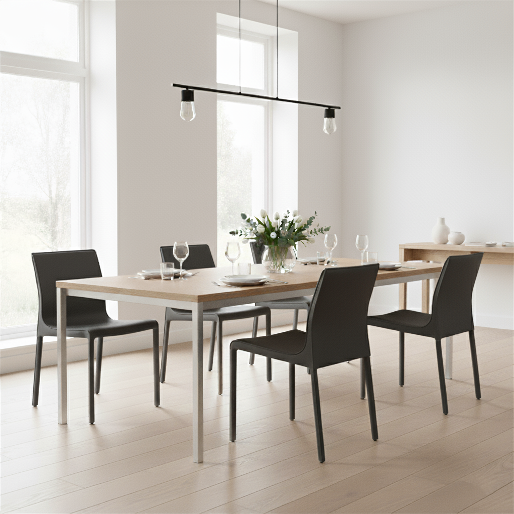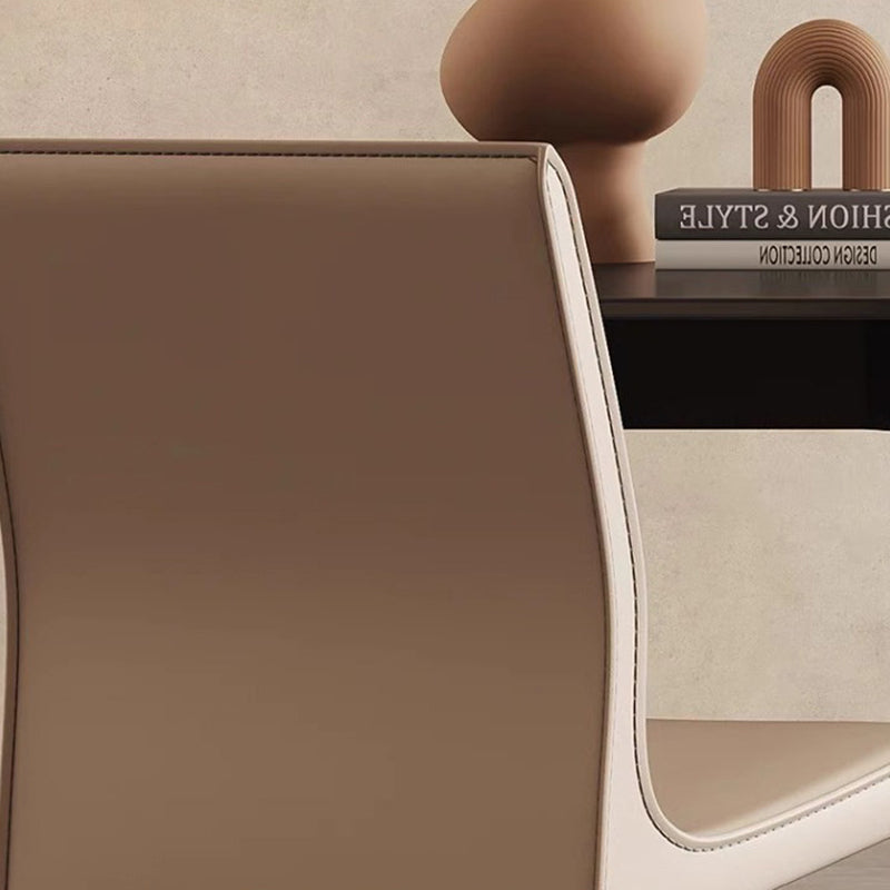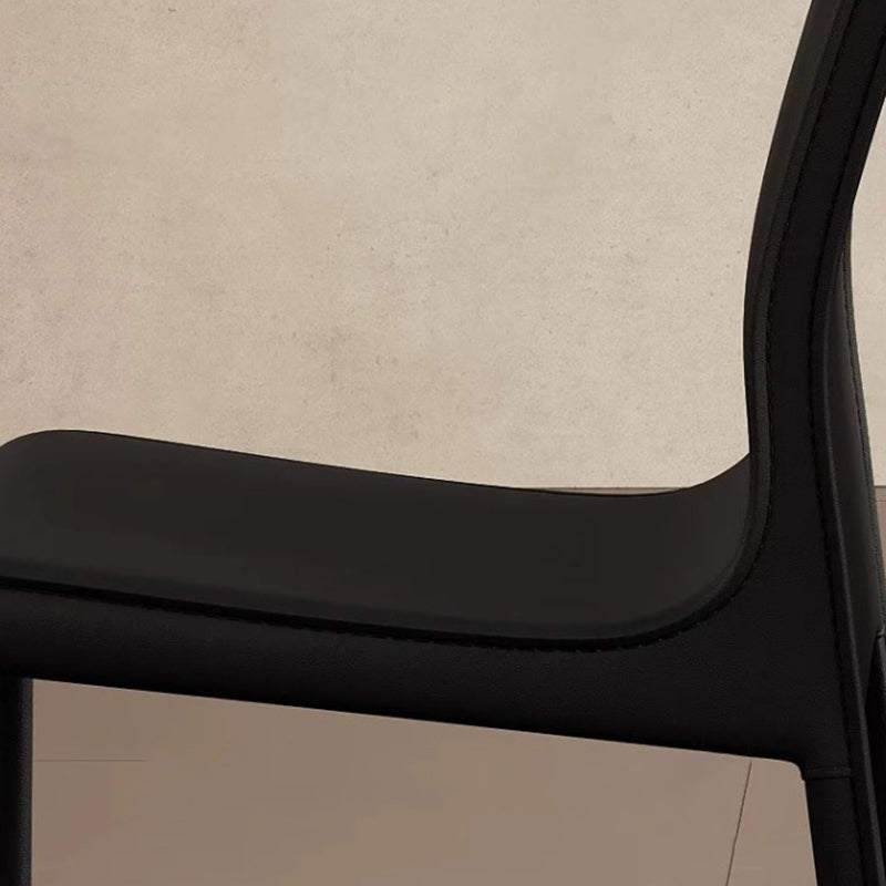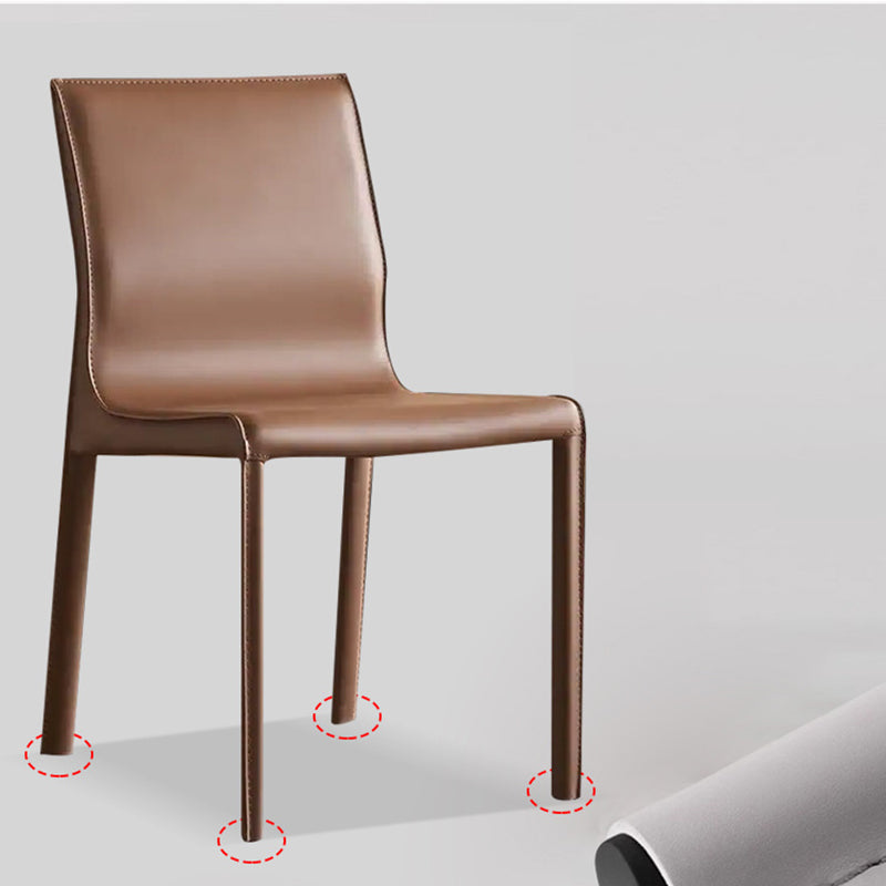 This contemporary Scandinavian dining chair features a carbon-steel support frame, saddle-leather upholstery, and a high-resilience foam seat cushion for enhanced comfort. Available in deep coffee, light khaki, gray, and black, the backrest design provides ergonomic support, making it a stylish and durable addition to any dining room. Perfect for modern dining spaces seeking a premium saddle-leather dining chair with long-lasting structure and elevated aesthetics.