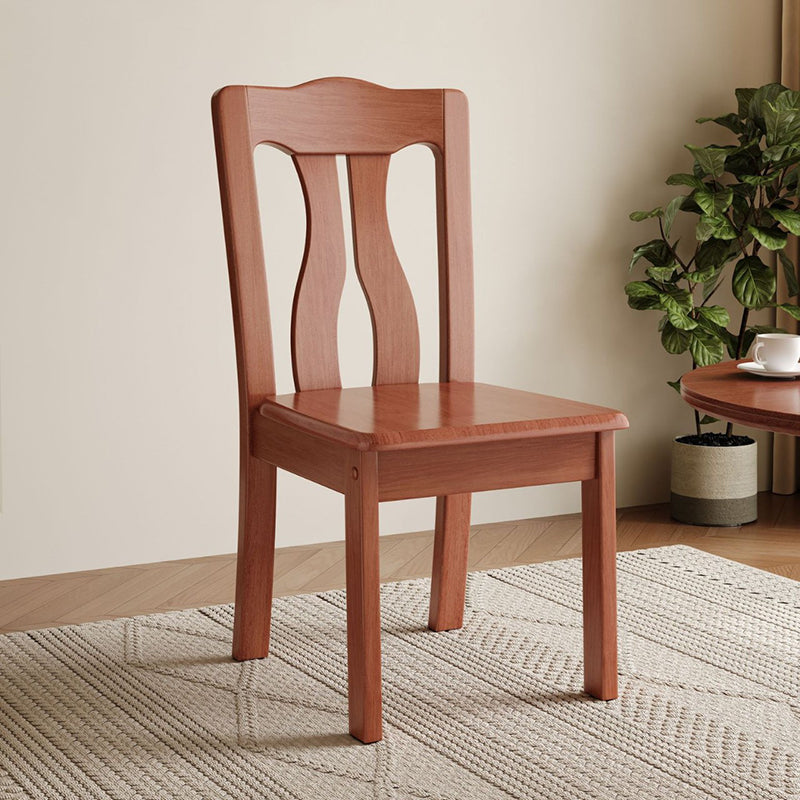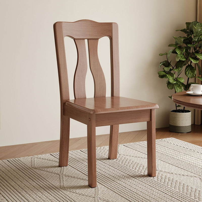 This modern minimalist dining chair offers a perfect blend of comfort and durability, ideal for everyday use in both homes and restaurants. Crafted from thick, high-quality solid wood, it features an ergonomically comfortable backrest and a stable rectangular seat. Available in a rich palette of tones, including walnut, cherry wood, tea brown, and natural wood, this sturdy and stylish seating option effortlessly brings a warm, elegant touch to any dining space, study room, or office corner.