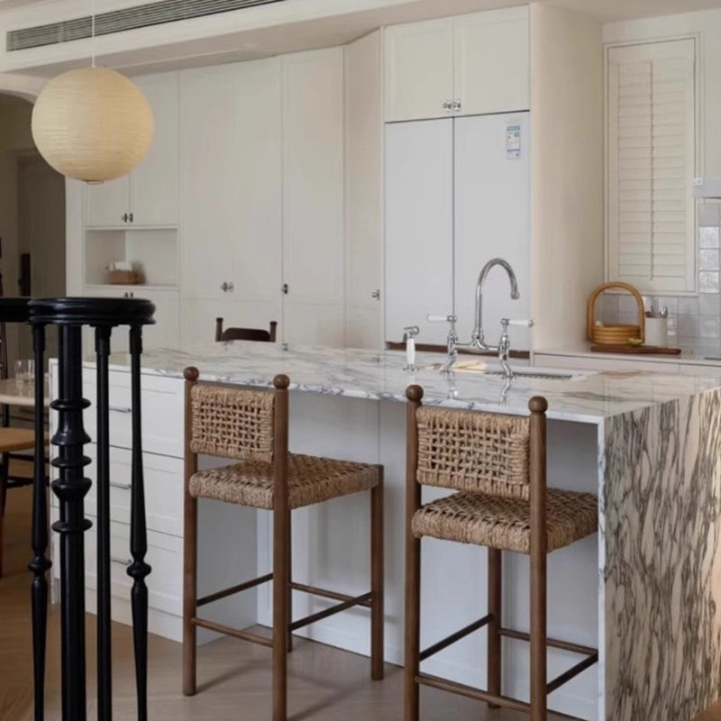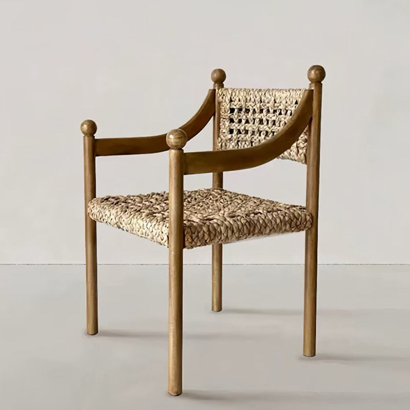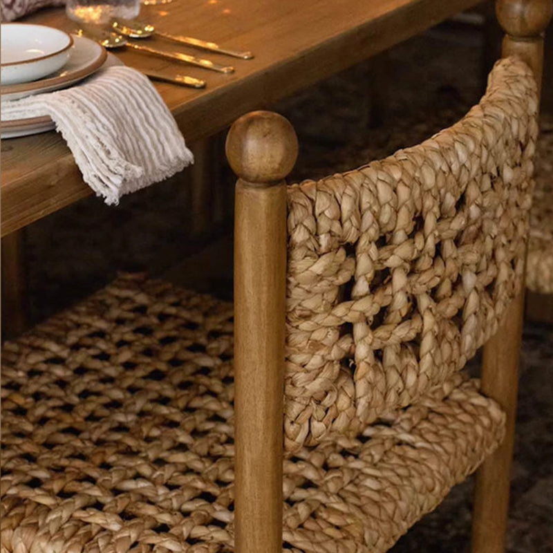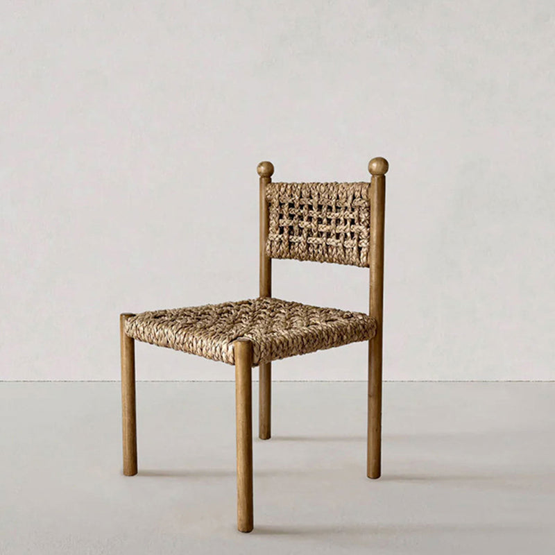Elevate your dining experience with a soulful blend of French rustic elegance and Wabi-Sabi simplicity. This exquisite dining chair is meticulously crafted from solid ash wood, a premium timber celebrated for its striking natural grain and long-lasting durability. The centerpiece of its design is the artisan handwoven rope backrest, which provides a breathable, tactile texture that contours comfortably to the body. This combination of raw materials creates a piece rich in "natural texture and artisan character," perfect for those seeking an organic modern aesthetic.