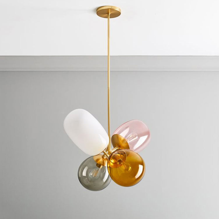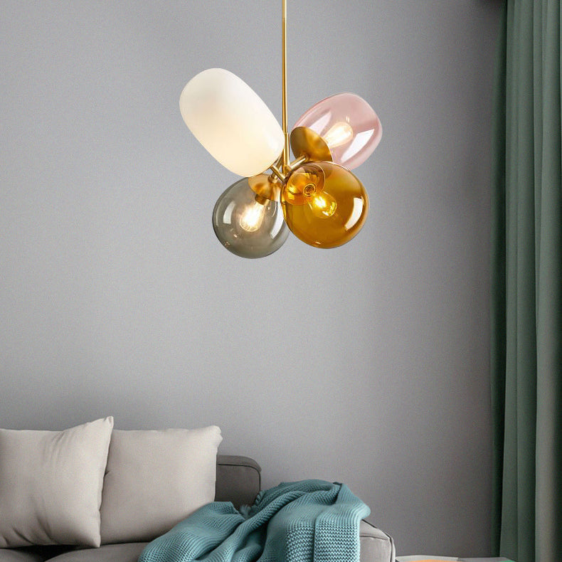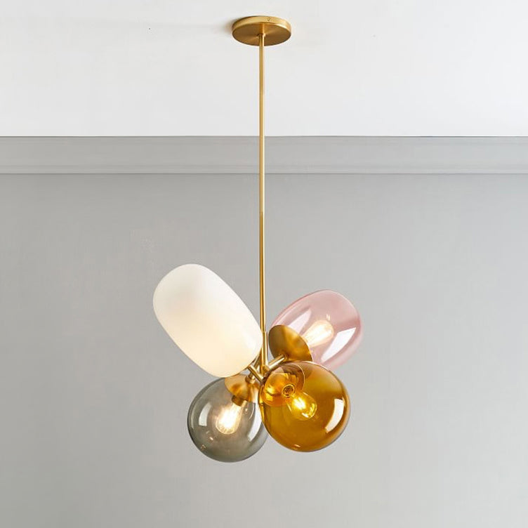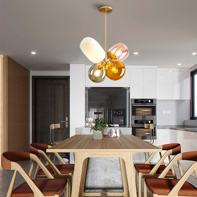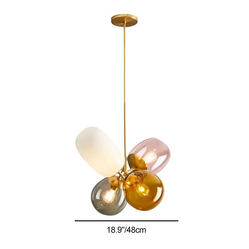 Brighten your dining area with this 4-light chandelier featuring vibrant gold tones and colorful glass globes in a playful balloon-like design. Crafted from brass, iron, and premium glass, this fixture delivers personality and soft, even lighting—ideal for adding charm to modern creative interiors.