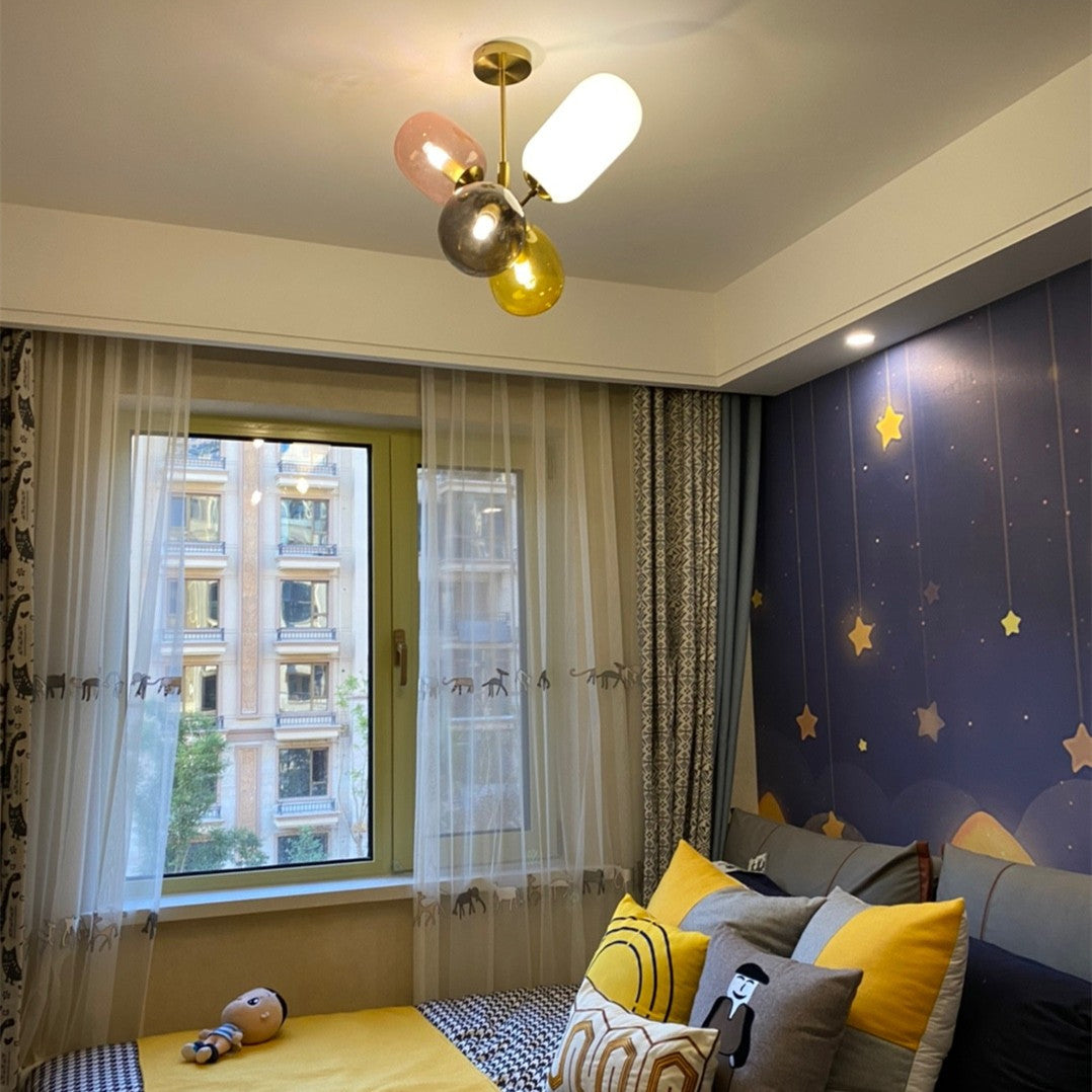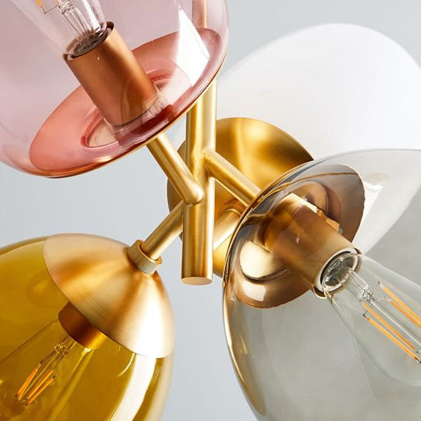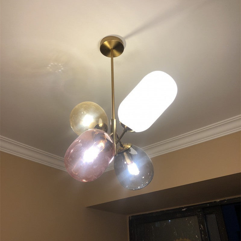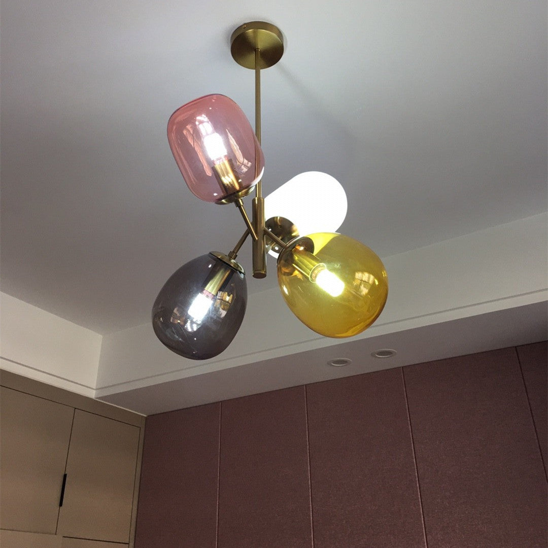 Brighten your dining area with this 4-light chandelier featuring vibrant gold tones and colorful glass globes in a playful balloon-like design. Crafted from brass, iron, and premium glass, this fixture delivers personality and soft, even lighting—ideal for adding charm to modern creative interiors.