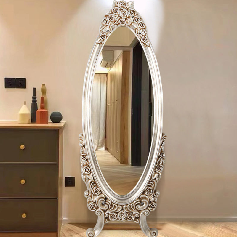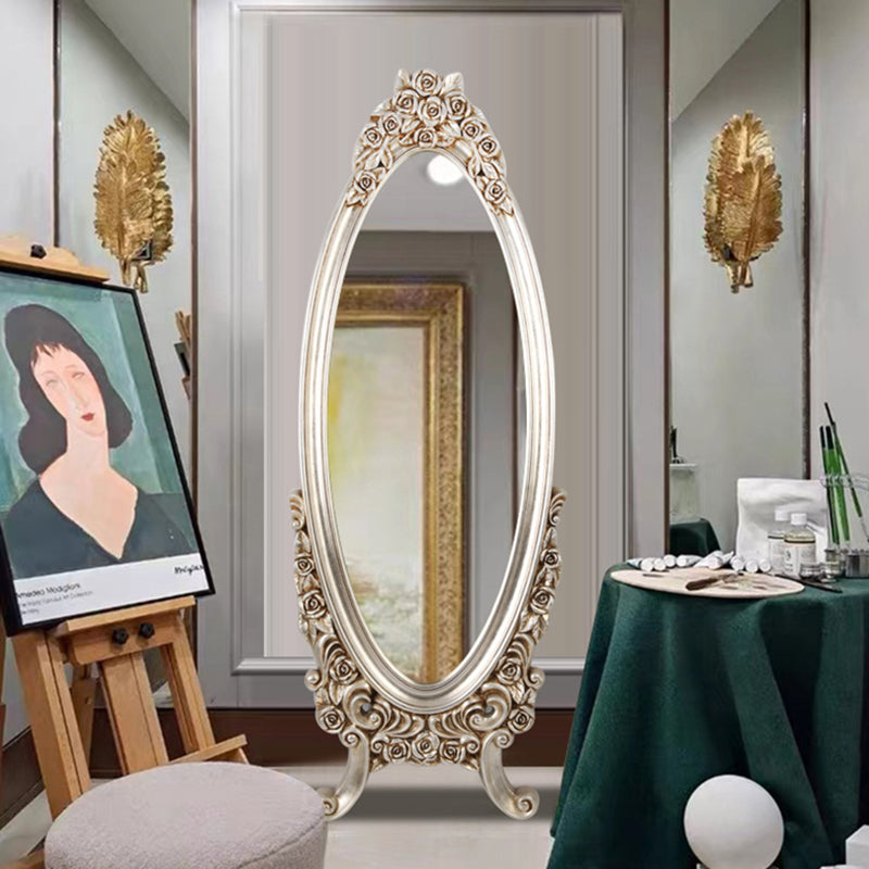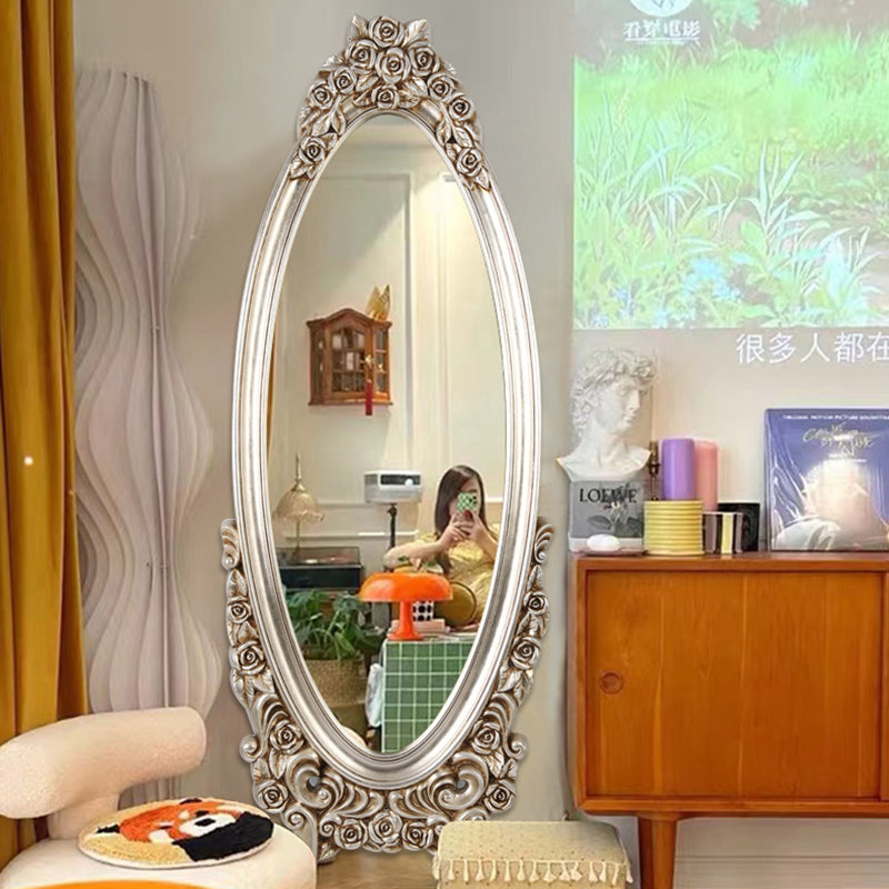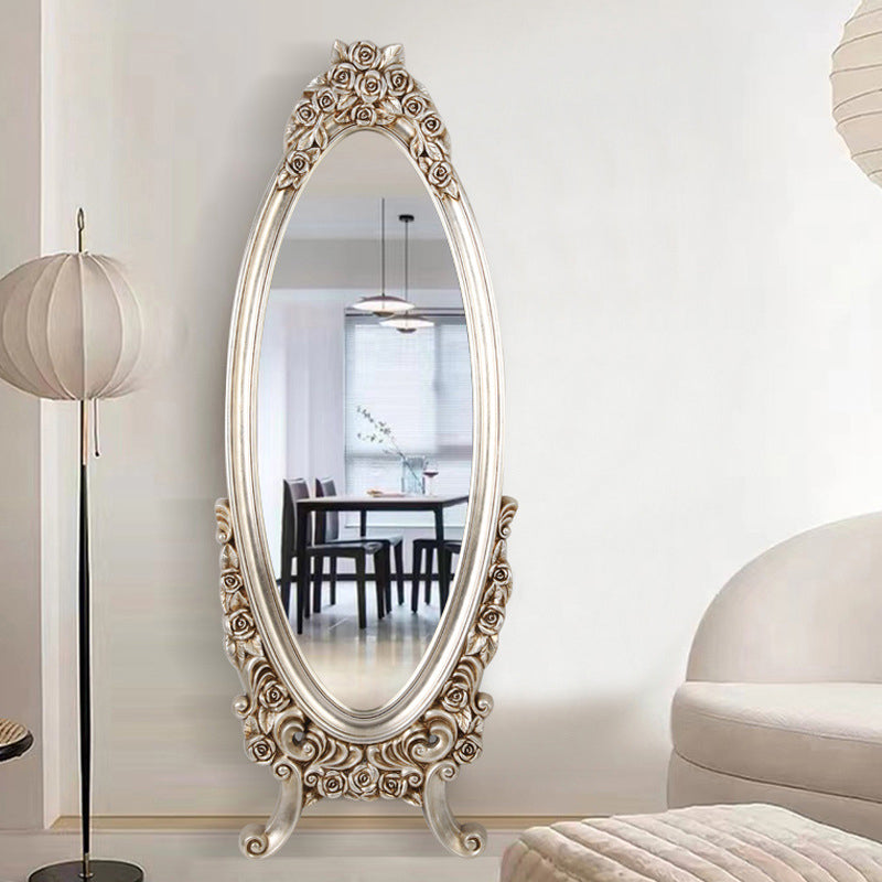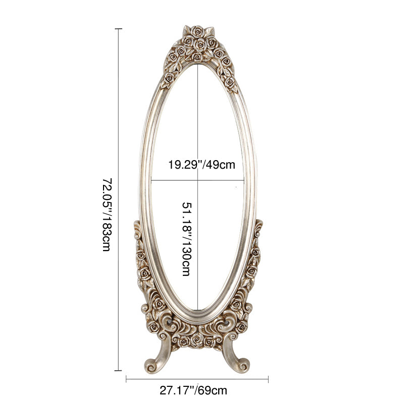 Introduce opulent detail and dramatic vintage charm with this exquisite traditional European-style oval full-length mirror. The frame features a stunningly detailed, ornate PU faux-wood carved design, replicating the classic artistry of antique mirrors without the heavy maintenance. This intricate craftsmanship establishes the piece as an immediate, beautifully detailed decorative focal point in any room.